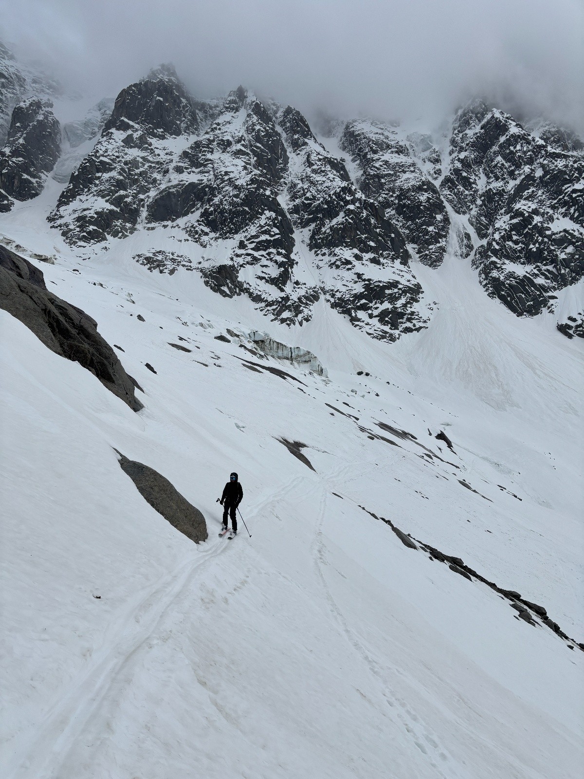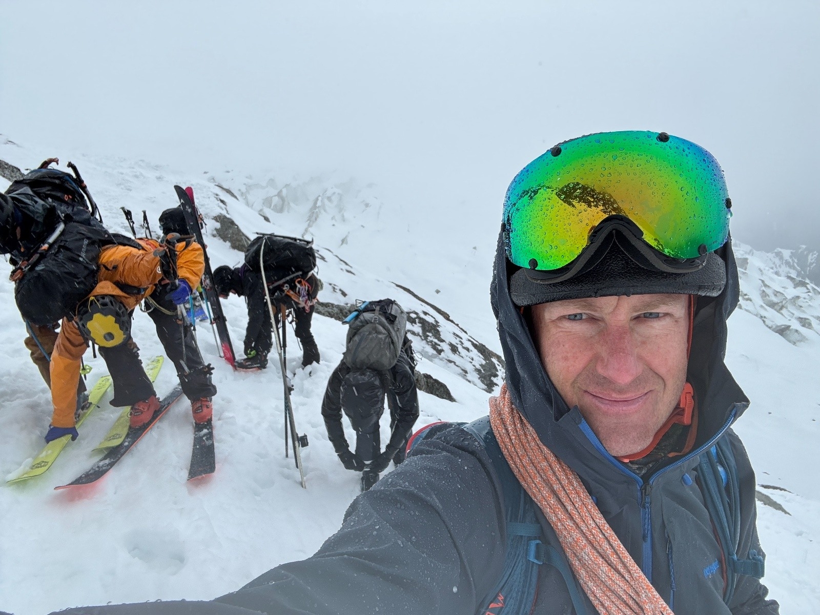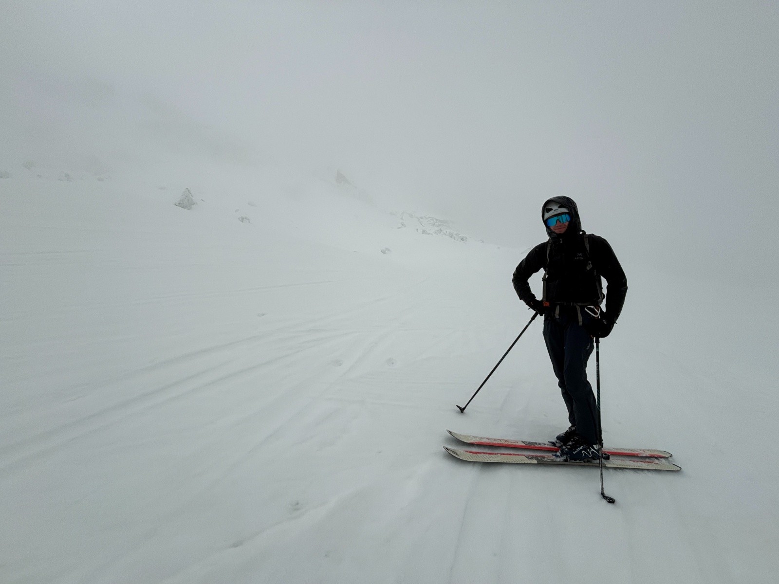 Les équipes se préparent petit à petit pour la descente, et le temps est vraiment mauvais. On se prend des averses de neige puis pluie, et on finit trempés jusqu'à l'os. La Jonction est encore moins bonne qu'hier, avec une neige pourrie en profondeur.