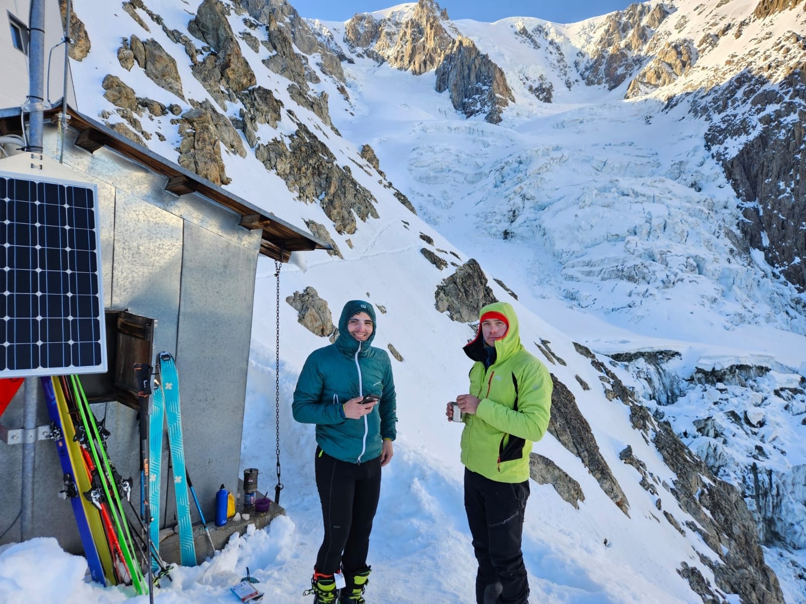 Je communique à Vivien et Léo que je serai incapable de redescendre par le même itinéraire et que j'ai besoin que redescende coté Chamonix. Je mesure la galère que je suis en train de créer, ça signifie embarquer matelas et duvets jusqu'au sommet mais surtout qu'on a la voiture en bas et les chaussures à une heure aller de la voiture. Mais il m'est impossible de l'envisager. En entendant notre conversation, Raphaël de l'autre groupe nous dit qu'il peut nous prêter sa voiture pour nous permettre de retourner chercher nos affaires. Ce qui semblait se transformer en une grosse galère, se transforme en une toute petite galère, alors je sais que je l'ai déjà dit mais MERCI.