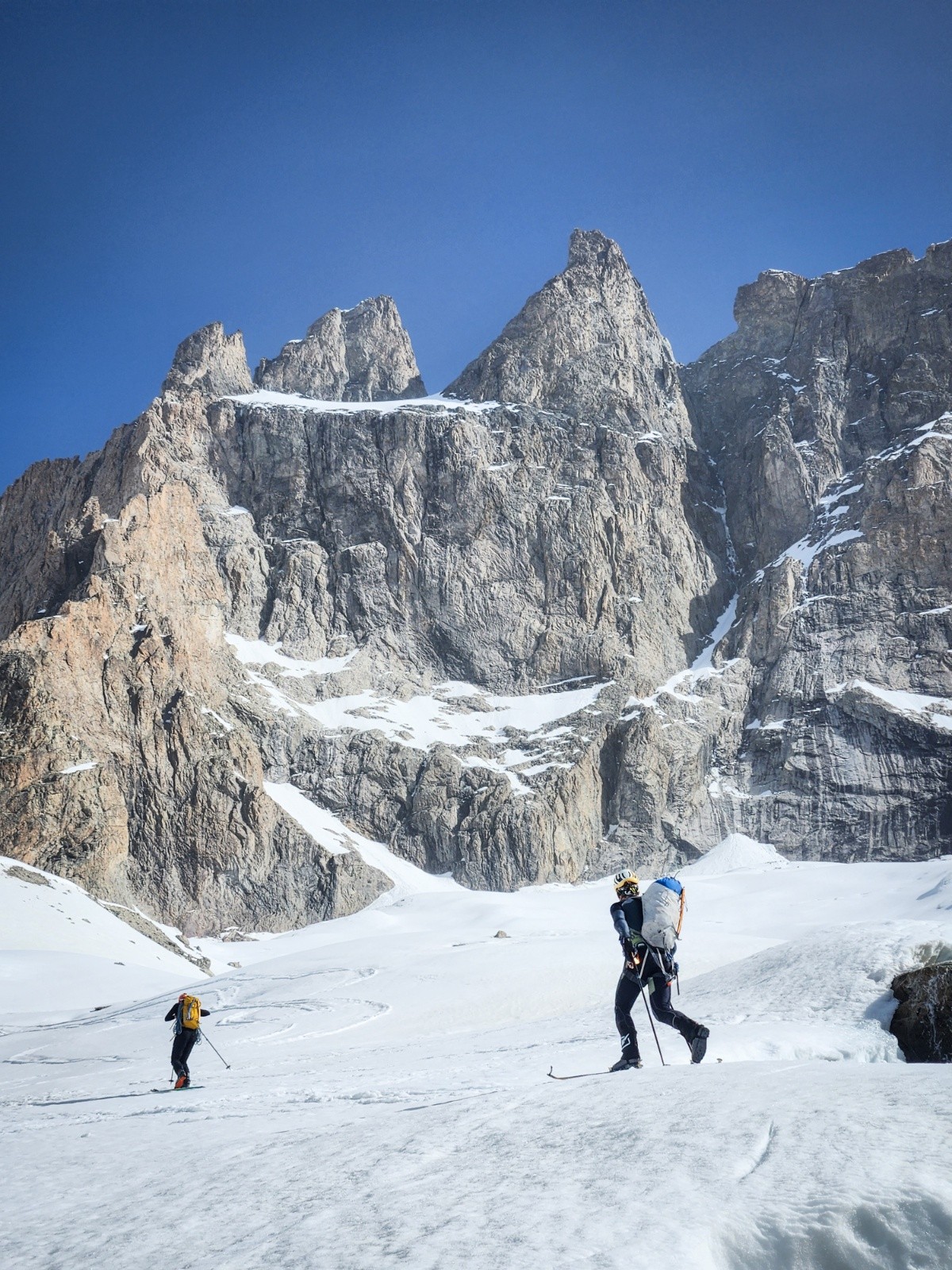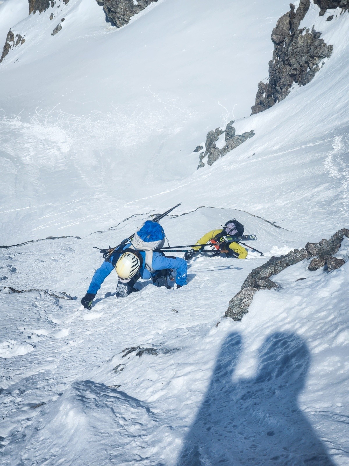 - Descente de la Brèche en crampons puis nous continuons la descente à skis. Neige froide plutôt bonne même si croutée par endroits.