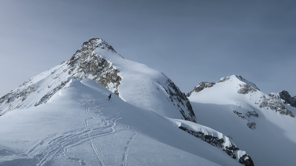 Les 100 derniers mètres du Pic de Neige Cordier en crampons en AR.