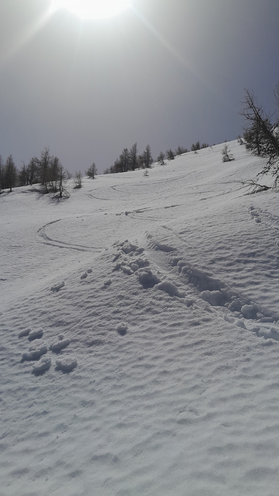 La piste de ski, charitable, nous tend assez vite la langue : blanche, assez longue, Chausser sans trop porter, miracle printanier. On remonte entre les mélèzes, sans bruit — sauf celui de nos souvenirs qui grincent. La forêt murmure. Les roches nous laissent passer, indifférentes, sans se moquer : elles ont vu pire, depuis le Crétacé.