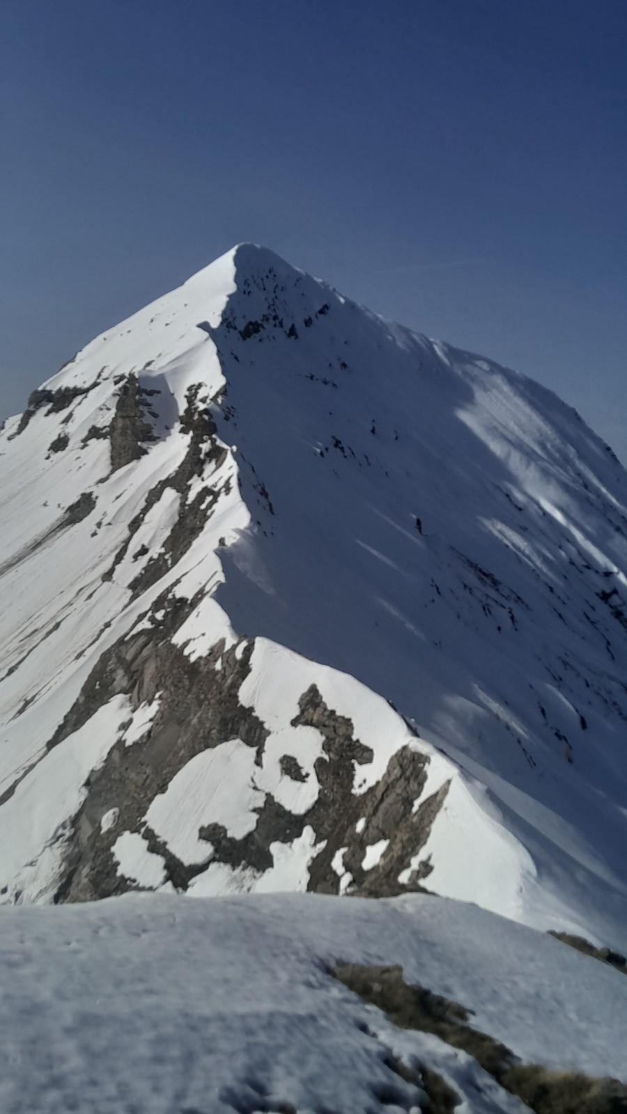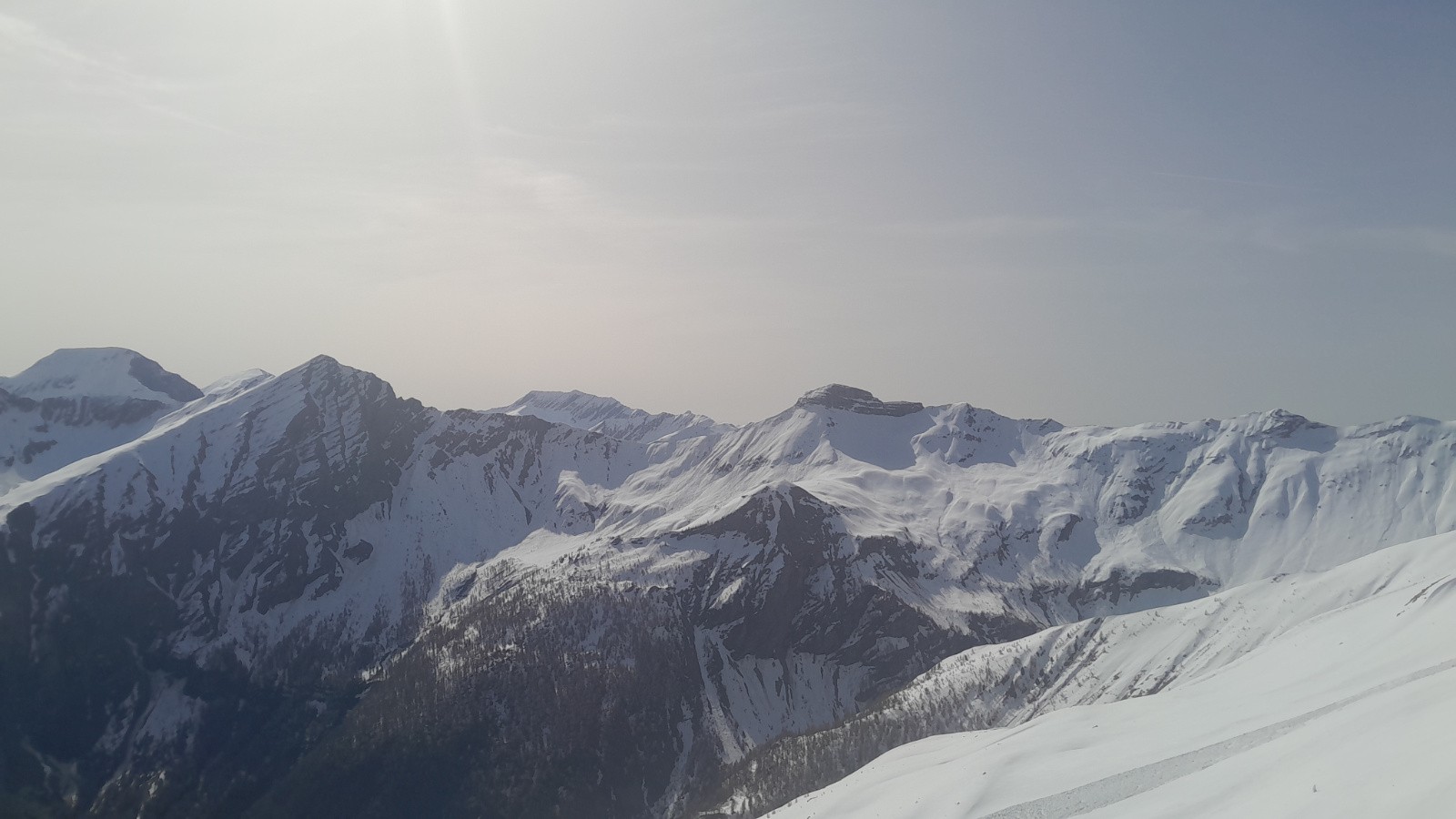 Conditions pour le ski : un petit portage de 140m à la montée qui va s'allonger s'allonger...A la descente dure décaillée sous le sommet (petit final à pied), puis moquette, puis molle profonde, puis névé sous la croix