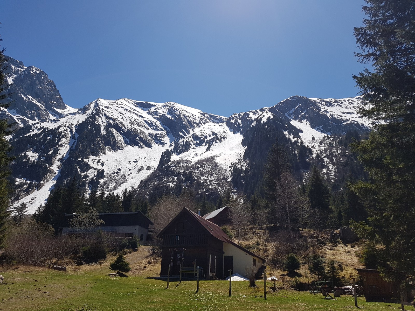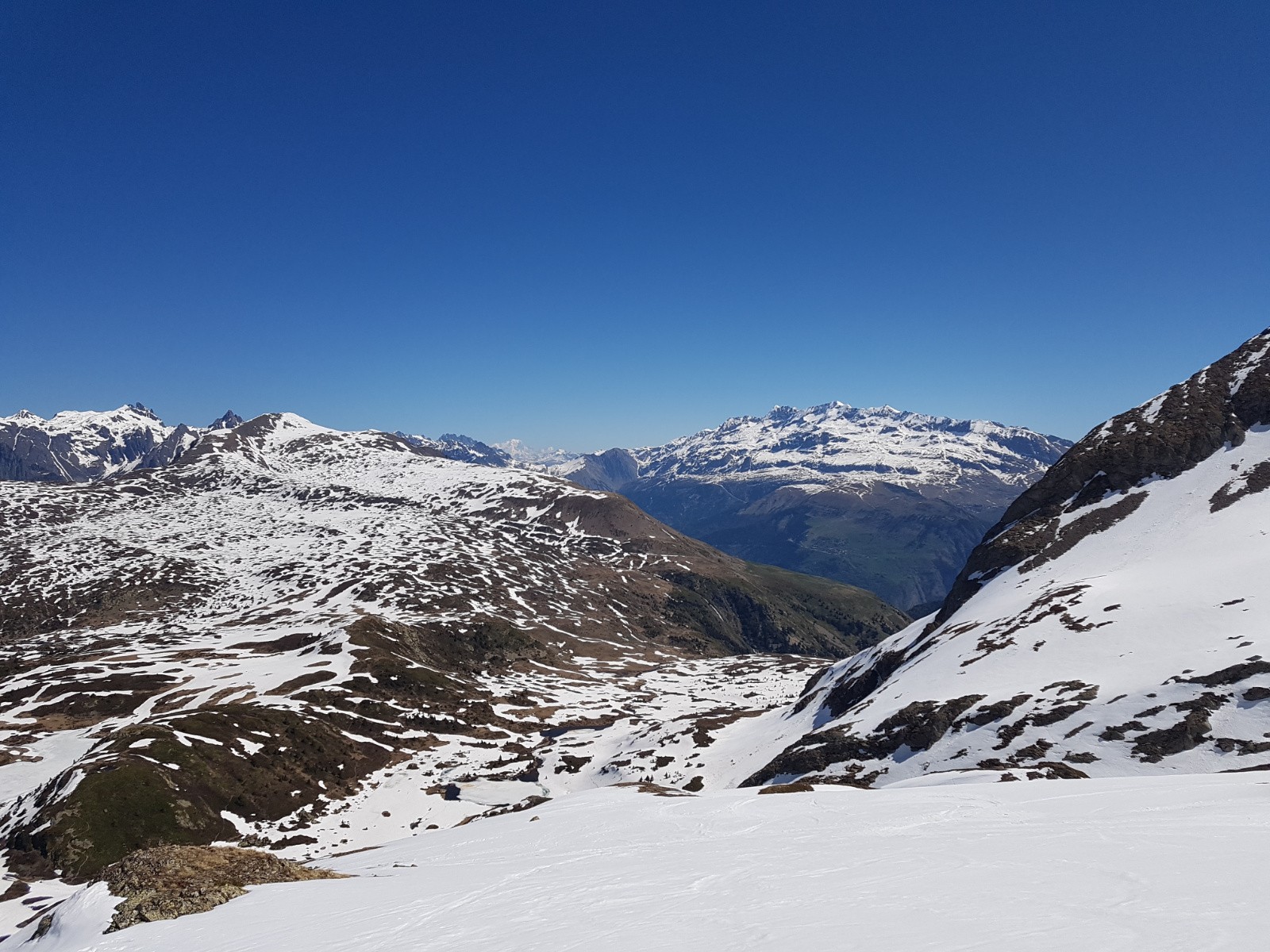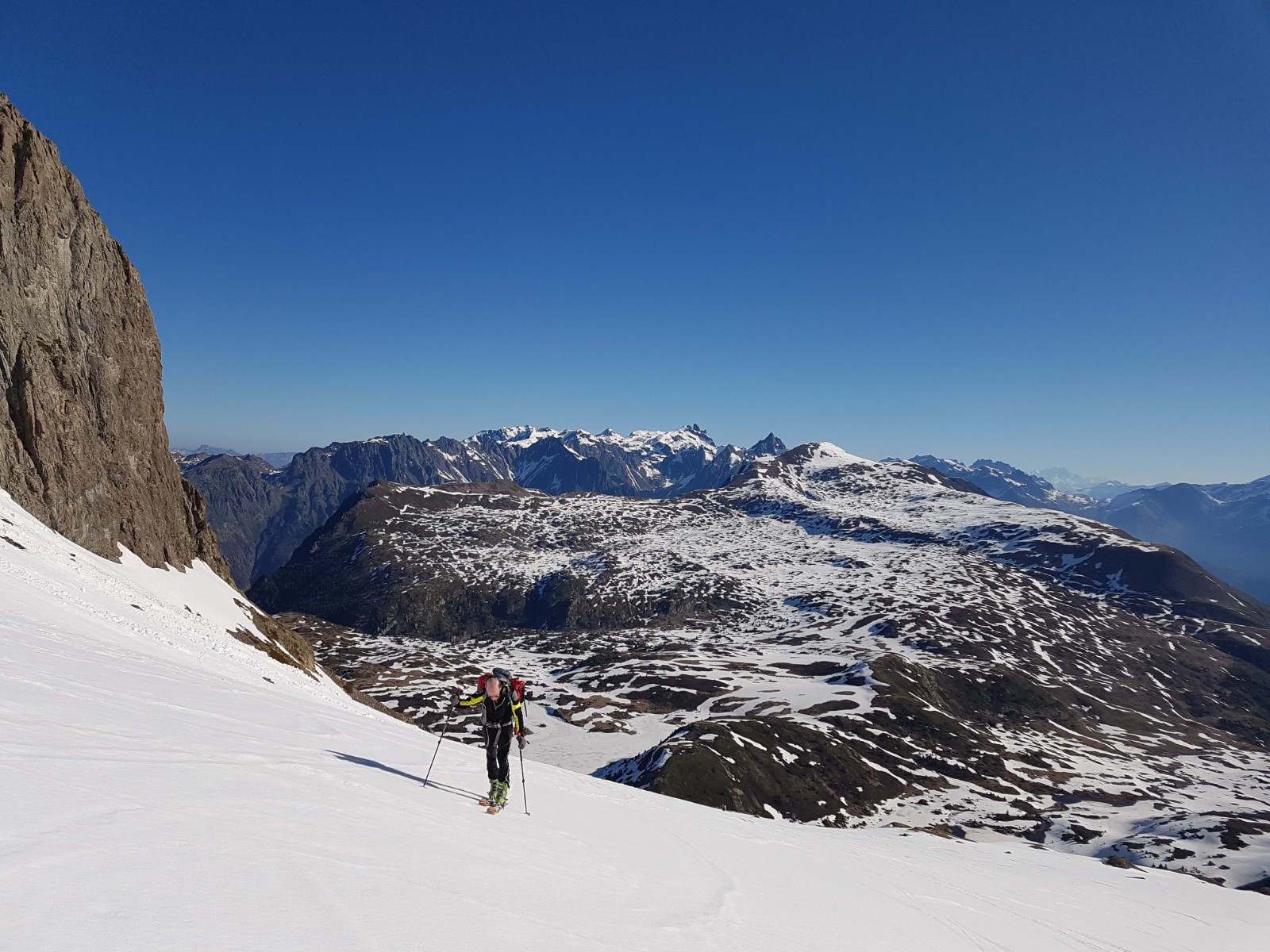 Conditions pour le ski : dure au sommet, décaillée dessous, puis moquette, puis molle, puis lourde dans la pente au dessus des lacs, puis névé.