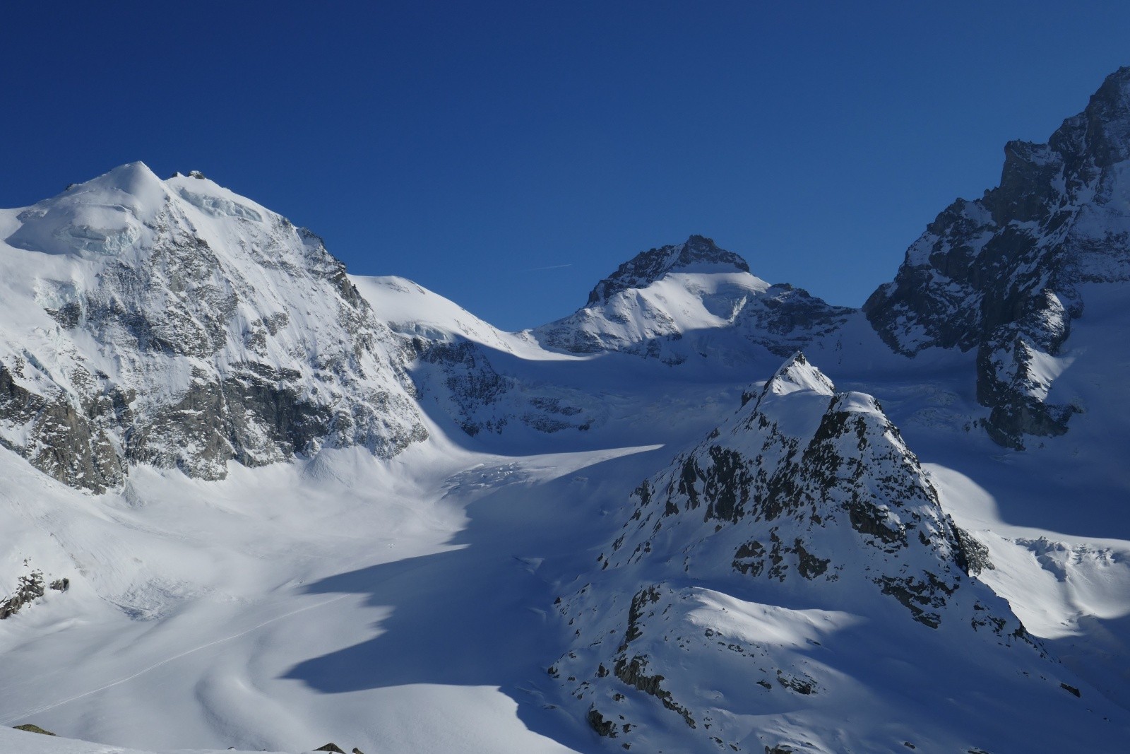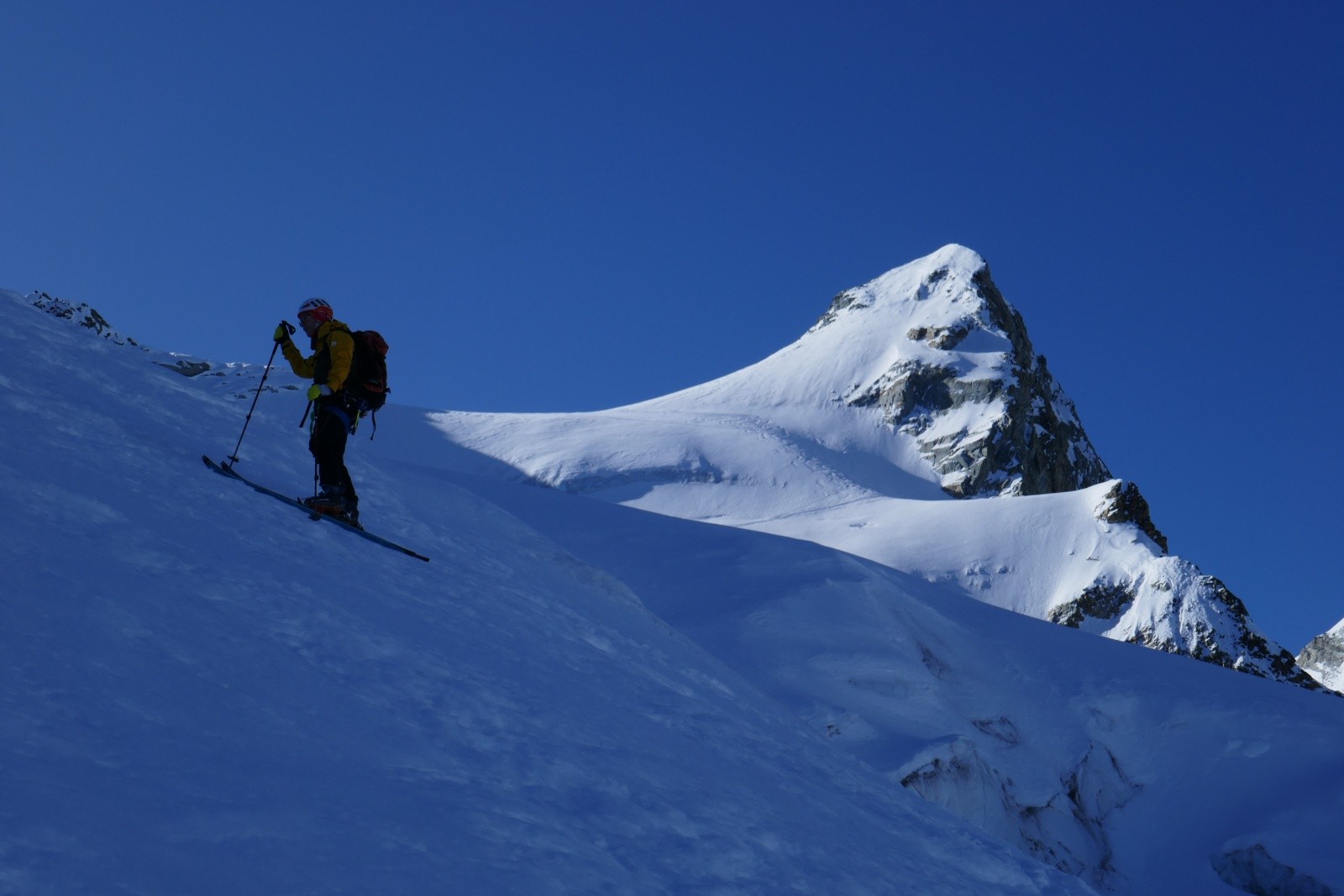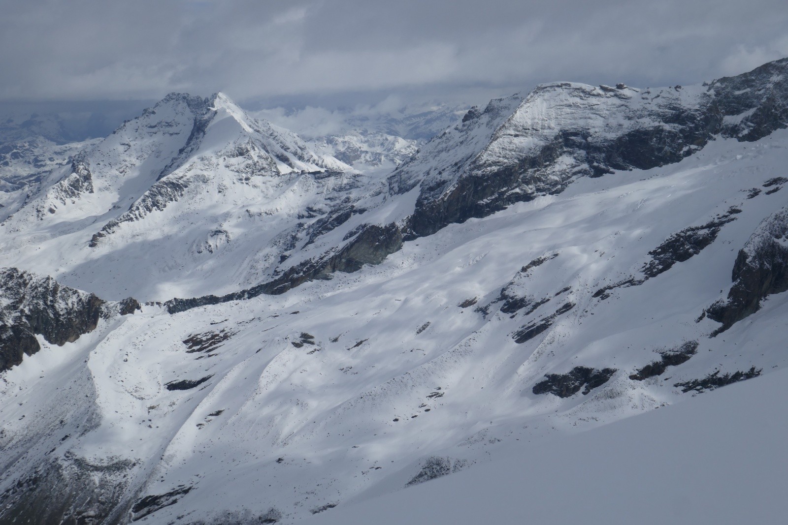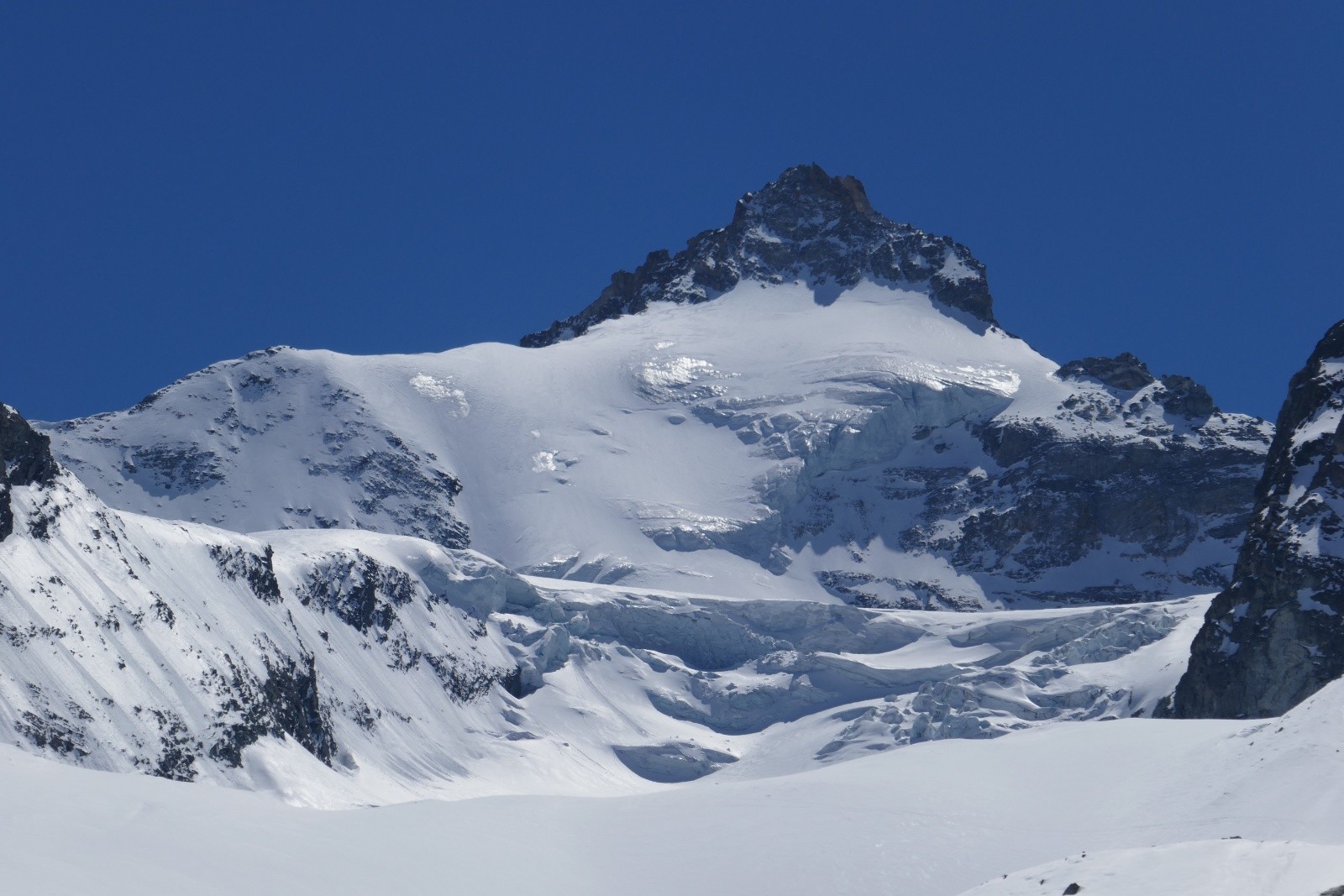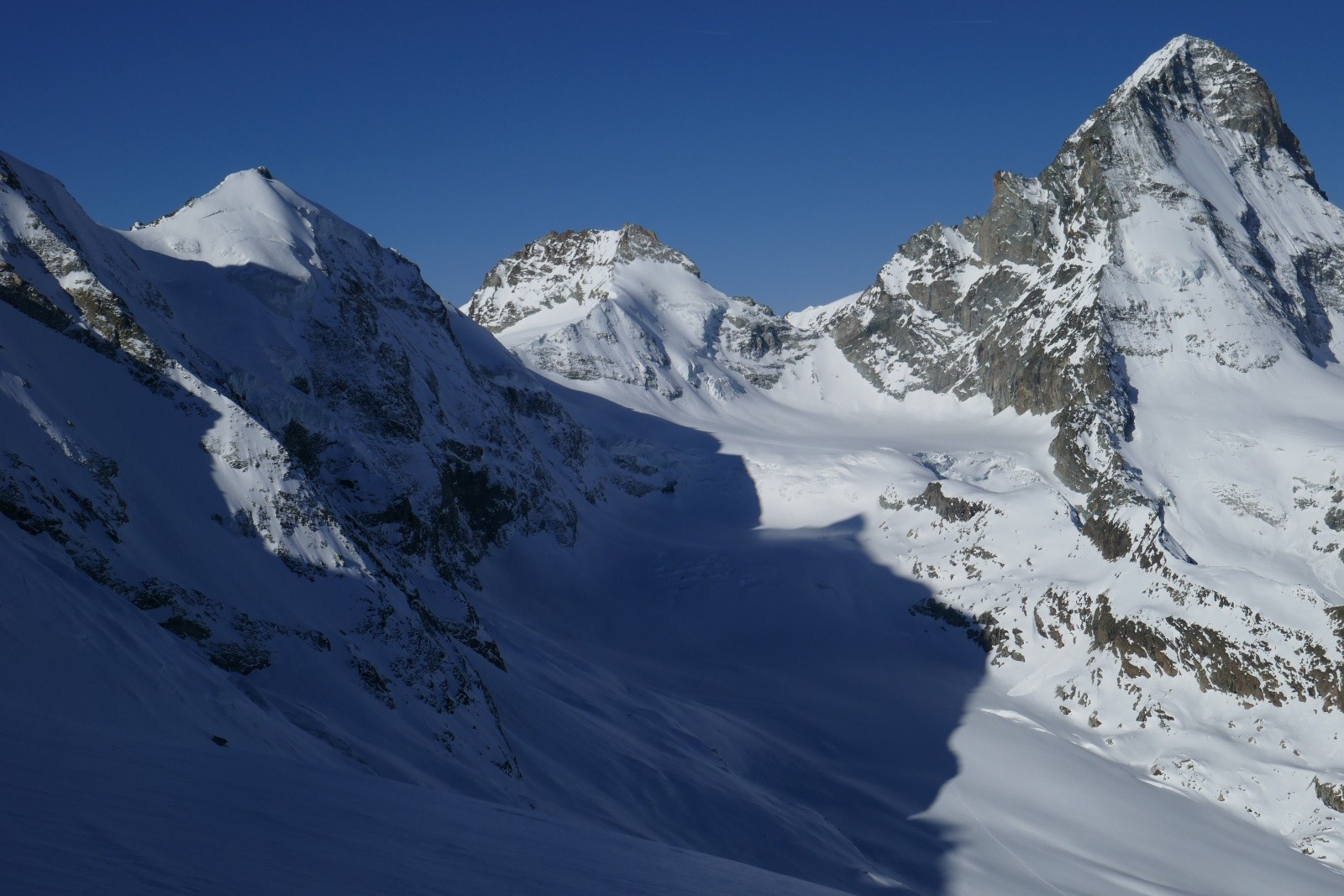 Bonne descente en neige poudreuse sur le glacier du Mountet puis collante sur le glacier de Zinal.