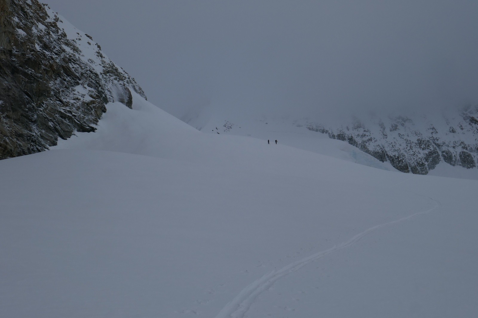 La visibilité est juste correcte pour remonter le glacier Durand.