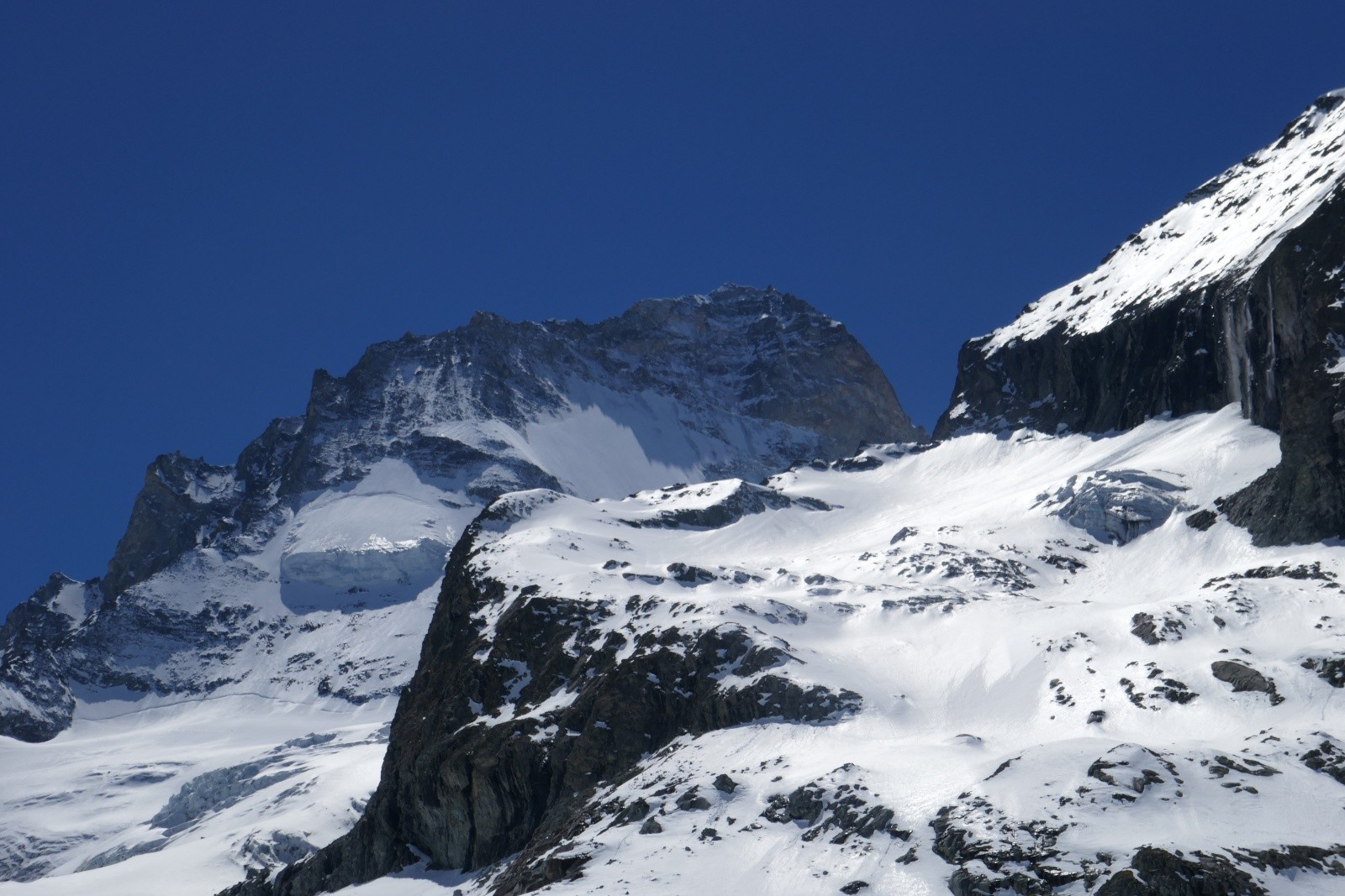 Plus on avance plus on aperçoit les géants: Grand Cornier, Ober Gabelhorn, Dent Blanche puis le Zinalrothorn.