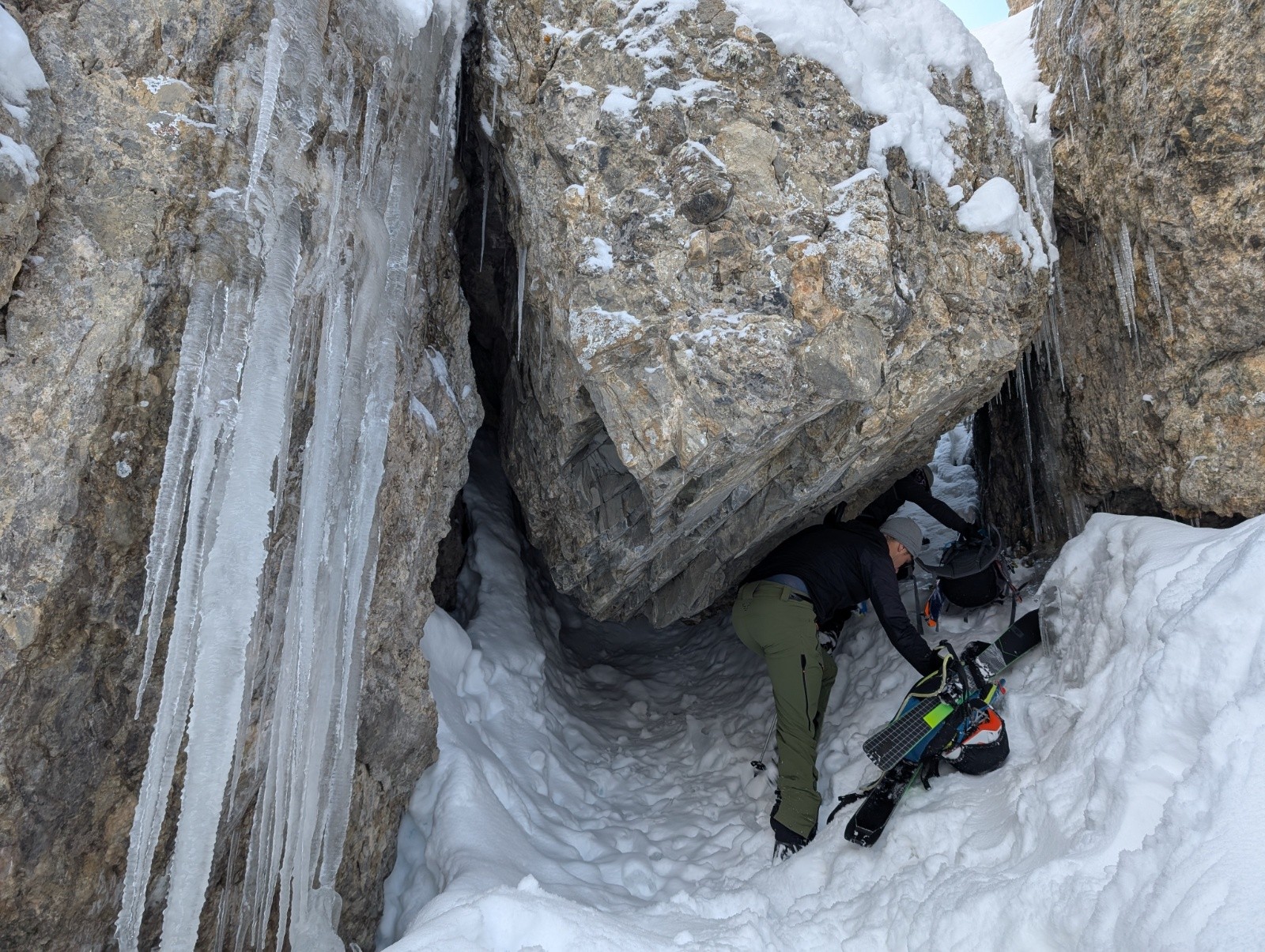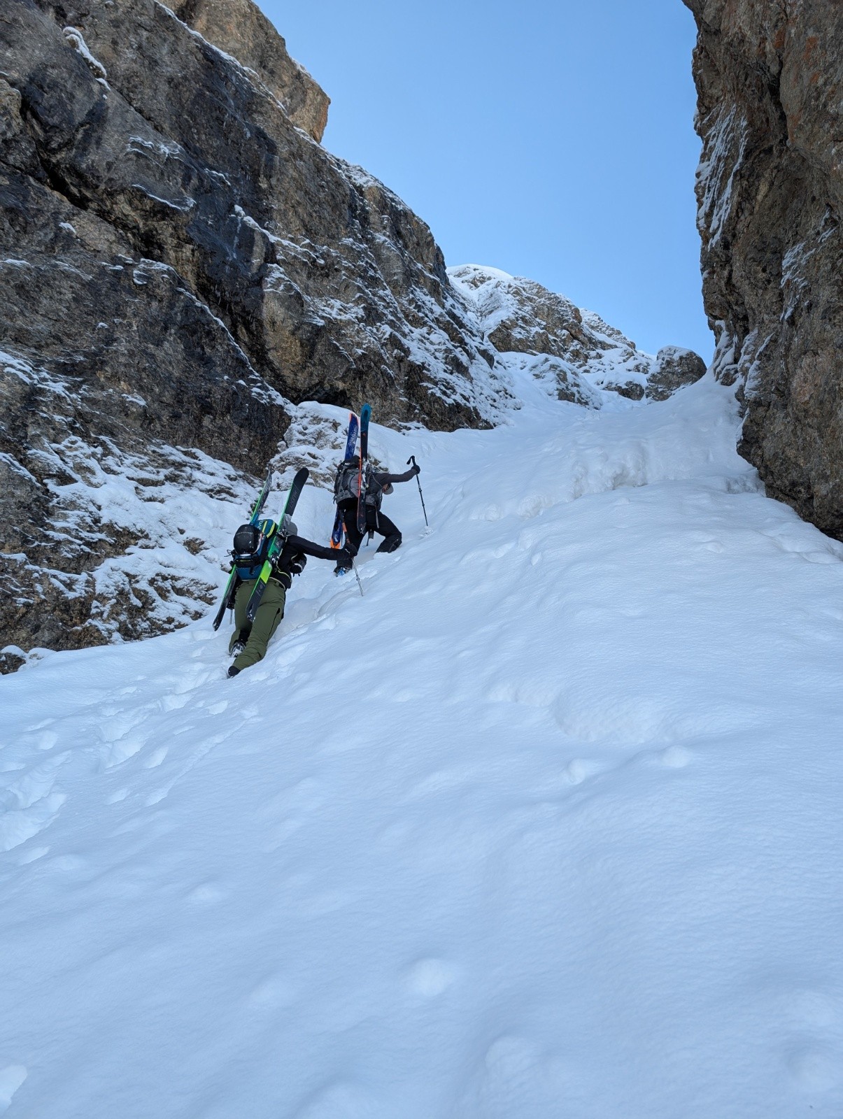 Conditions nivo et activité avalancheuse : de nombreuses purges recouvertes , au dessus du lac, puis main droite en arrivant dans le cirque après la chatière. Neige fuyante sur les conversations dans les parties les plus raide. Quelques reptations avant d'arriver au lac.