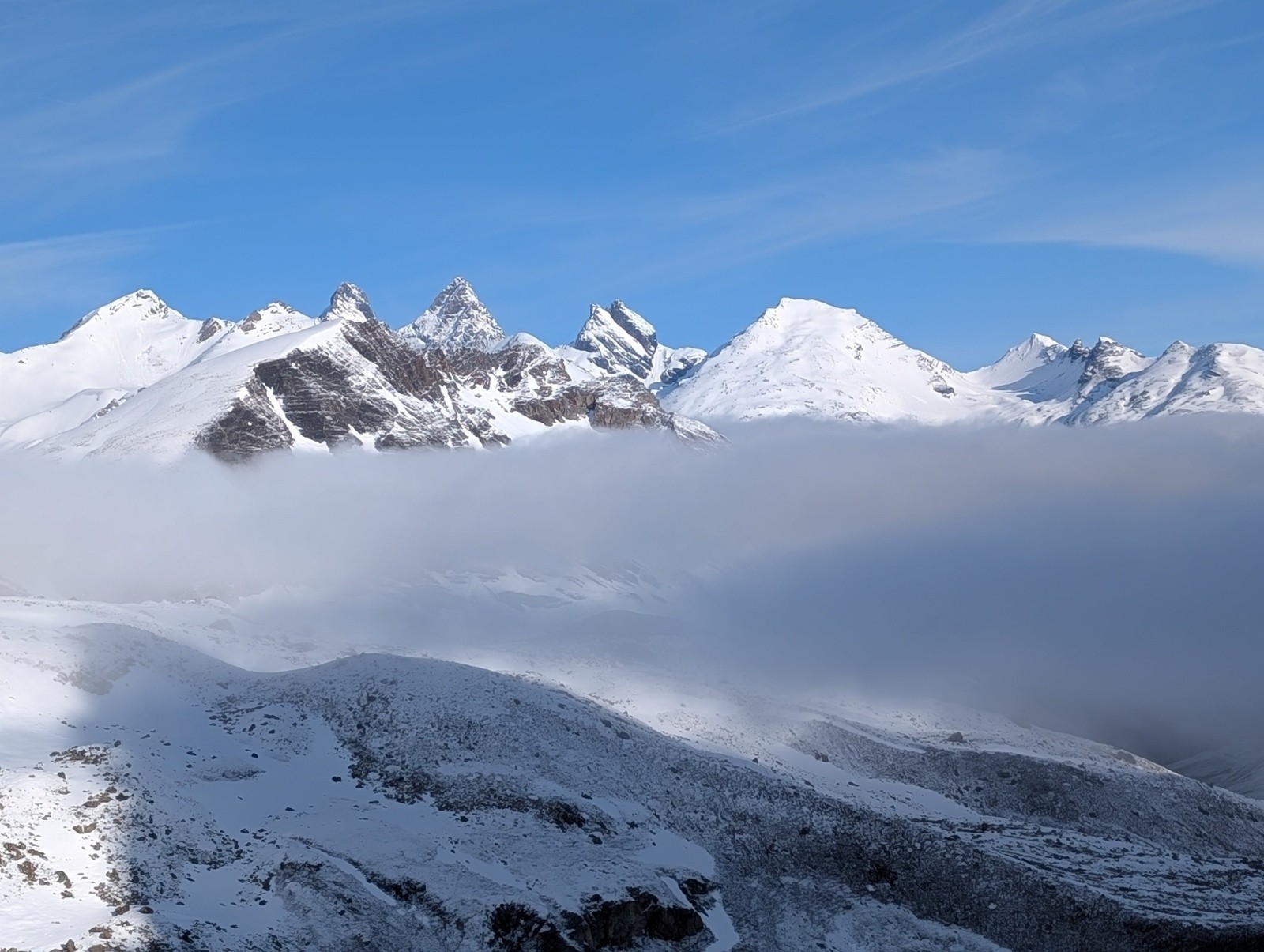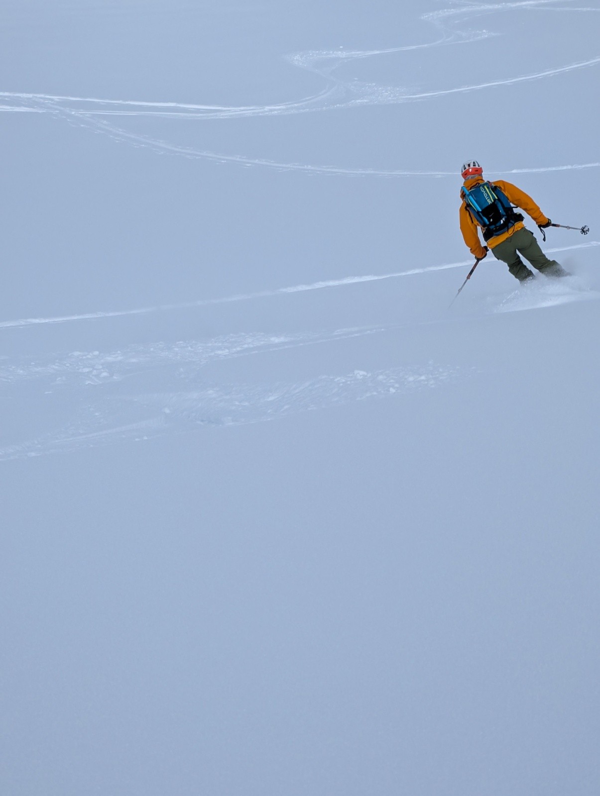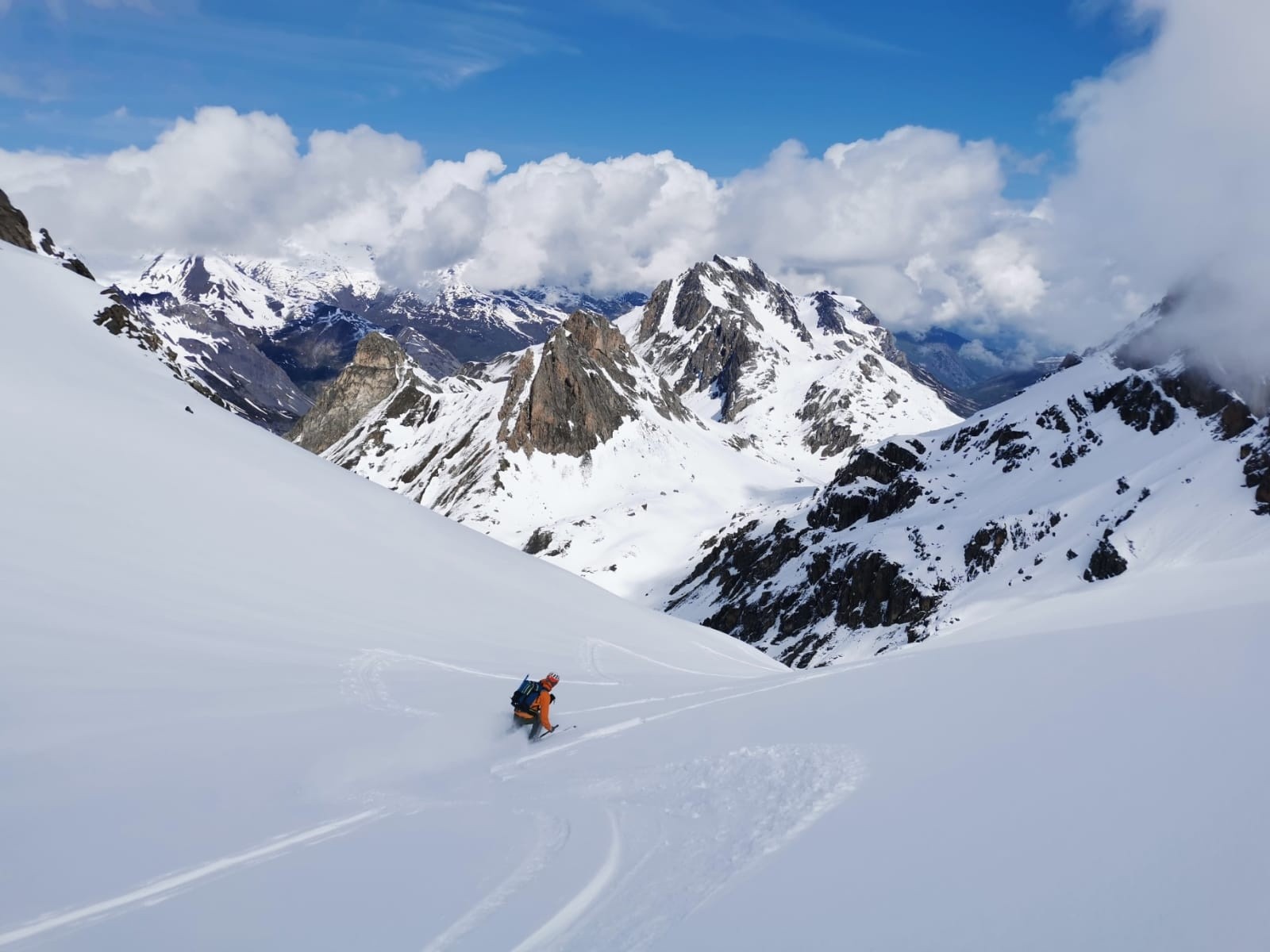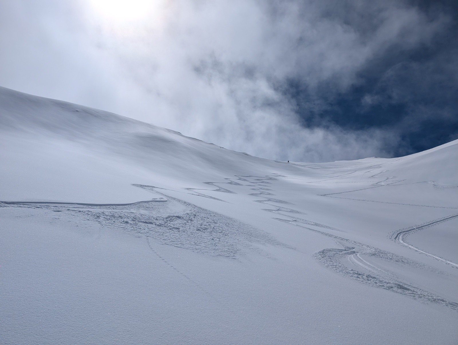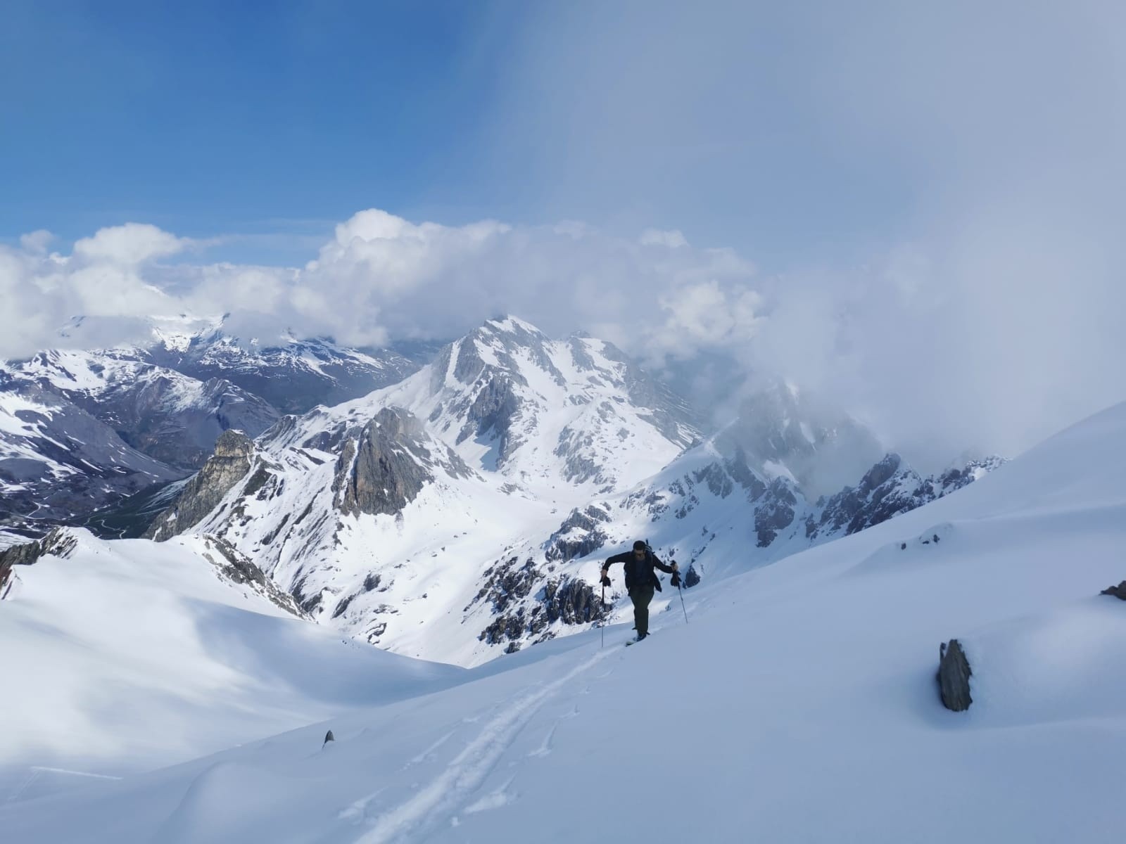 Conditions pour le ski : portage au départ, ensuite on a remonté des langues de neige et puis bon enneigement pour arriver au lac des Cerces. Partie croûte a tracer pour arriver a la chatière, puis au dessus , 5 cm de fraiche posé sur neige croûté