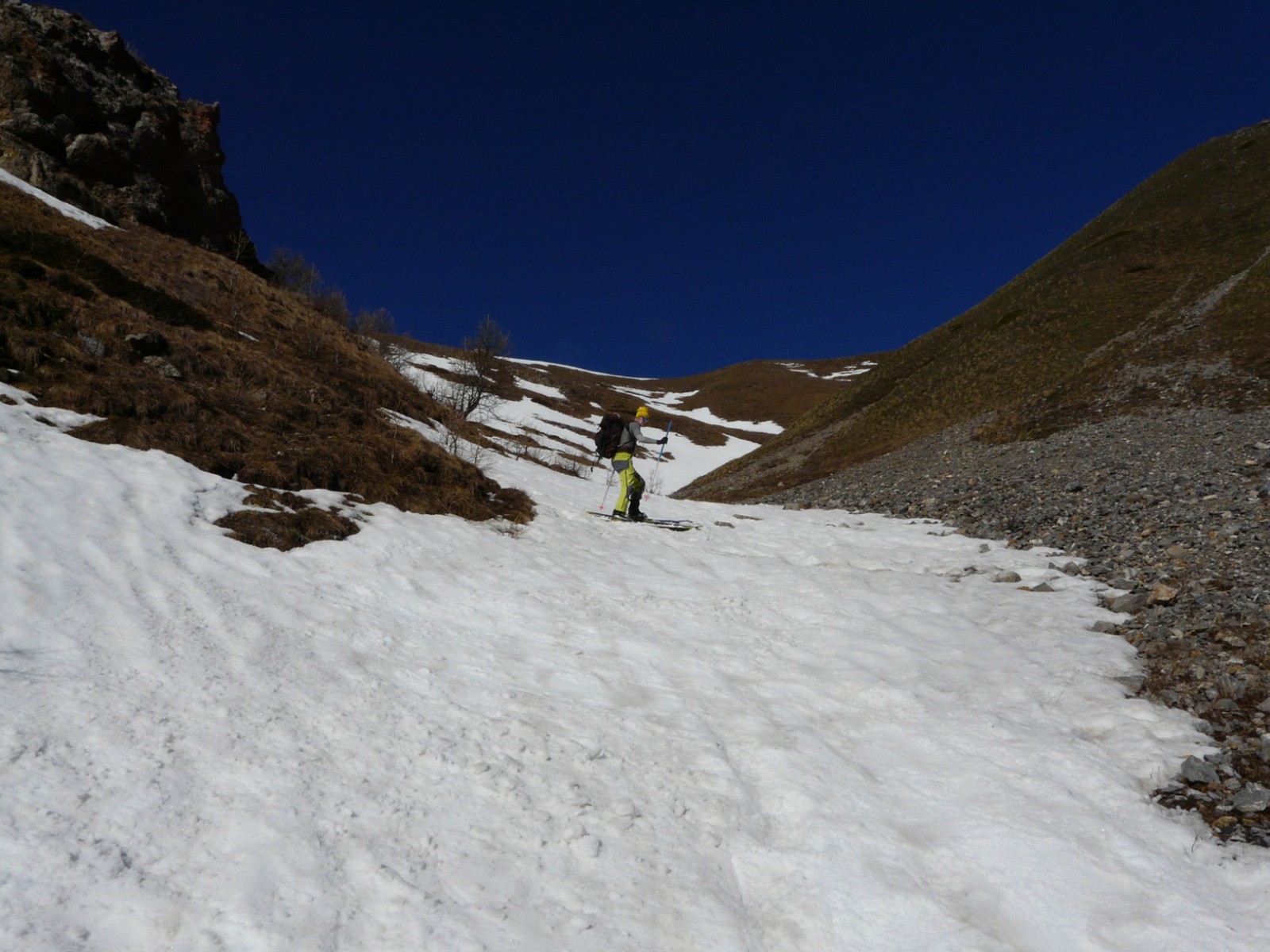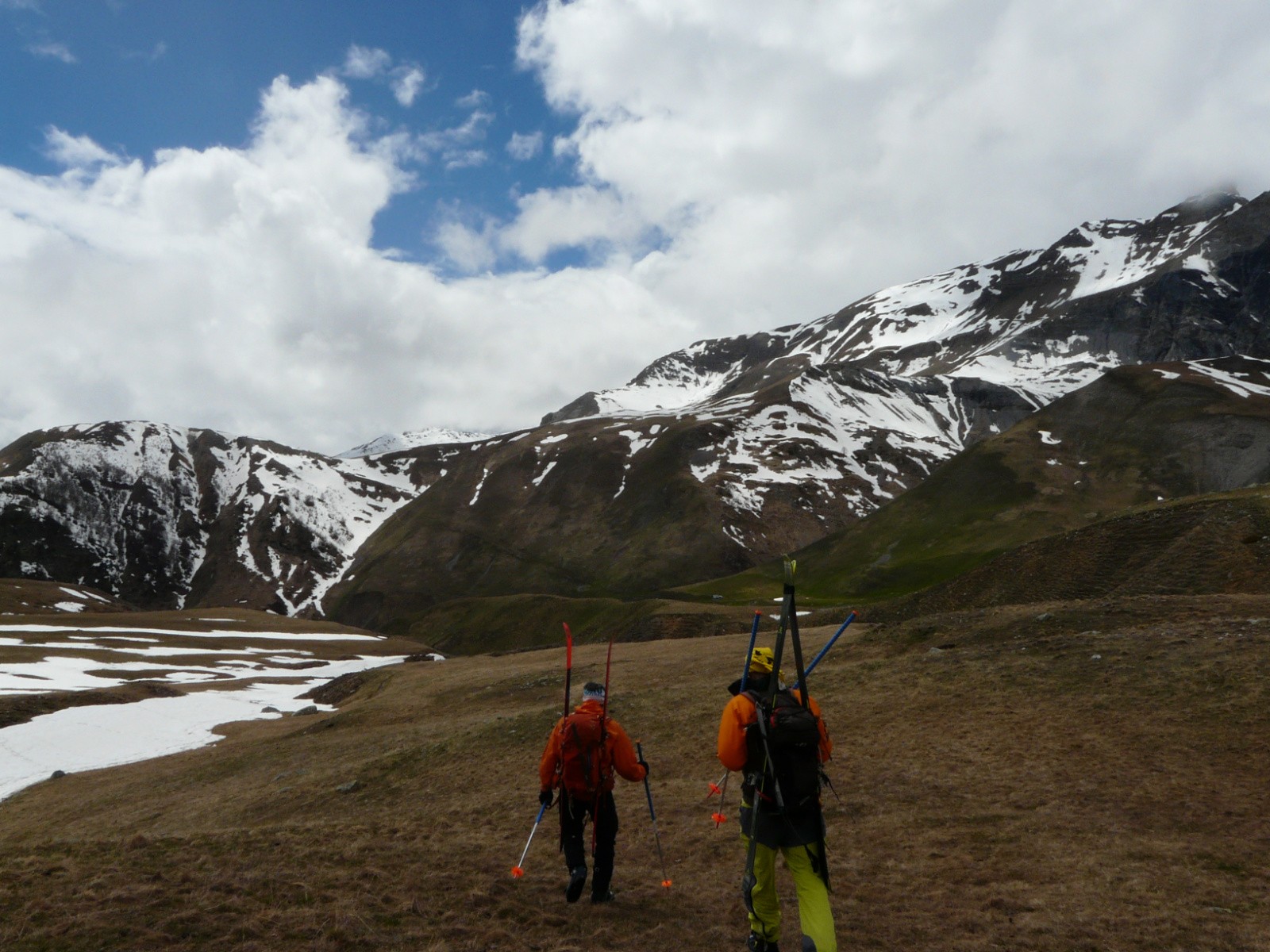 Conditions d'accès/altitude du parking : Parking au camp des Fourches. Descente vers le Salso Moreno encore enneigée. 200m mètres de portage en opntant vers le Mont Aiga.