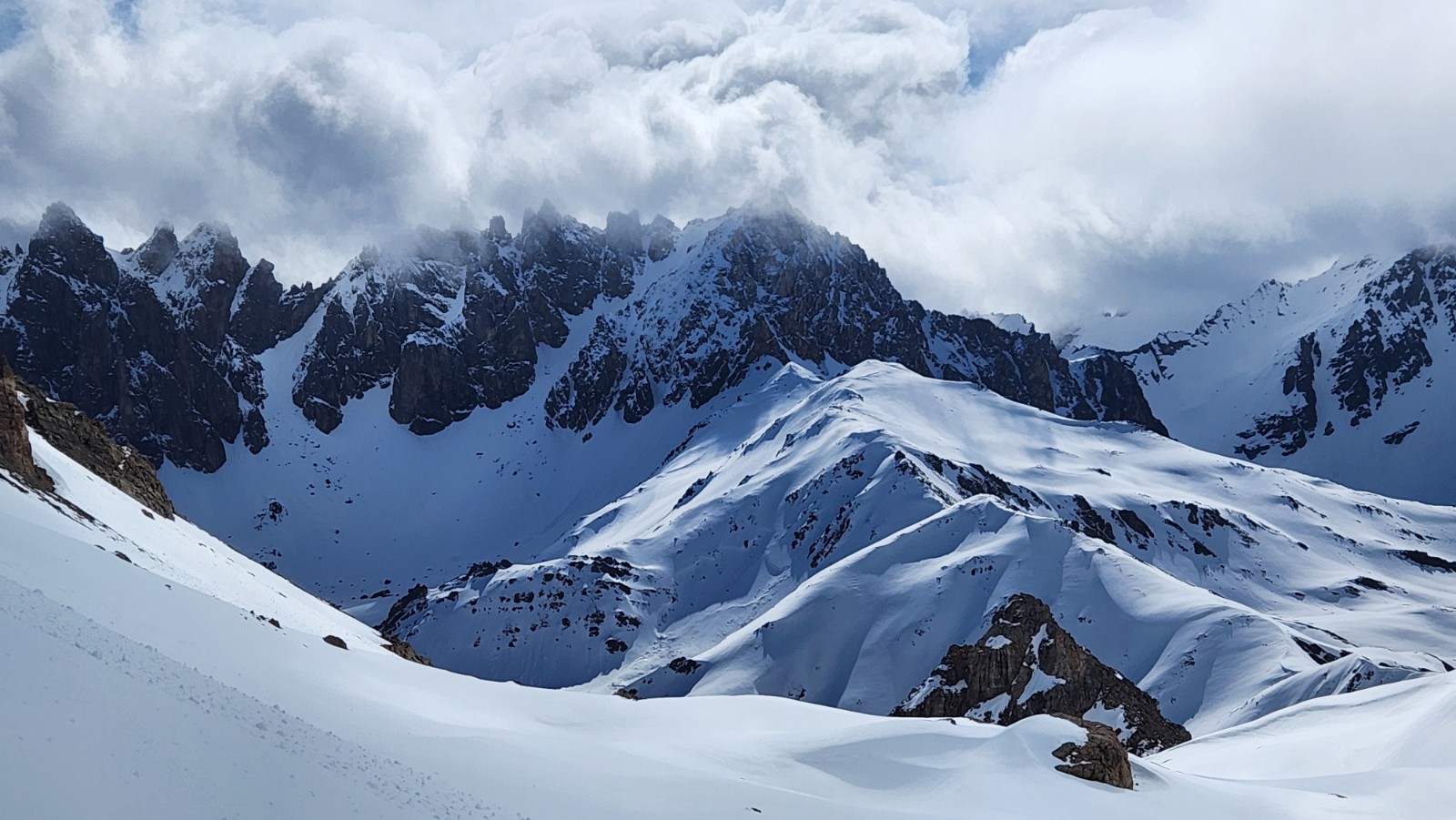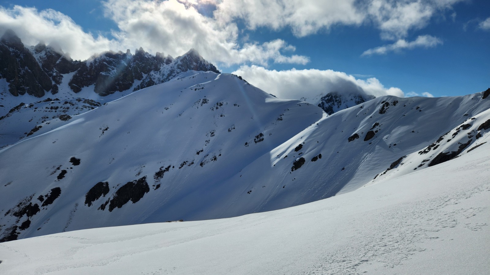 J avais déjà attendu une demi heure puis renoncé en haut du couloir de la Clapiere la dernière fois à cause d'une visibilité de moins de 10m. Cette fois je signe le but dès le départ. Il a manqué une heure de ciel clair pour avoir un regel digne de ce nom. Arret vers le sommet Est dans le jour blanc. Meilleure visibilité et ski plus bas. Toujours un jolie coin malgré tout.