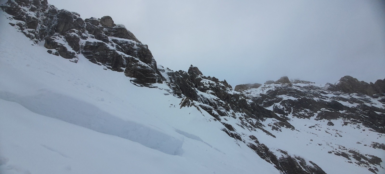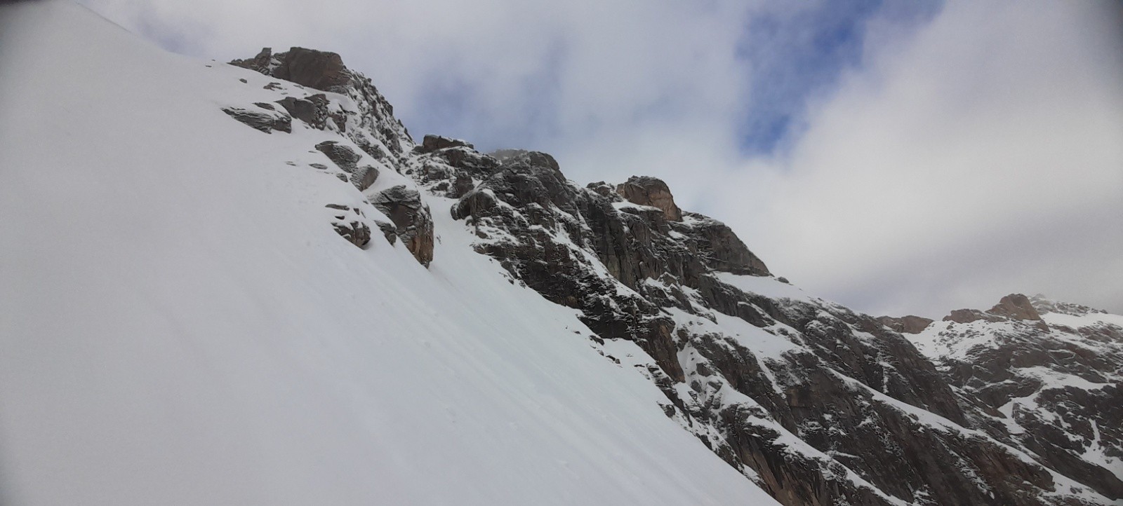 Conditions nivo et activité avalancheuse : Encore remarqué des enormes plaques du à la chaleur. RAS dans la face mais il ne faut pas traîner le soleil humidifie la neige rapidement