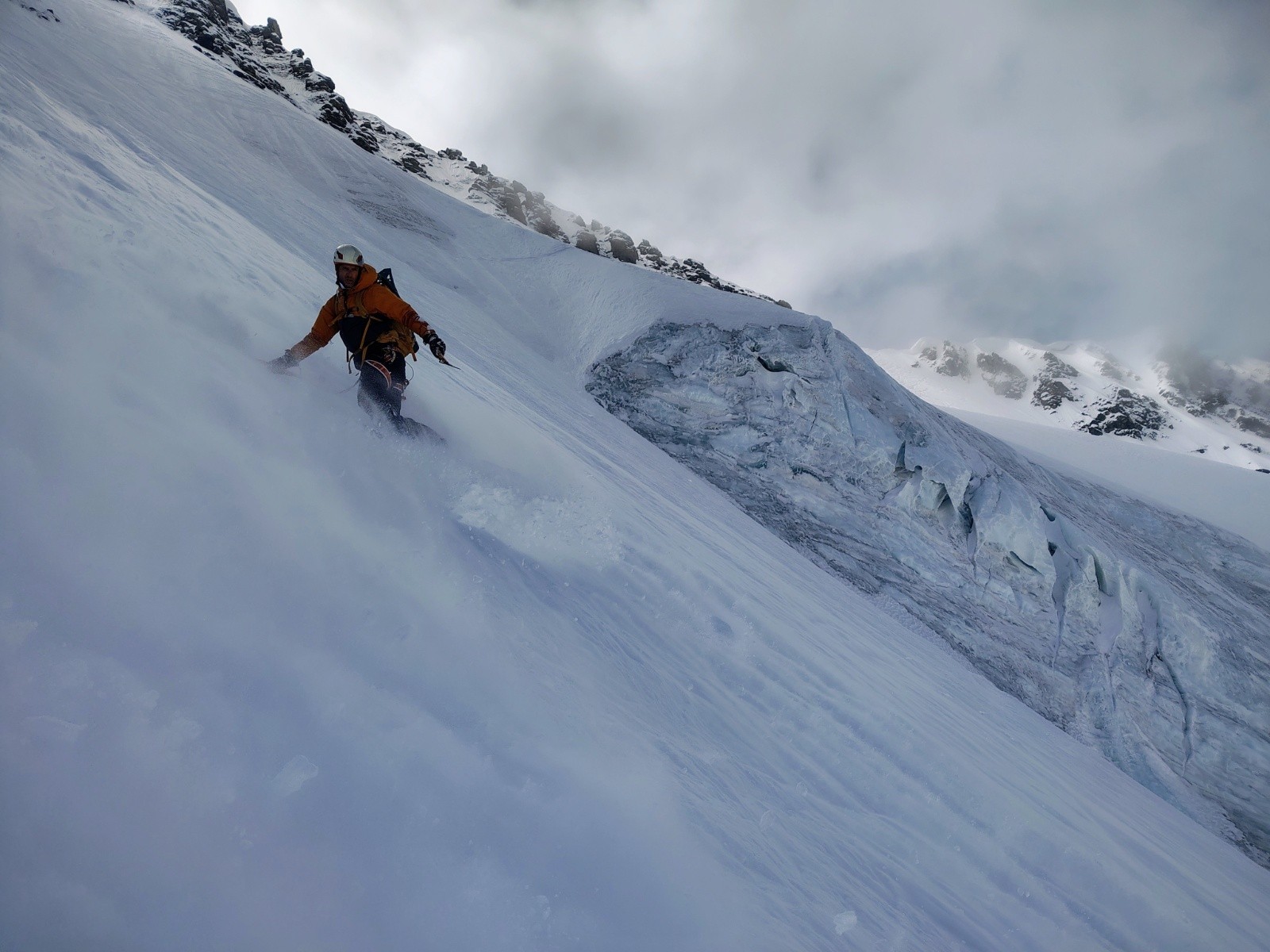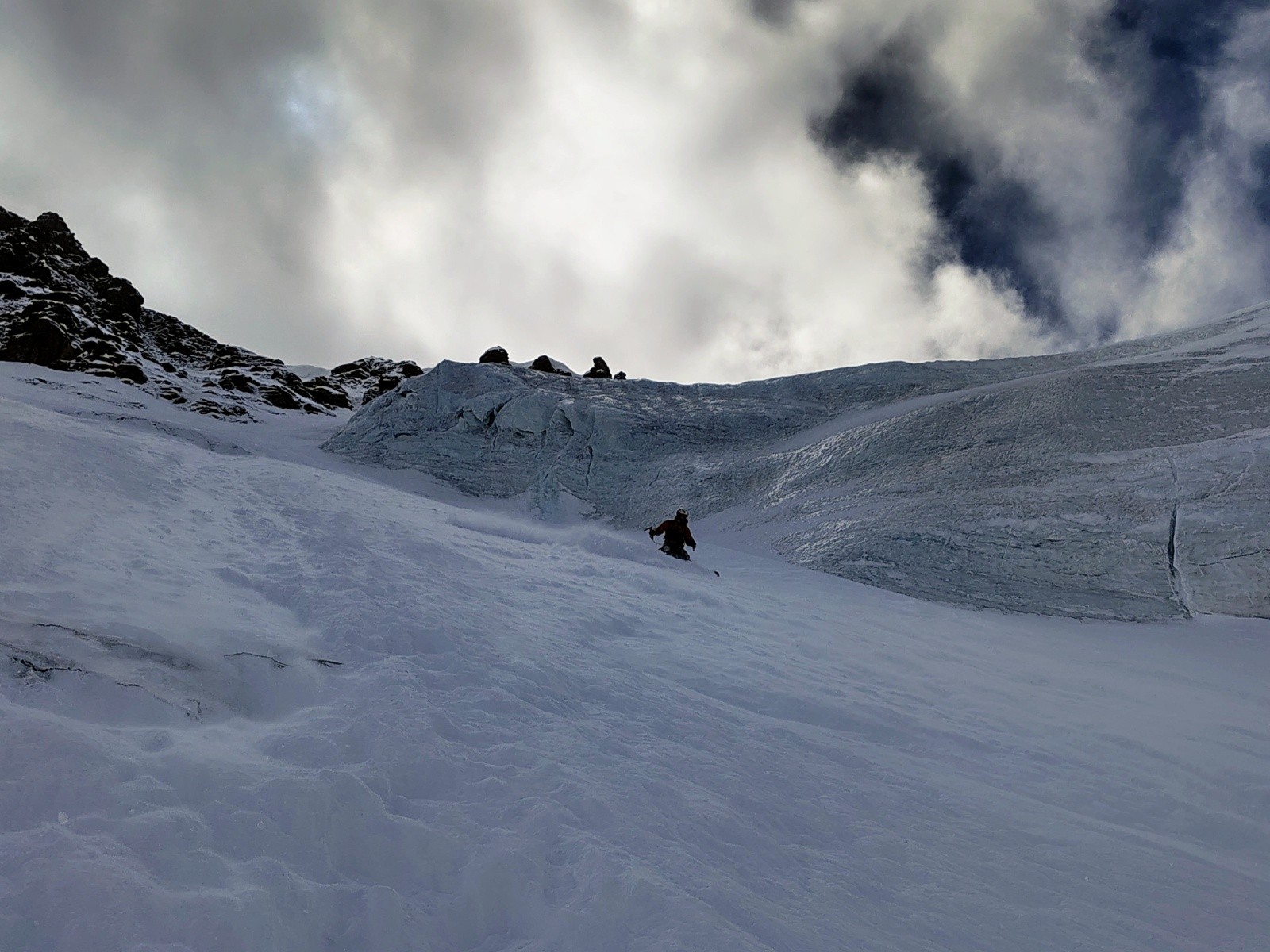 Conditions pour le ski : Excellent dans la face (gaffe au cailloux pas loin dans le haut quand même), pas de glace. Une petite étroiture passe en dérapage sur 20m