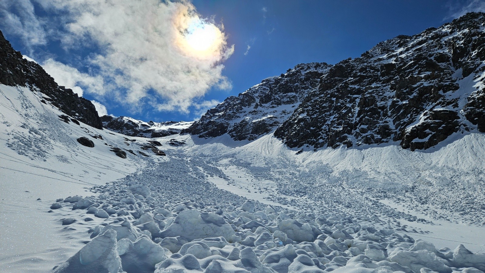 Conditions pour le ski : Petite couche de neige tombée dans la nuit. Globalement très bon, même excellent pour la saison. Le petit couloir de la fin est assez mauvais pour descendre à ski, une coulée l'a rendu bien dure. En dessous du couloir c'est un peu crouté mais rapidement meilleur.