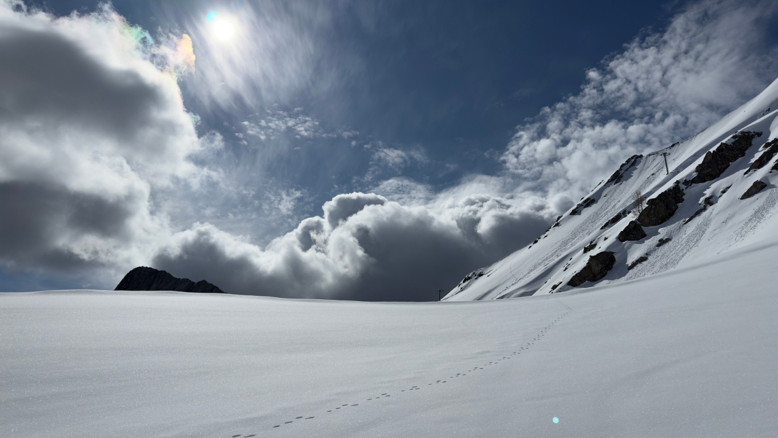 Bon regel nocturne, la chute de neige de la veille a amené des nouveaux centimètres de neige fraiche, la montagne est complétement lisse.