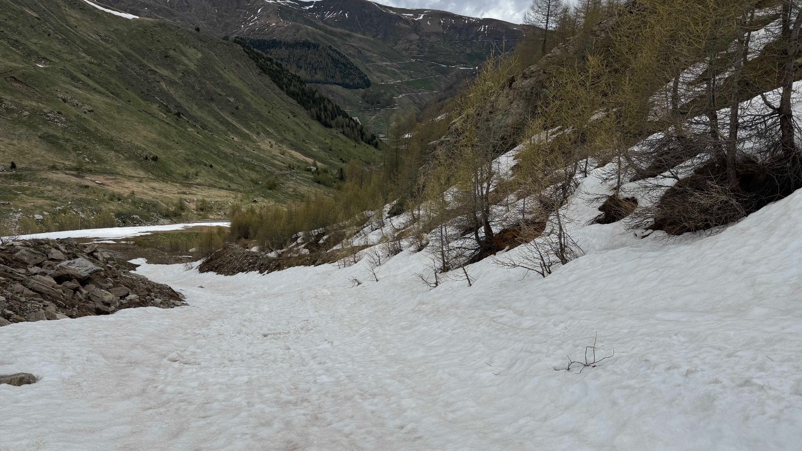 Les avalanches ont remplis le torrent, Halpipe pratique pour redescendre