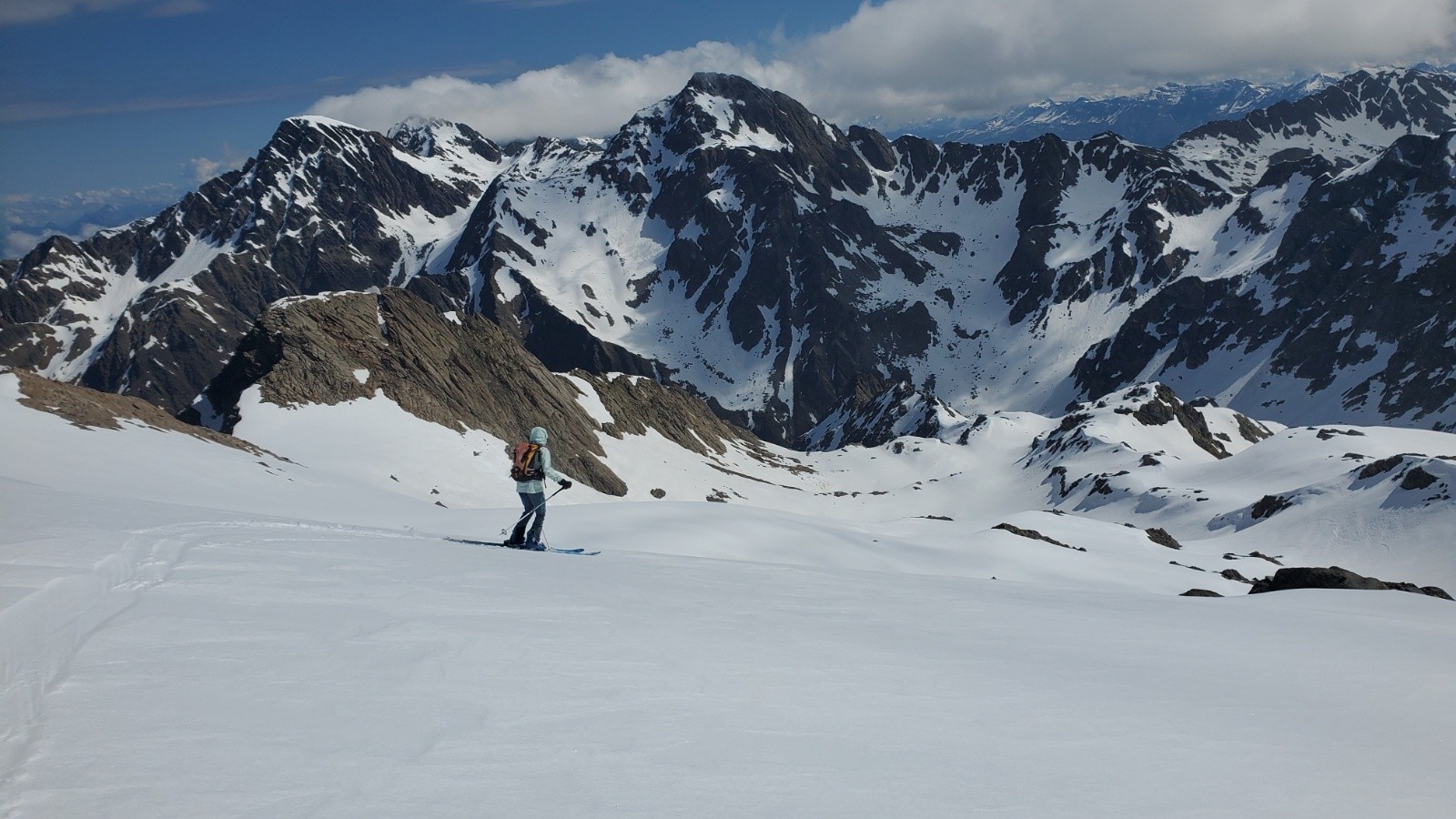 Conditions nivo et activité avalancheuse : RAS ce jour sauf une petite coulée de surface dans une pente un poil raide lors de la dernière descente (on s'y attendait !)... Tous les couloirs sont en boules (Marmottane etc)... Même le col Dulong de Rosnay est en boule...