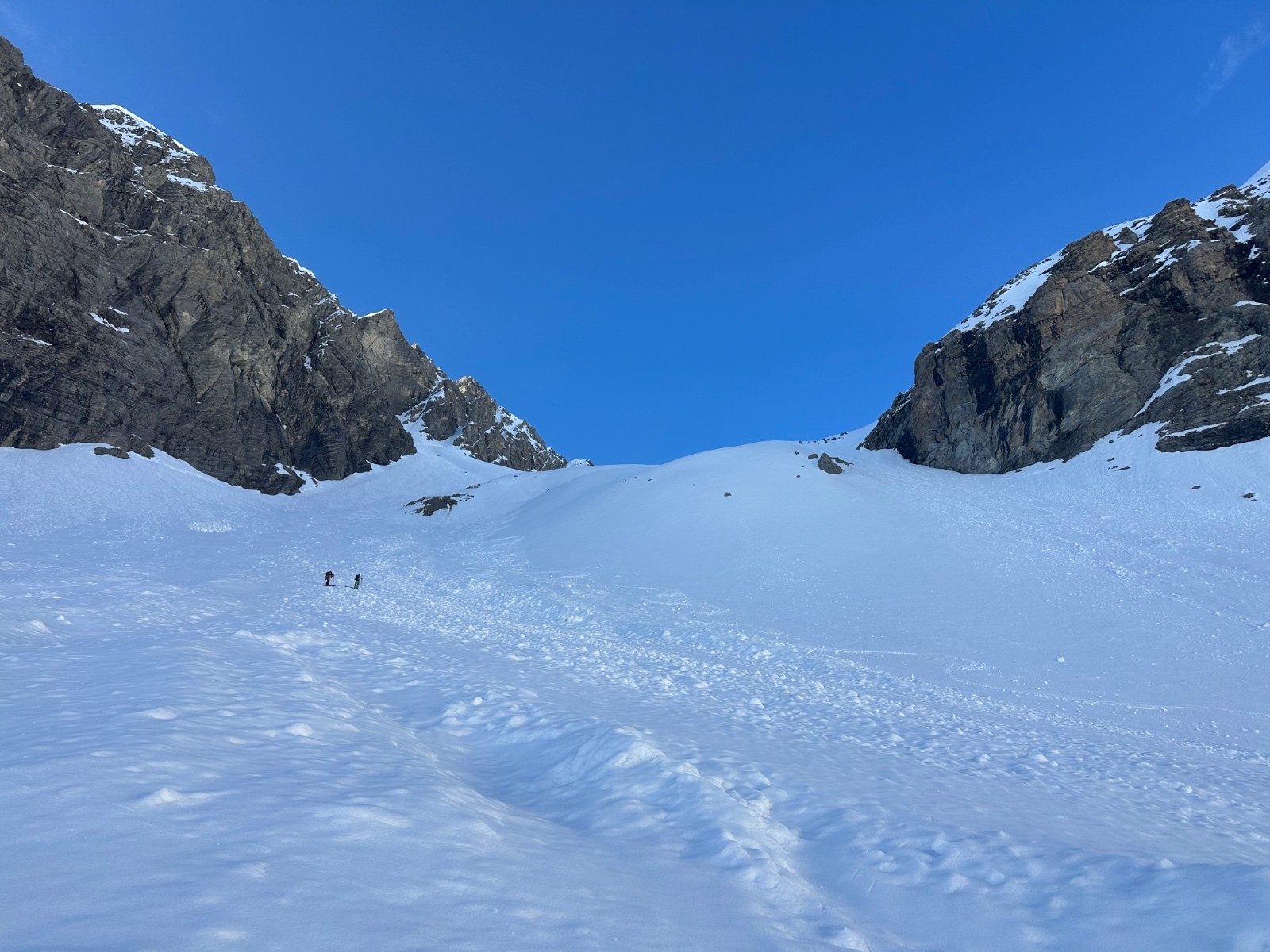 Conditions pour le ski : bon regel nocturne, couloir en condition, moquette 4* en descente.
