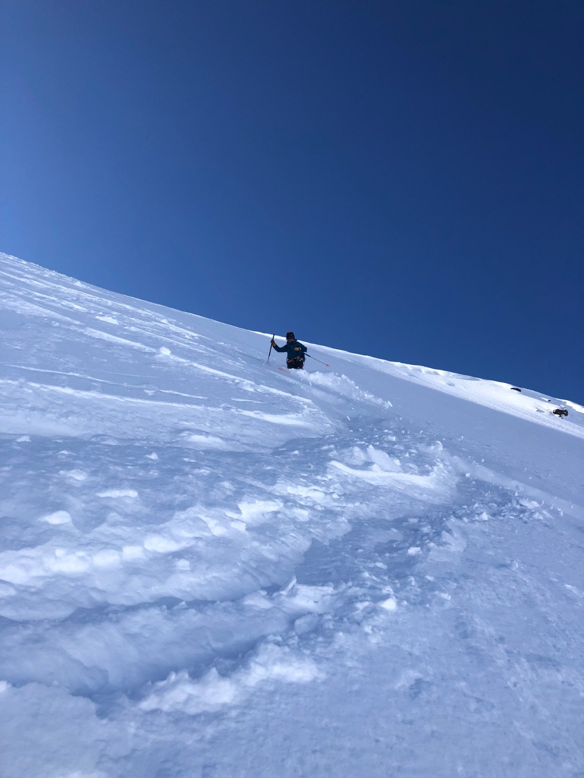 Conditions pour le ski : Fantastiques les 300m du haut puis croûte légère qui se skie bien puis croûte plus compliquée puis beton et enfin mega moquette sur le glacier et descente du col du Tondu