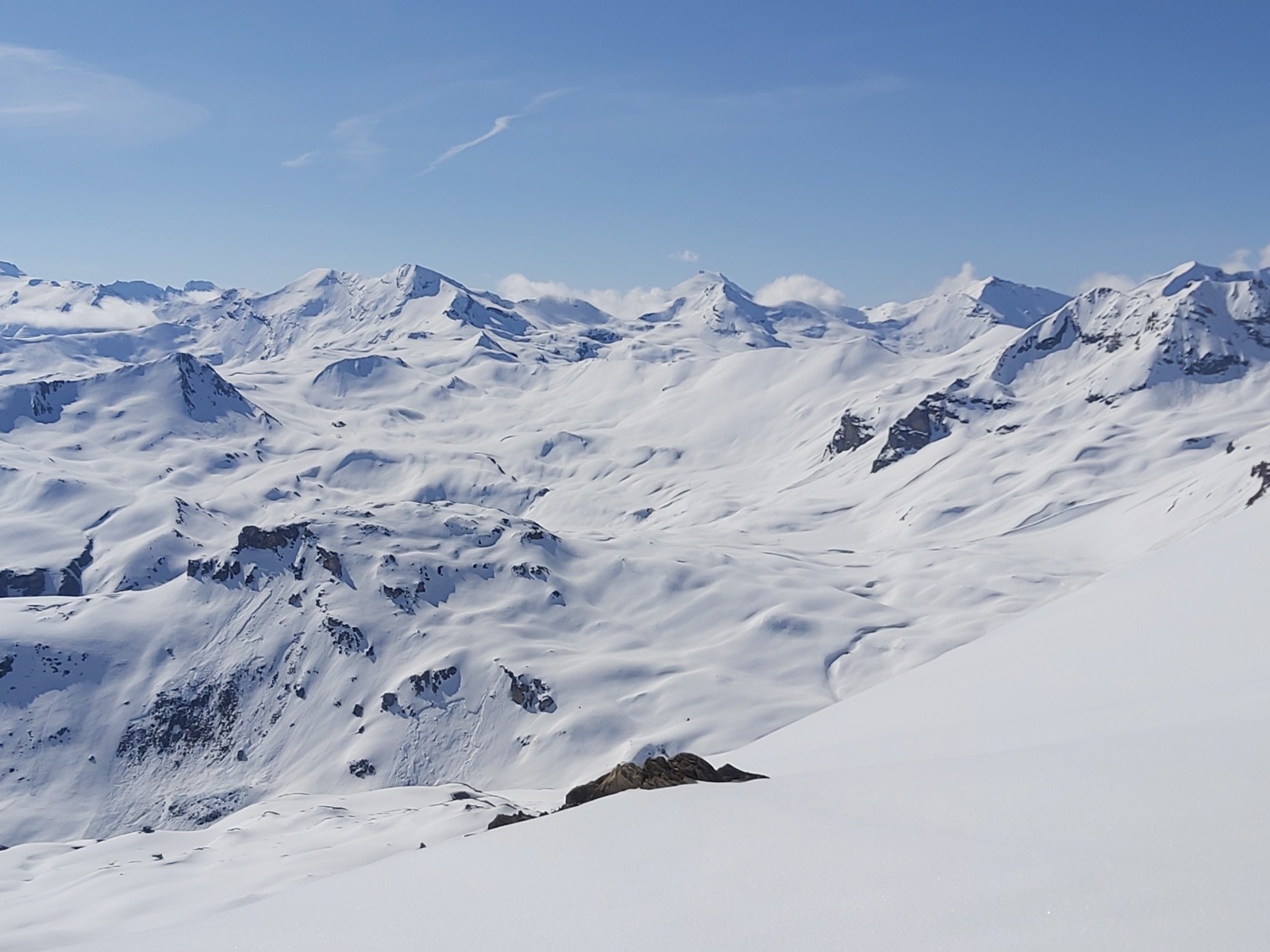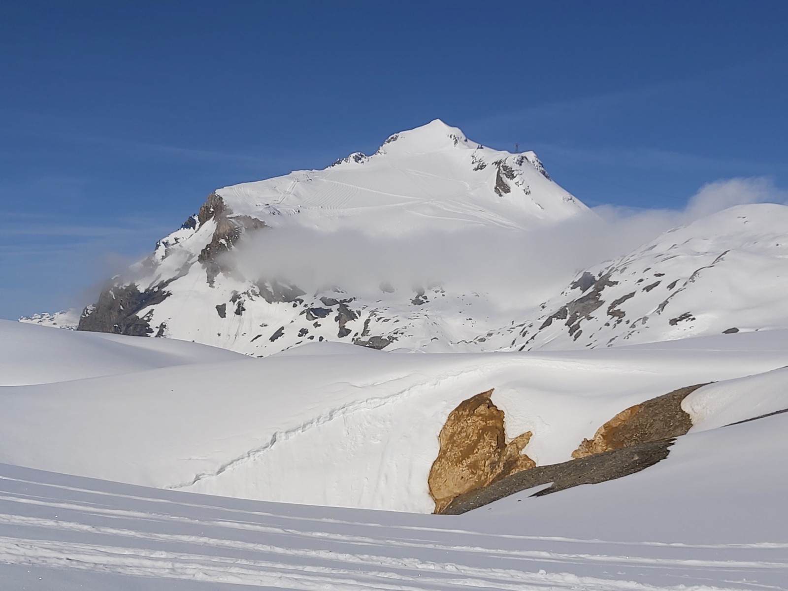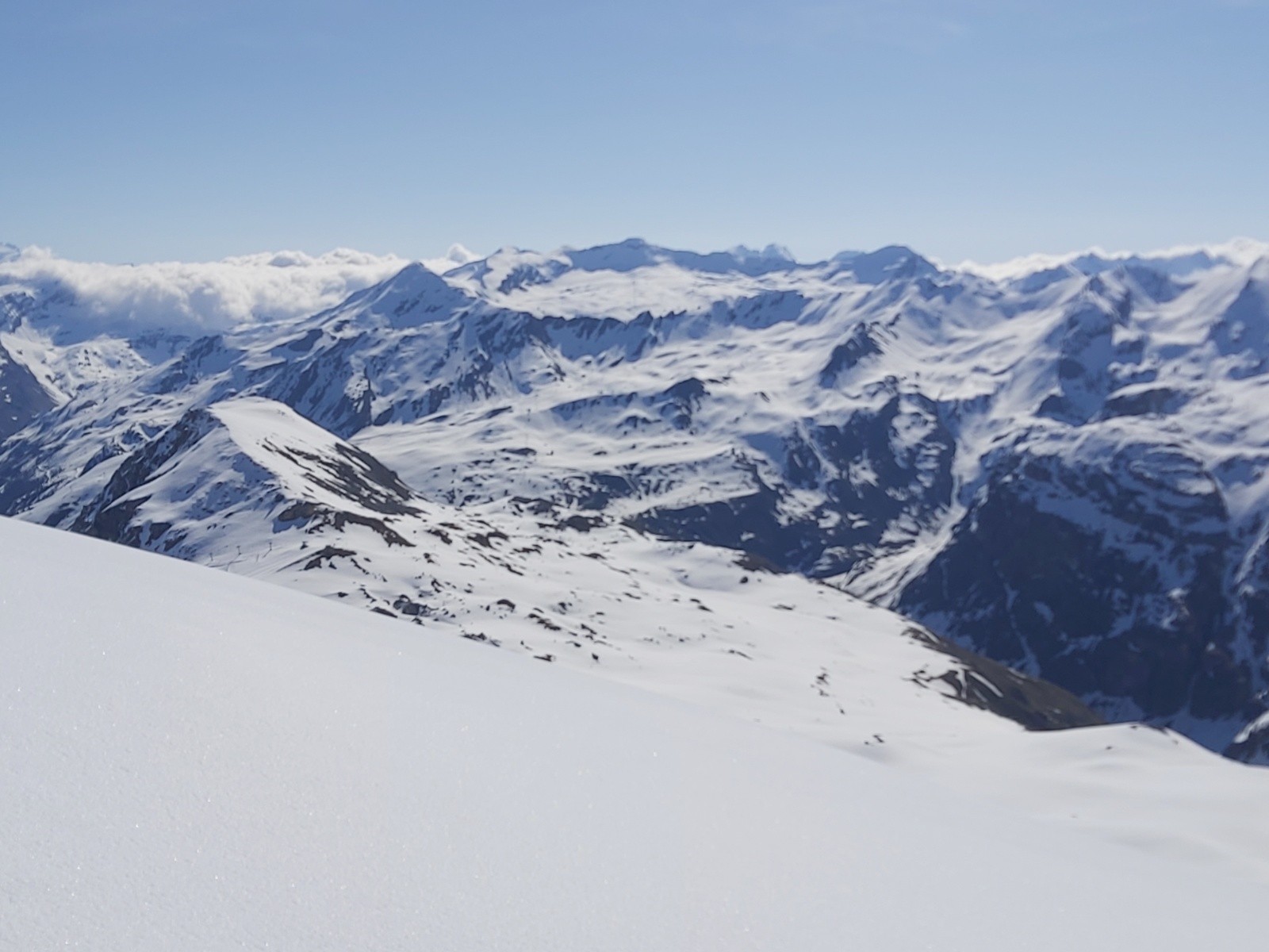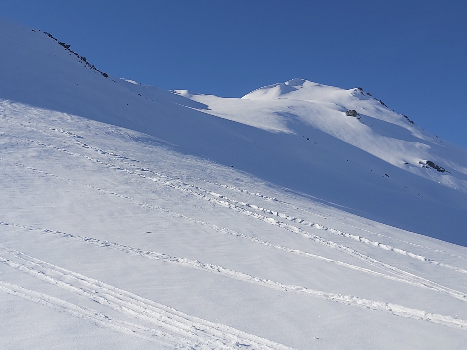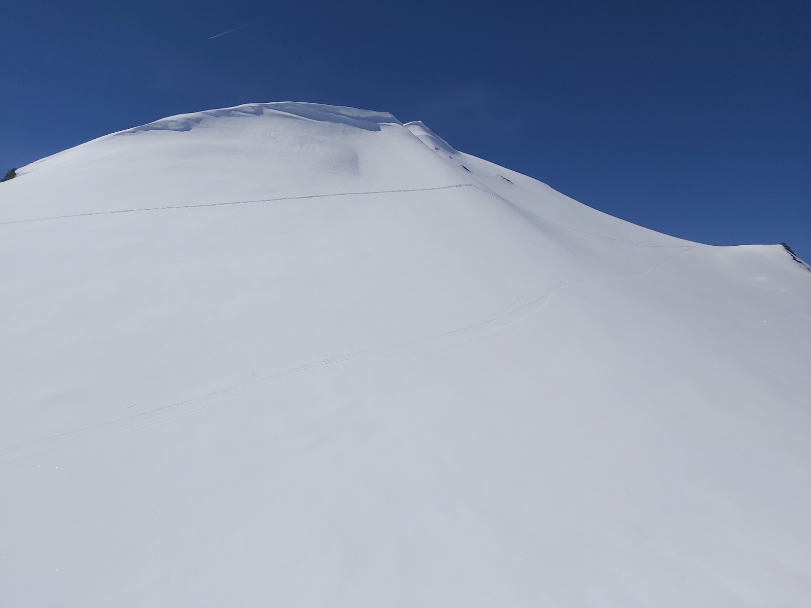 Conditions pour le ski : bonne neige dur dans les pentes finale et sommitale avec un bon grippe