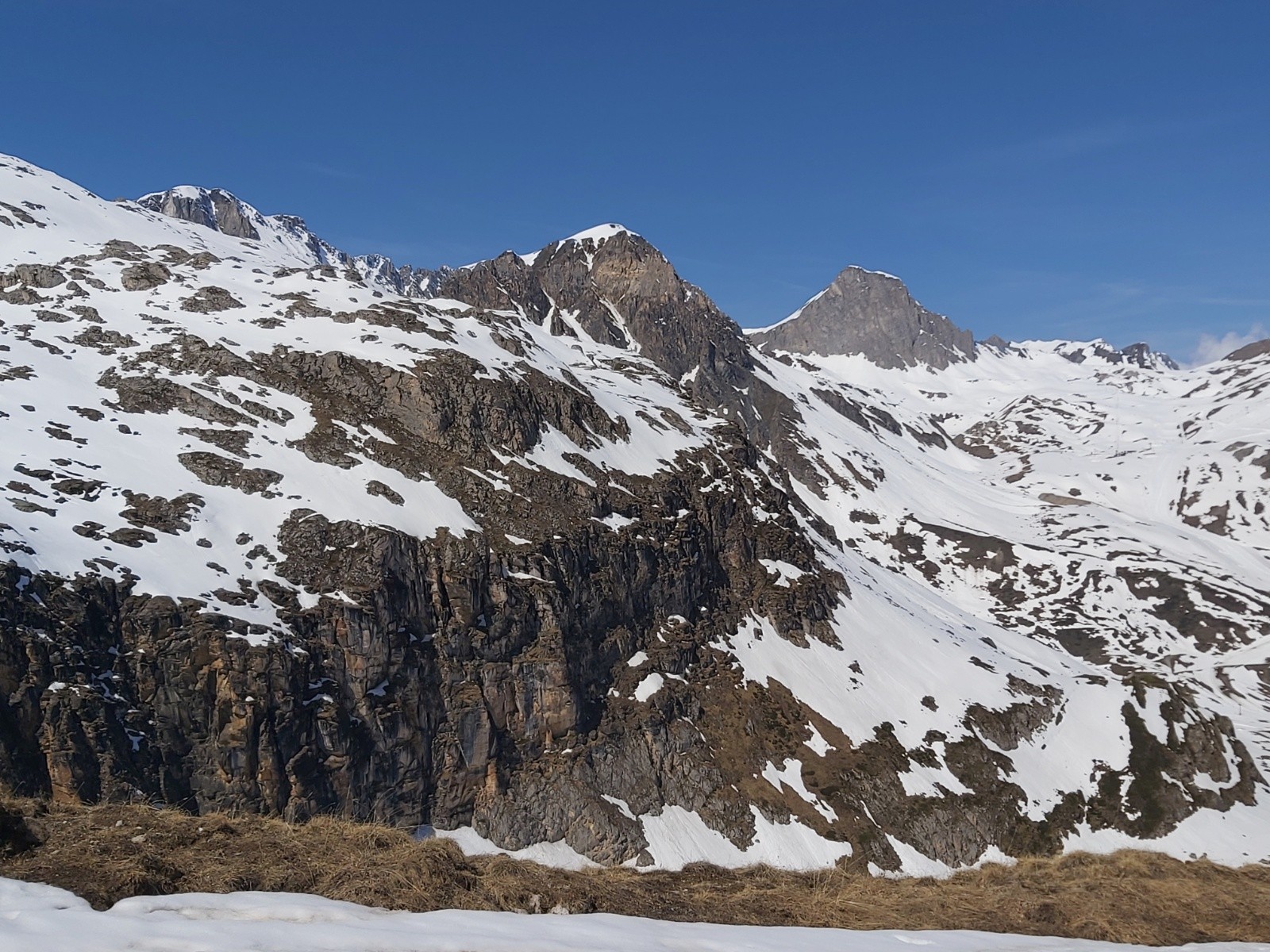 Itinéraire suivi :depuis le parking du val claret suivre la piste de ski du télésiège de Bollins fresse puis suivre la piste bleue qui bifurque à droite jusqu'au col de la Leisse de l'itinéraire et évident dépasser les lacs de la Leisse et monter les pentes soutenue couteaux puis atteindre un replat ,ensuite après une pente moins raide le col sans nom sur la carte puis traverser de gauche à droite la pente terminale pour rejoindre l'arête qui conduit facilement au sommet