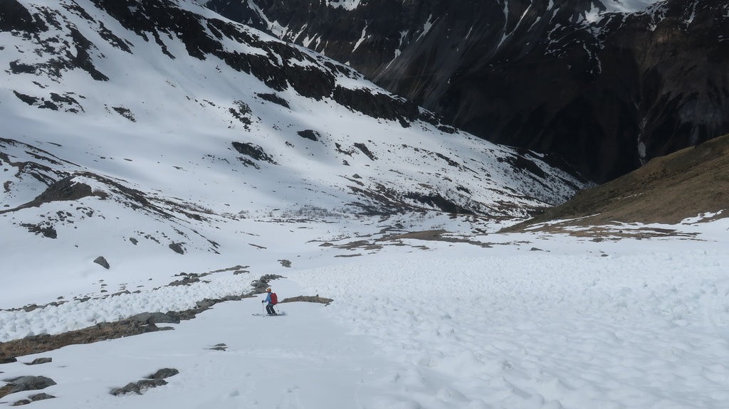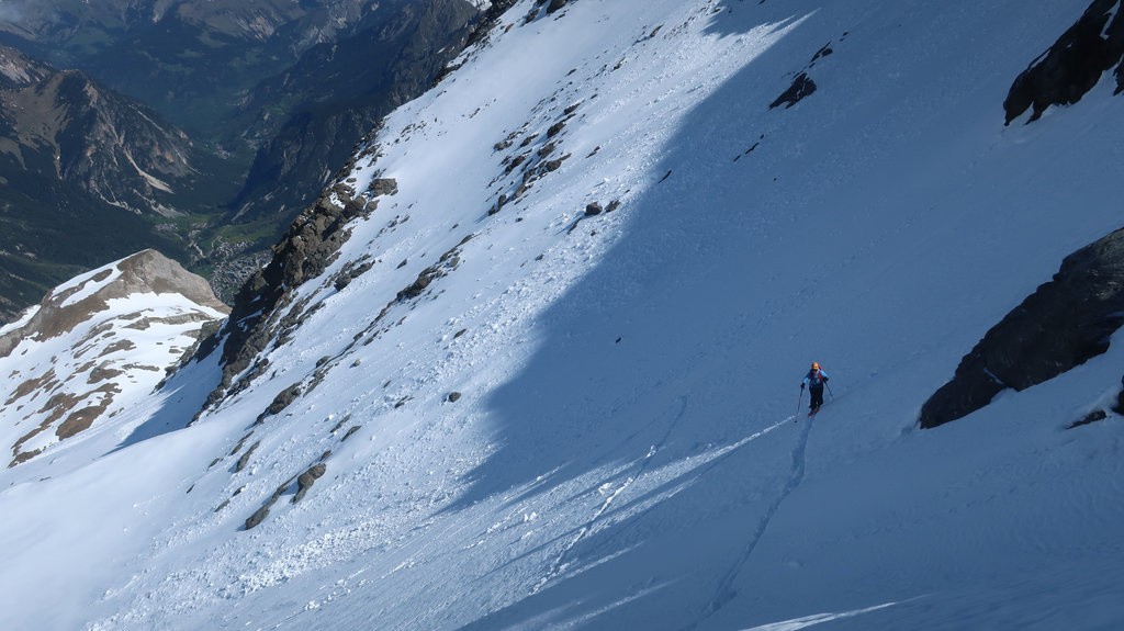 Pas de traces dans le secteur, il a fallu tracer au dessus de 3000 m quand la neige n'était pas encore transformée.