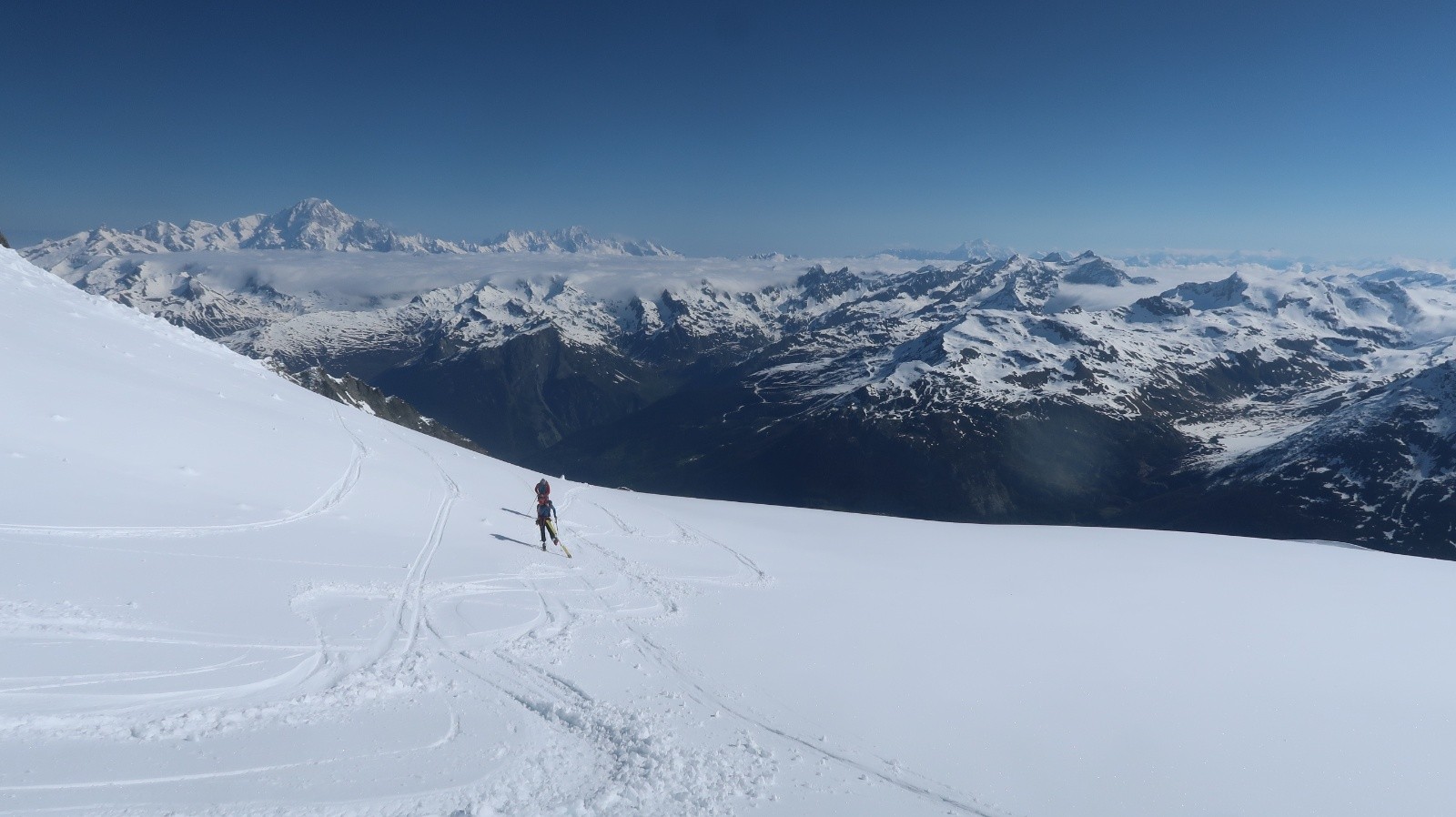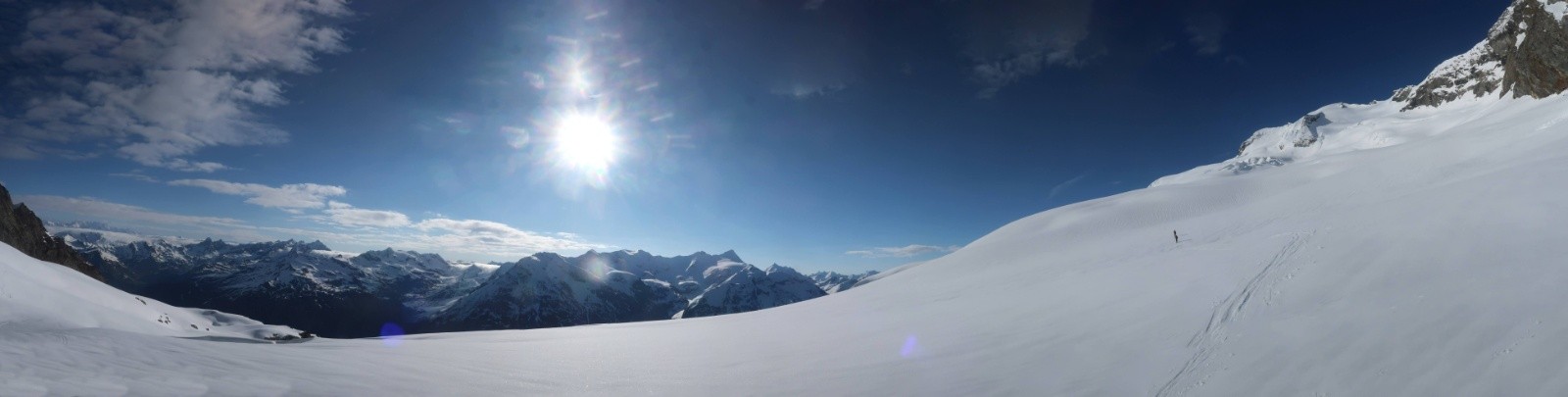 Bonus à la Sache le lendemain avec une superbe journée ensoleillée, des condis de skis au top, et un panorama assez exceptionnel du sommet !