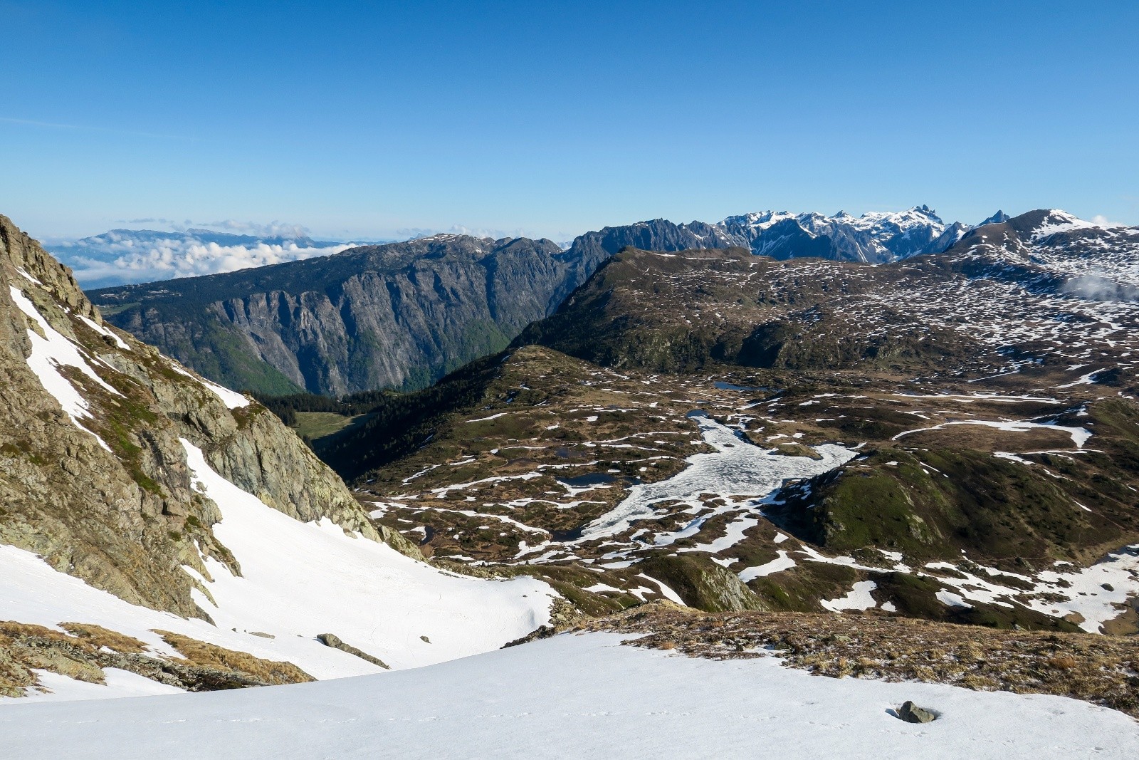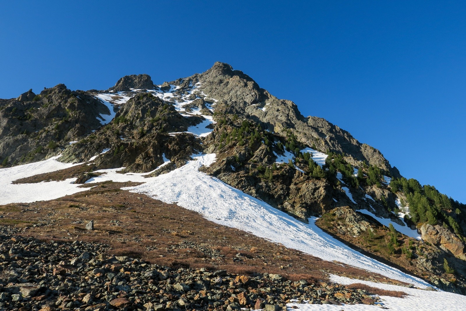 Une fois au sommet, j'aurai volontiers fait un tour en face est avant d’enchaîner sur la Pyramide, mais les gros cumulus commençant à prendre les sommets j'ai décidé de descendre au soleil.