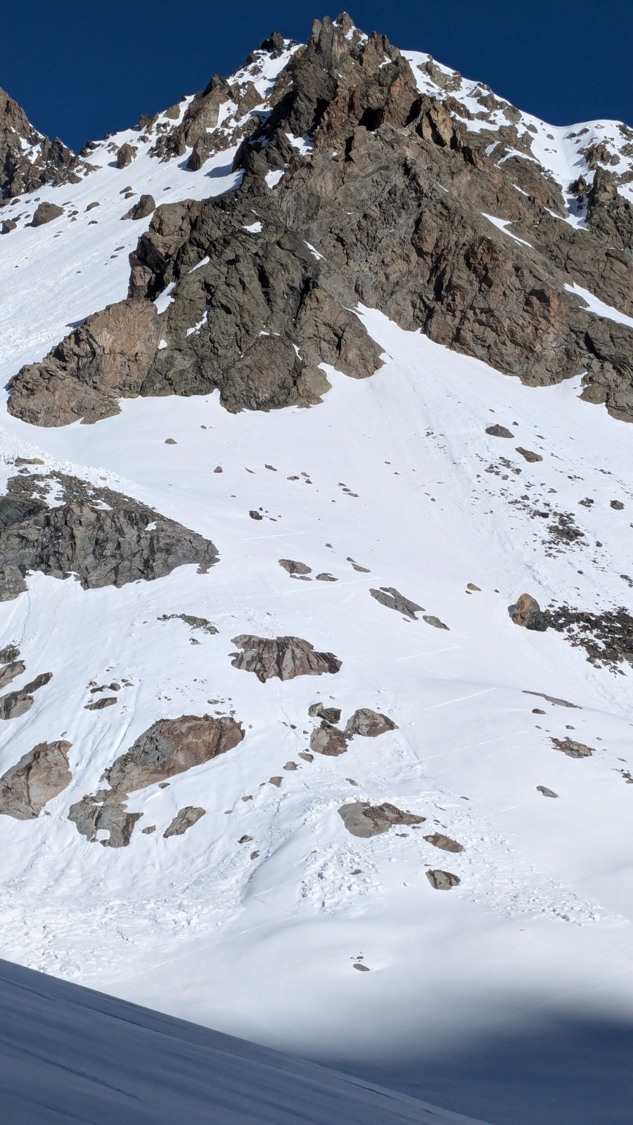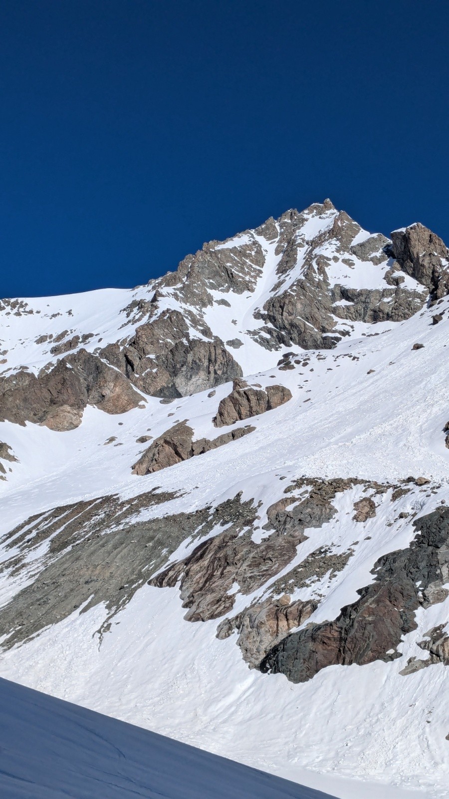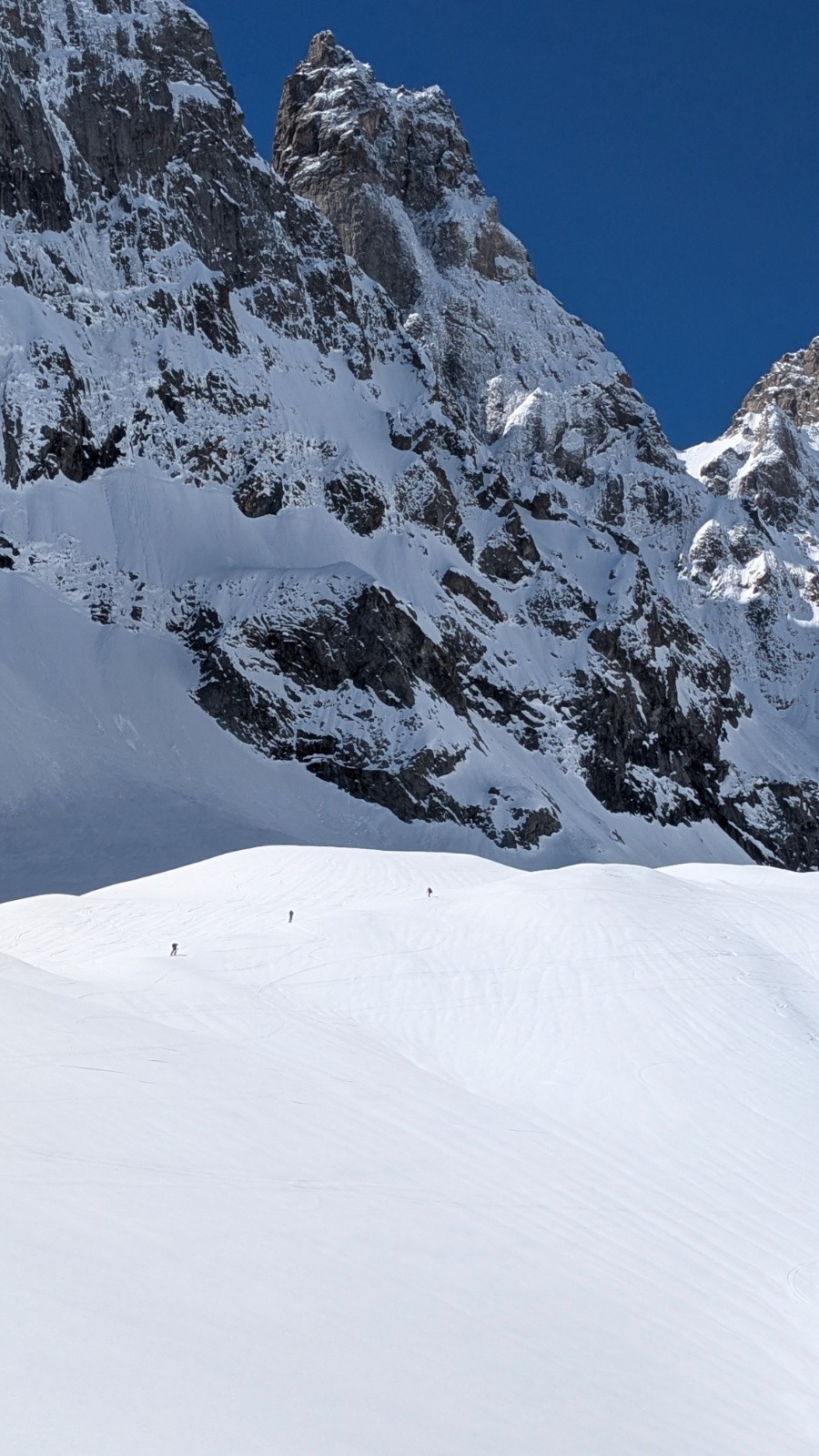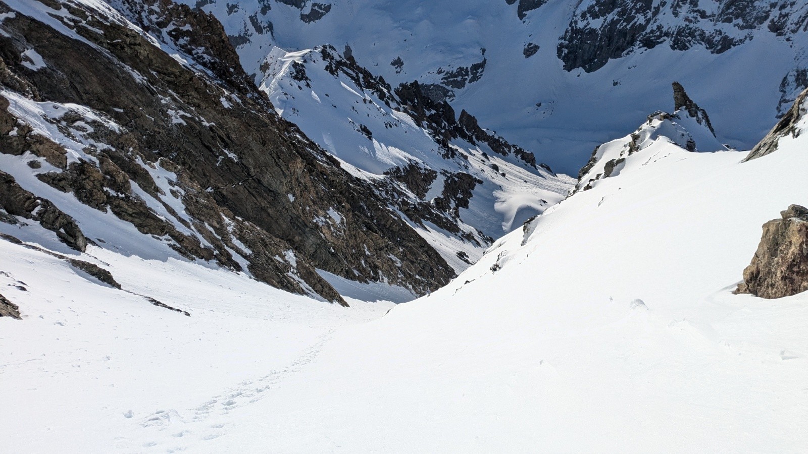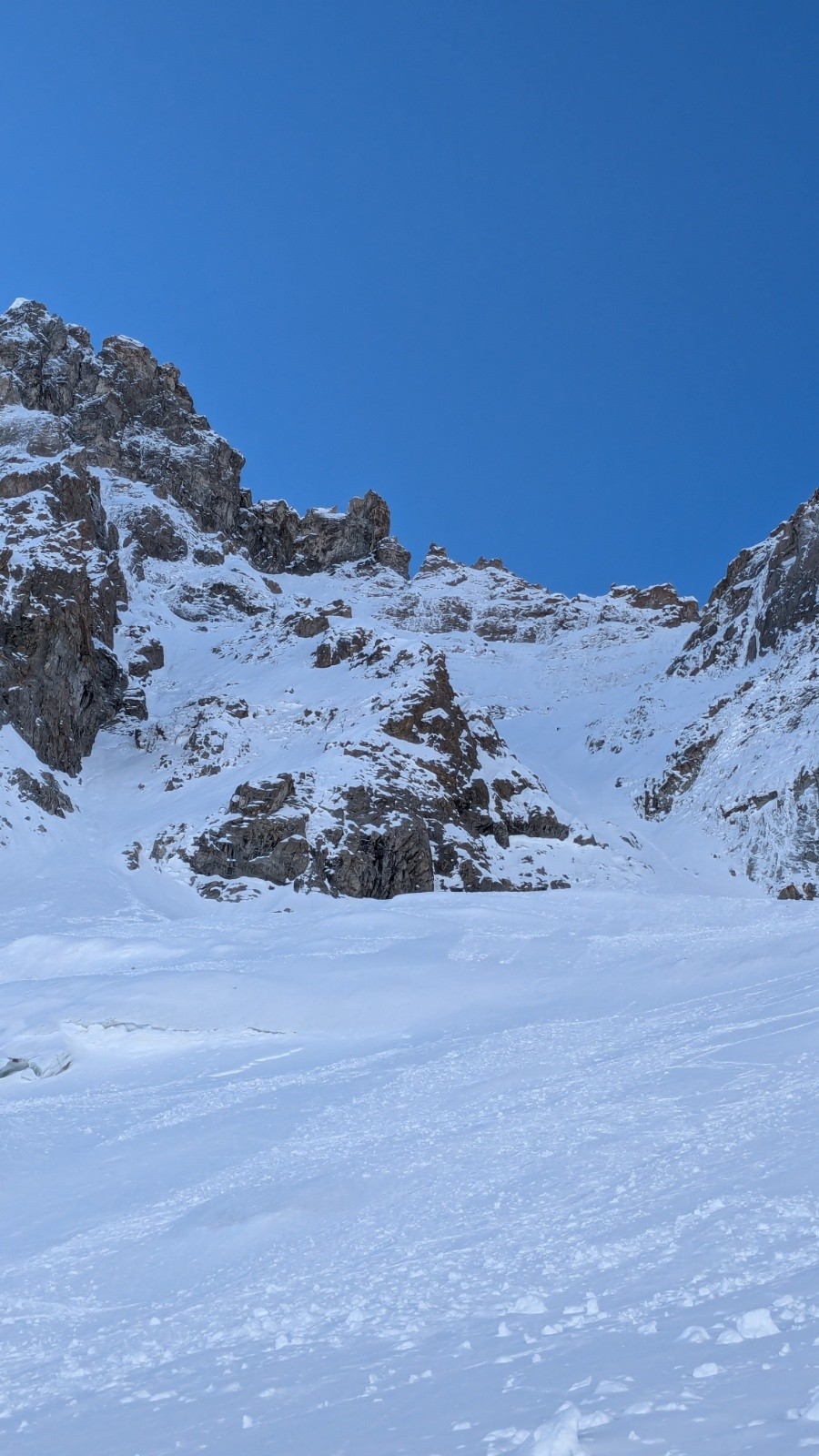 Conditions pour le ski : pas trop mal dans l'ensemble, quelques centimètres de neige fraîche adouciront la chose. Mais la rive gauche du couloir SE est en pas transfo jusqu'au fond et dès qu'elle réchauffe tu passe à travers.