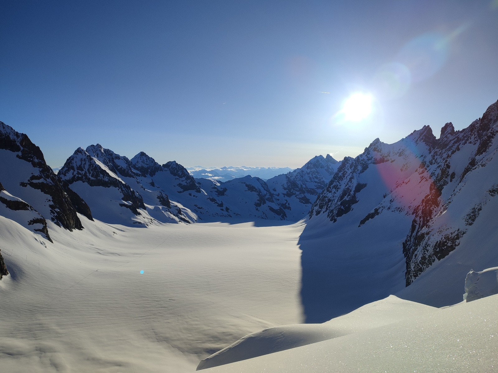 Col de la Grande Sagne : Descente à 12h. Couloir et glacier en neige transfo agréable et bien lisse. Ravin de l'Armaille c'est un chantier mais avec une neige ultra transfo c'est pas pire que si c'était pire.