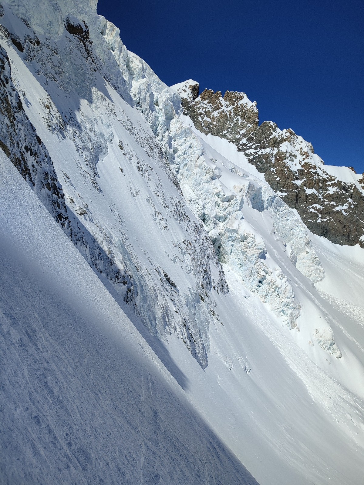 Conditions nivo et activité avalancheuse : aérosol après des chutes de sérac, qq purges du PelvouxSkiabilité : 🙂 Bonne