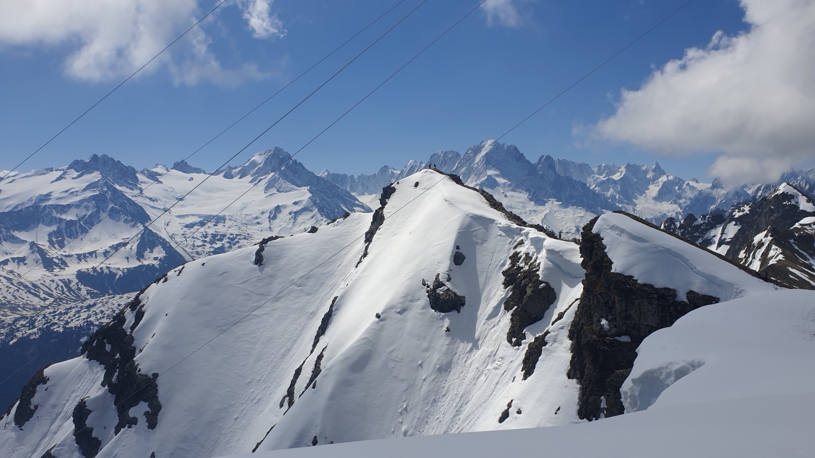 Conditions pour le ski : excellentes neige commençant à transformer sous le sommet et encore bon dans la combe grâce au bon regel de la nuit et au petit vent ce matin