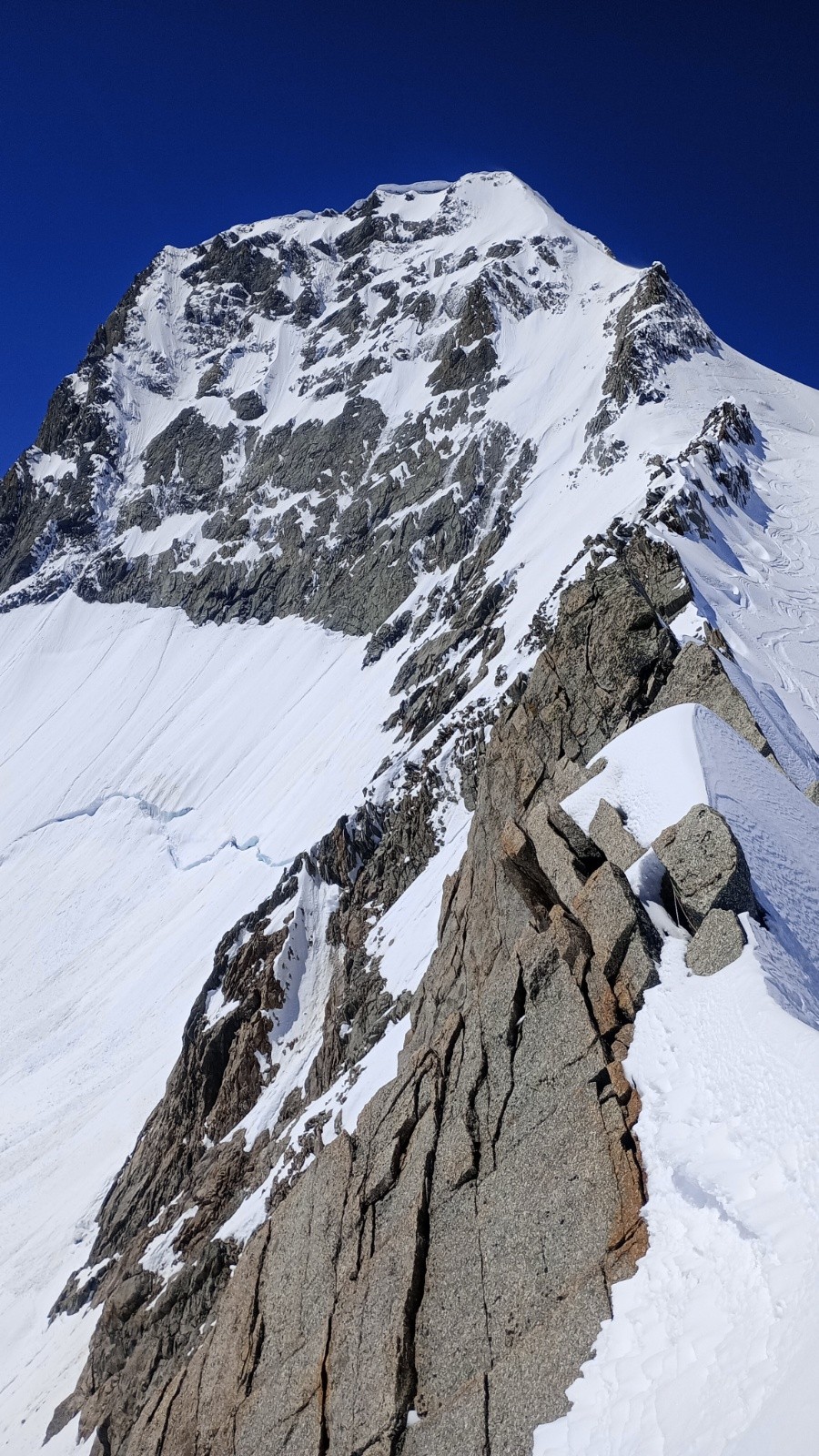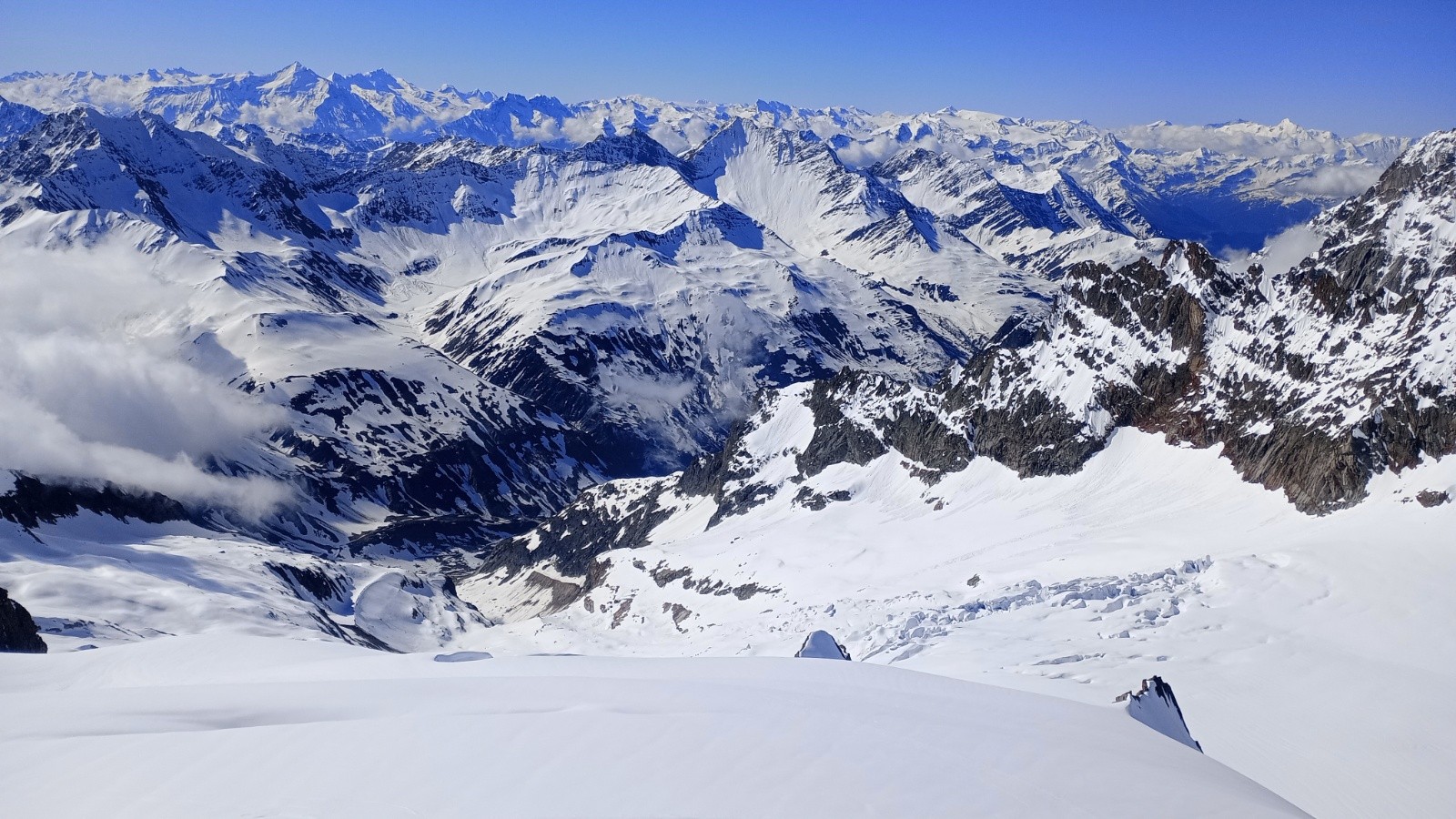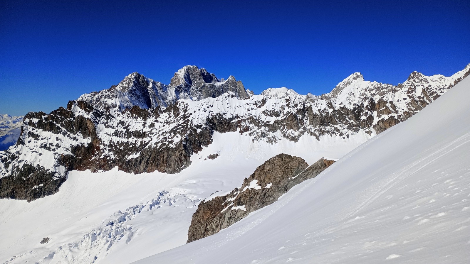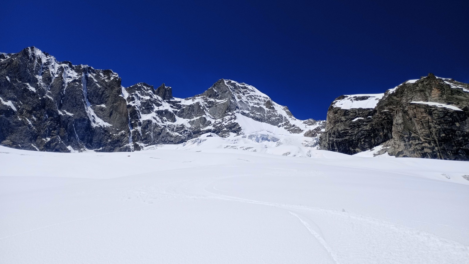 Conditions pour le ski : Superbe sur l'arête : poudreuse encore froide, puis transfo sur les glaciers
