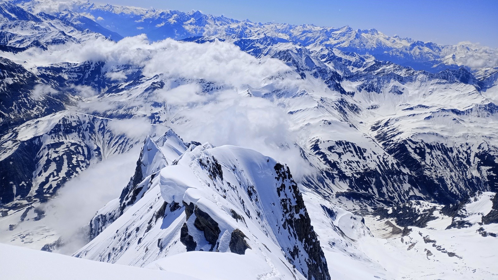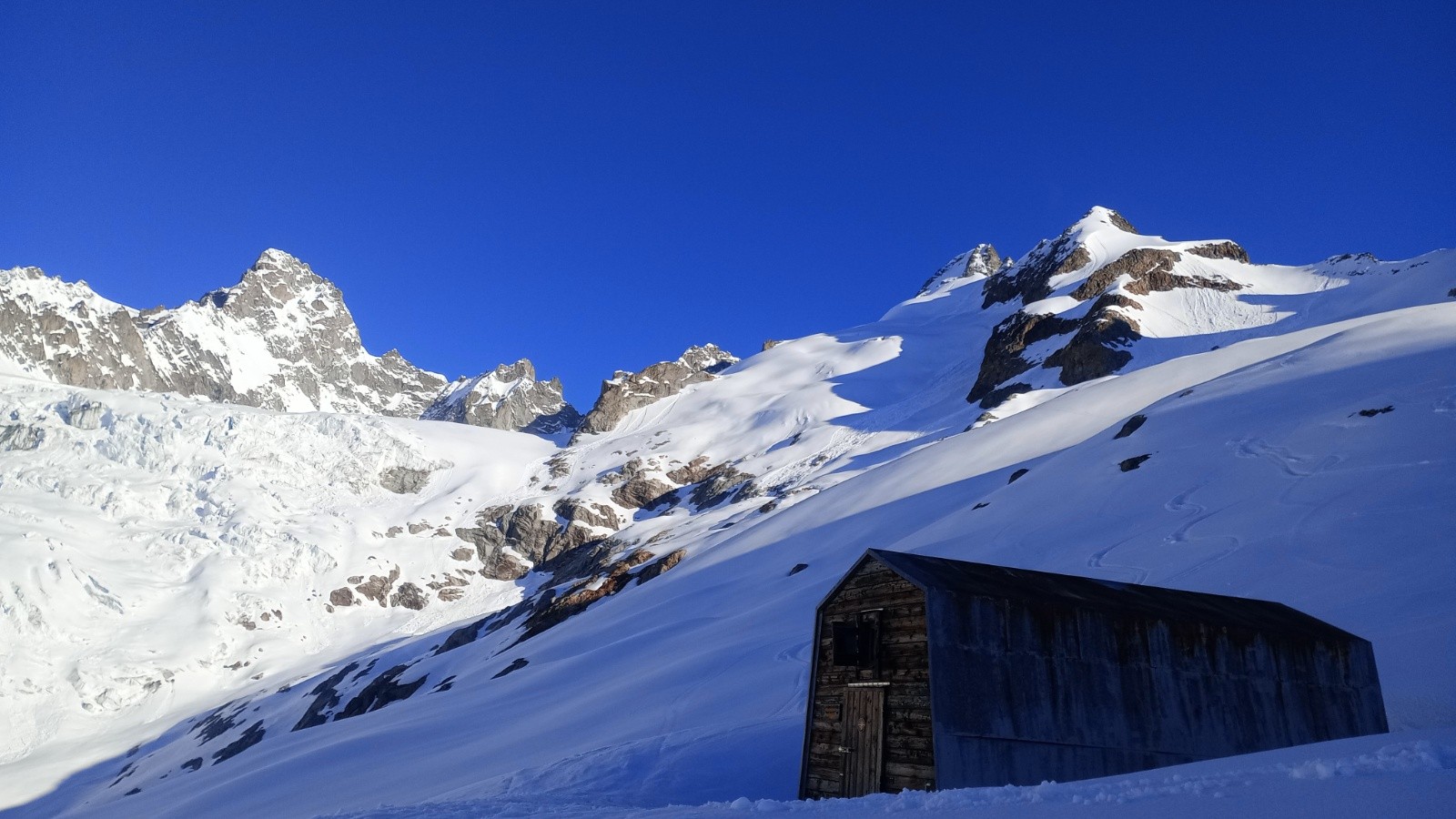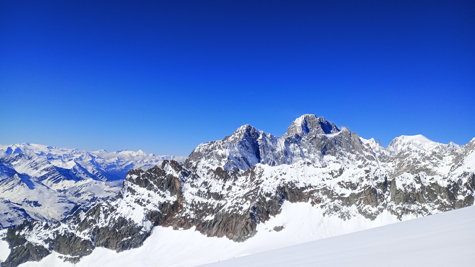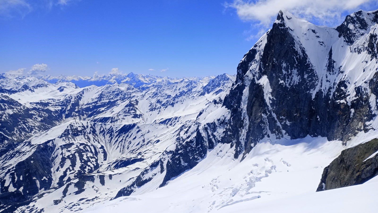 Conditions pour le ski : Superbe sur l'arête : poudreuse encore froide, puis transfo sur les glaciers