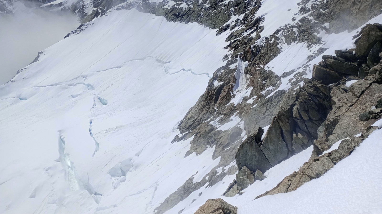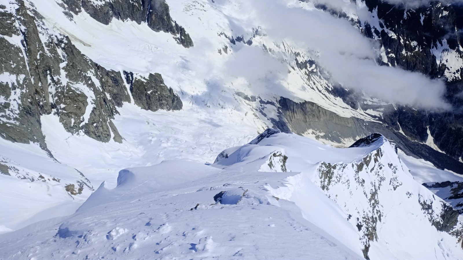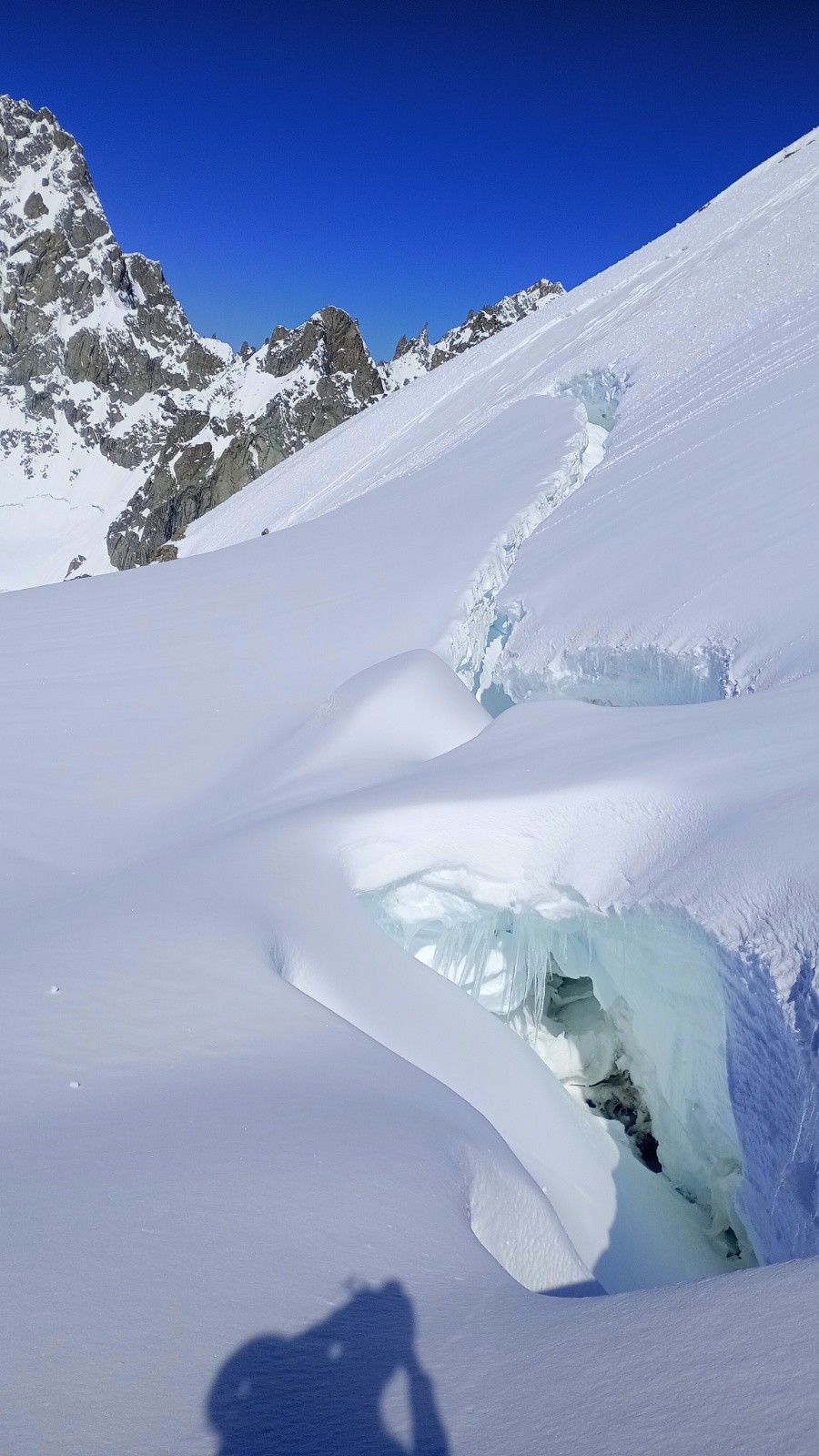 La descente est vraiment classe, sur l'arête suspendu puis entre les nombreuses crevasses c'est grandiose. J'ai adoré :)