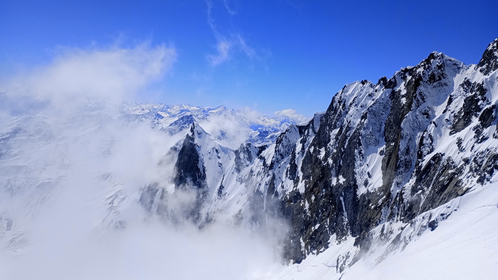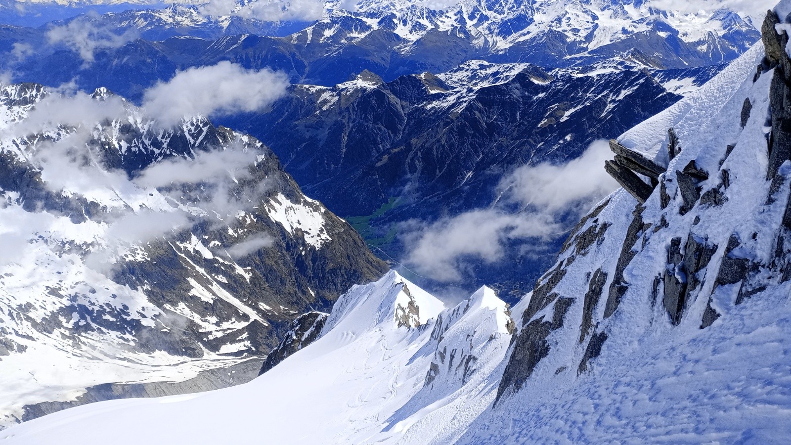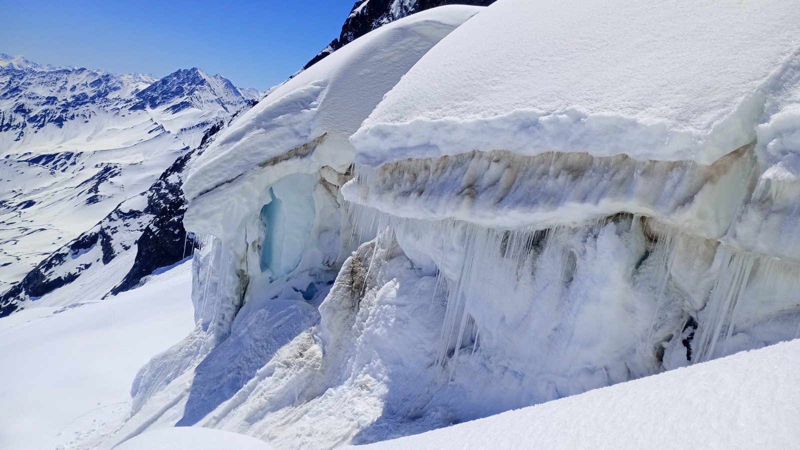 La descente est vraiment classe, sur l'arête suspendu puis entre les nombreuses crevasses c'est grandiose. J'ai adoré :)