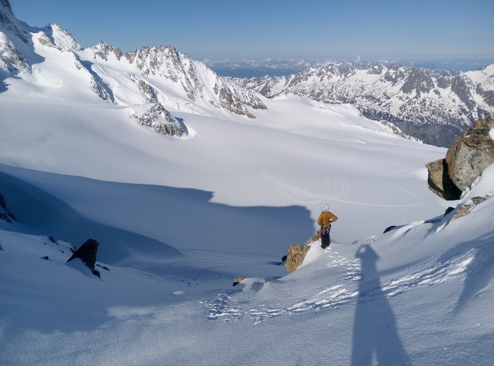 Conditions pour le ski : Excellentes conditions. Les 2 premiers soirs saupoudrage. Poudre encore froide en face nord au dessus de 3300m.