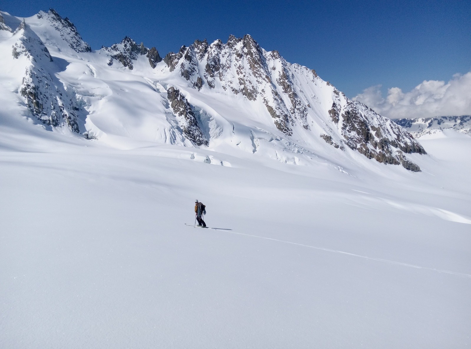 Nous avons surtout traversé le glacier du Tour pour rejoindre le glacier du Trient et de la Saleina. Voici les conditions des différents cols de passage. Le plus simple actuellement est de monter au col supérieur du tour pour une traversée Tour-Trient.