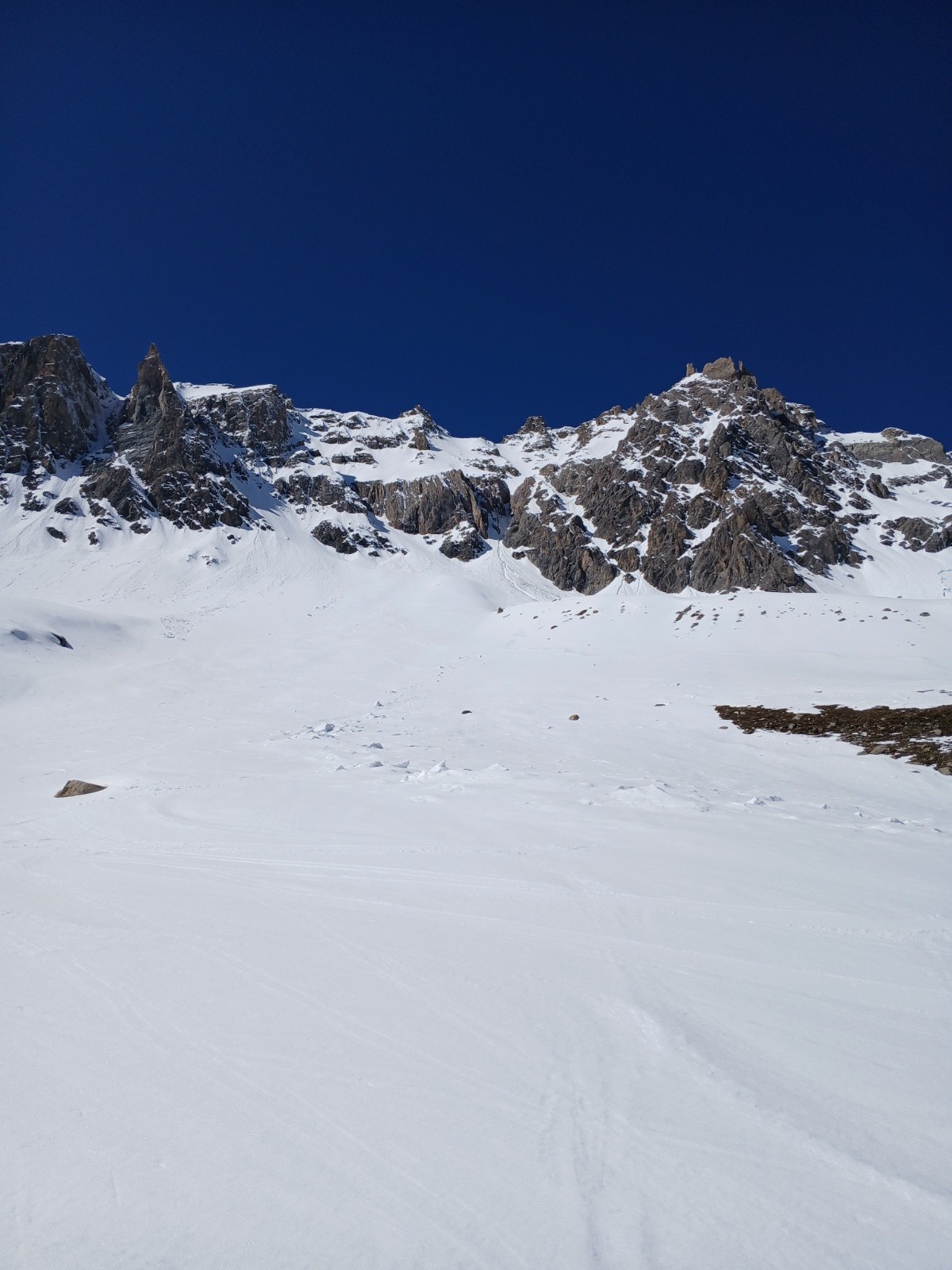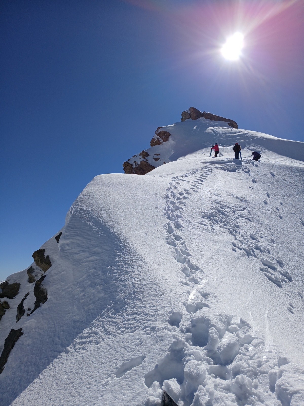 Conditions pour le ski : neige froide en haut, dur mais accrochante dans le couloir Nord puis moquette sur le bas