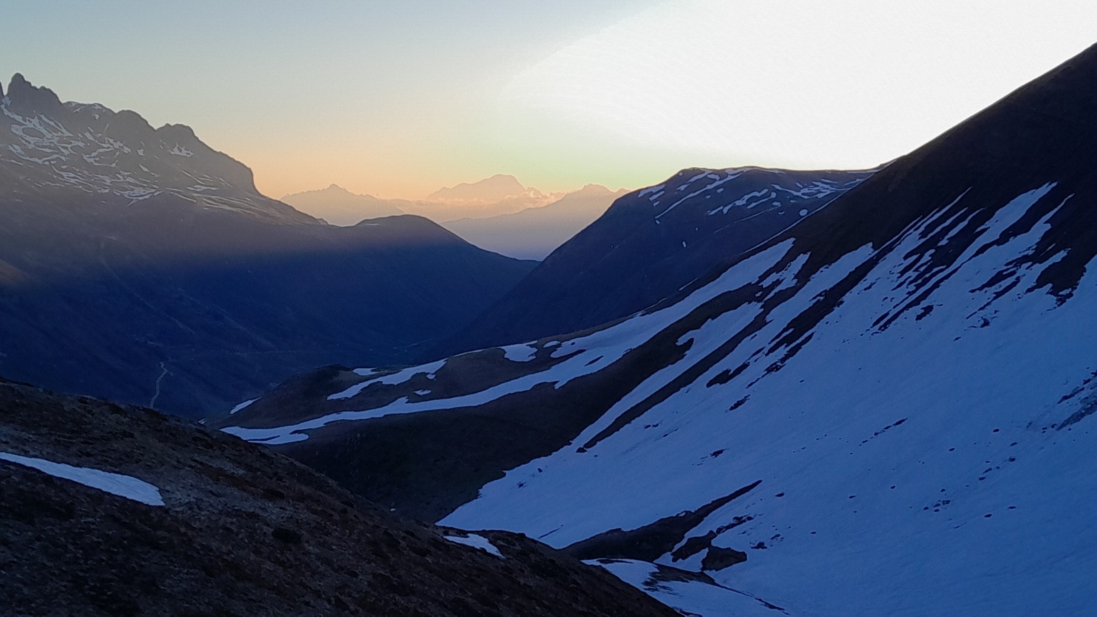 Bonne neige à la descente. Trop bonne, même. Arrivé à la base de la combe menant à la Brèche de la Cochette, j’ai vu une pente ; elle m’a vu aussi. Pourquoi refuser l'invitation. Monté jusqu’à 2950 en bifurquant vers le glacier Nord de la Barbaratte, puis redescendu. Neige très dure non décaillée en haut puis de mieux en mieux.