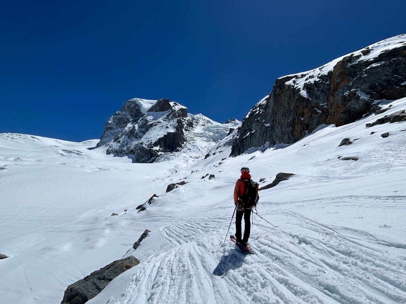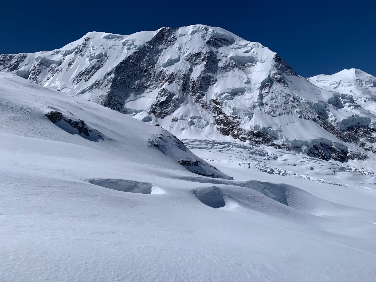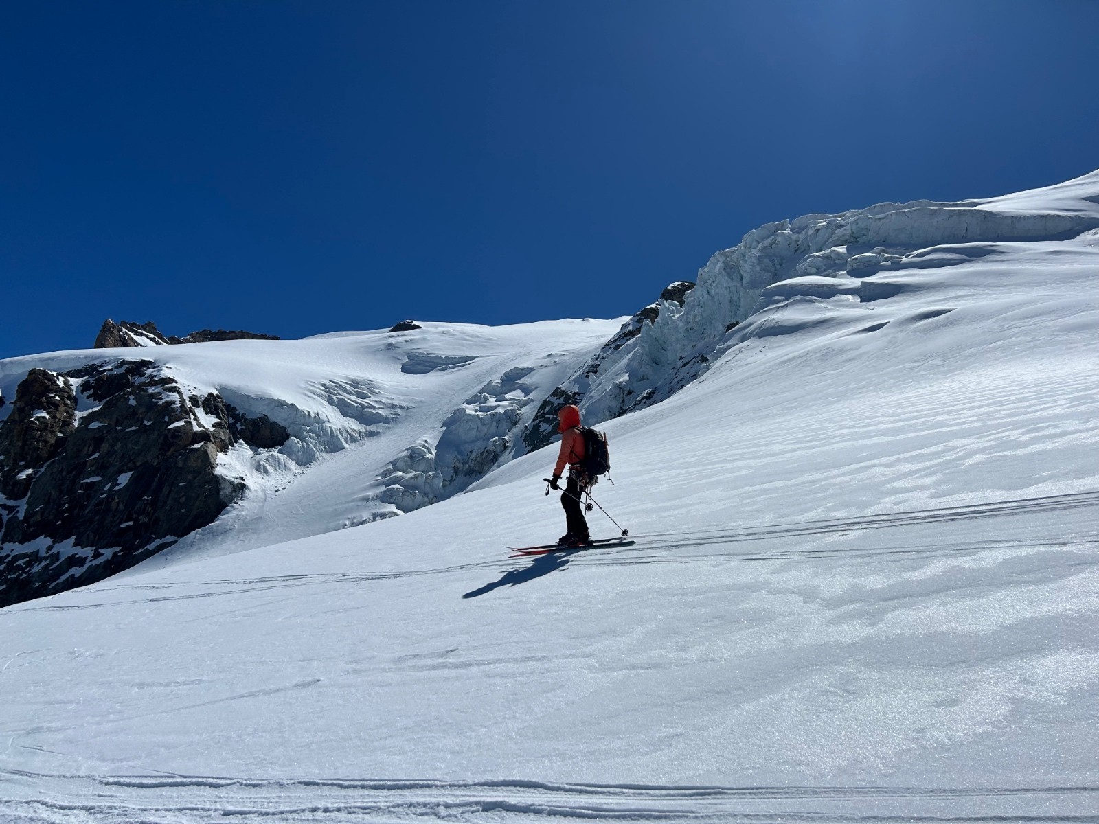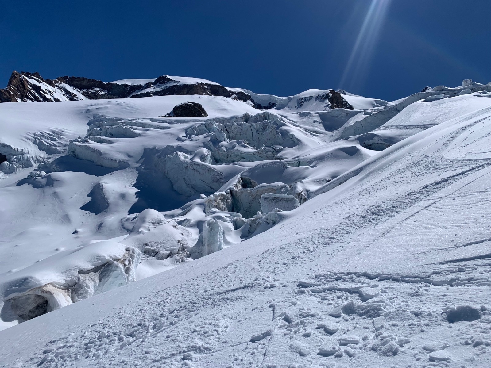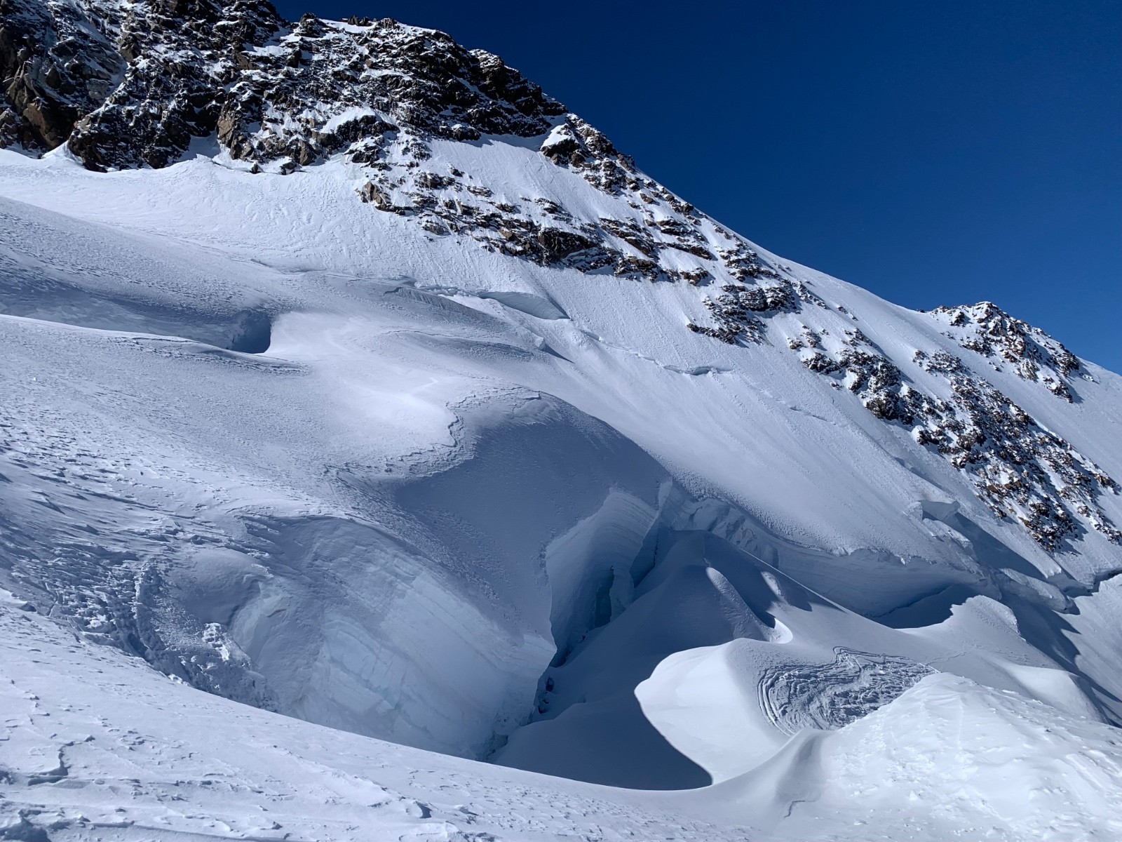 Ensuite on trouve de la neige durcie par le vent puis les passages, puis de la poudreuse trafollee.
