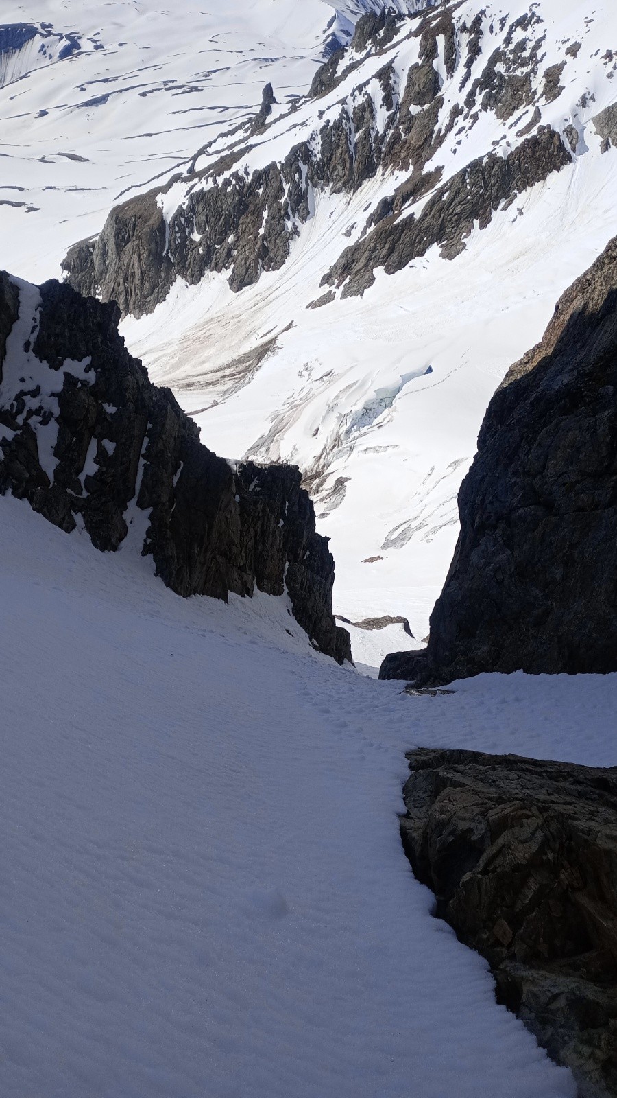 Le couloir pour rejoindre le glacier de l'estellete est esthétique bien qu'en neige dure.