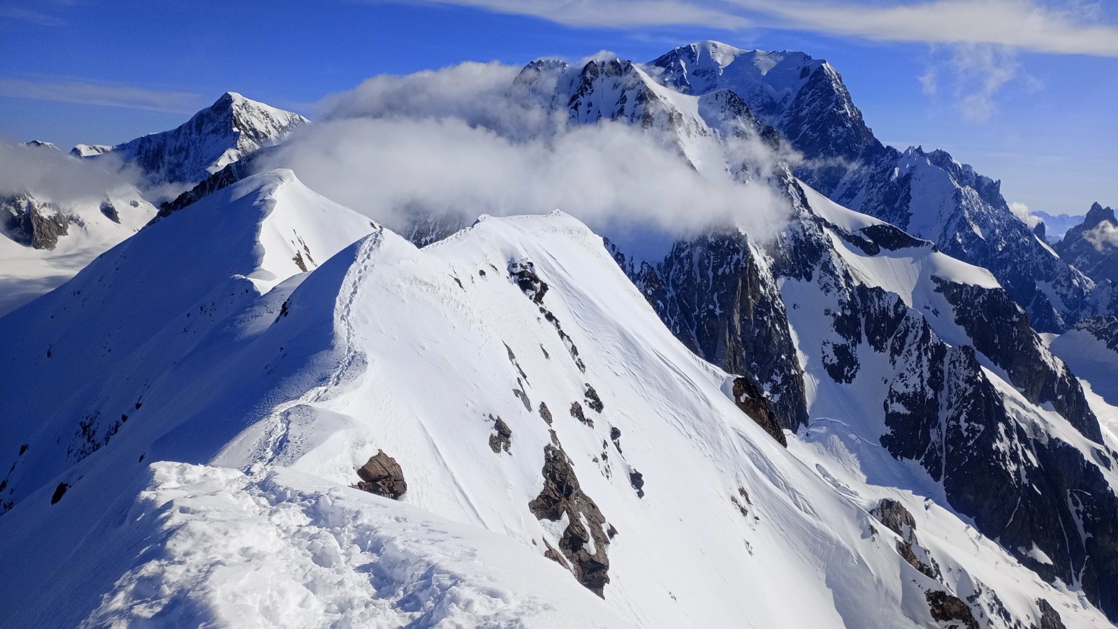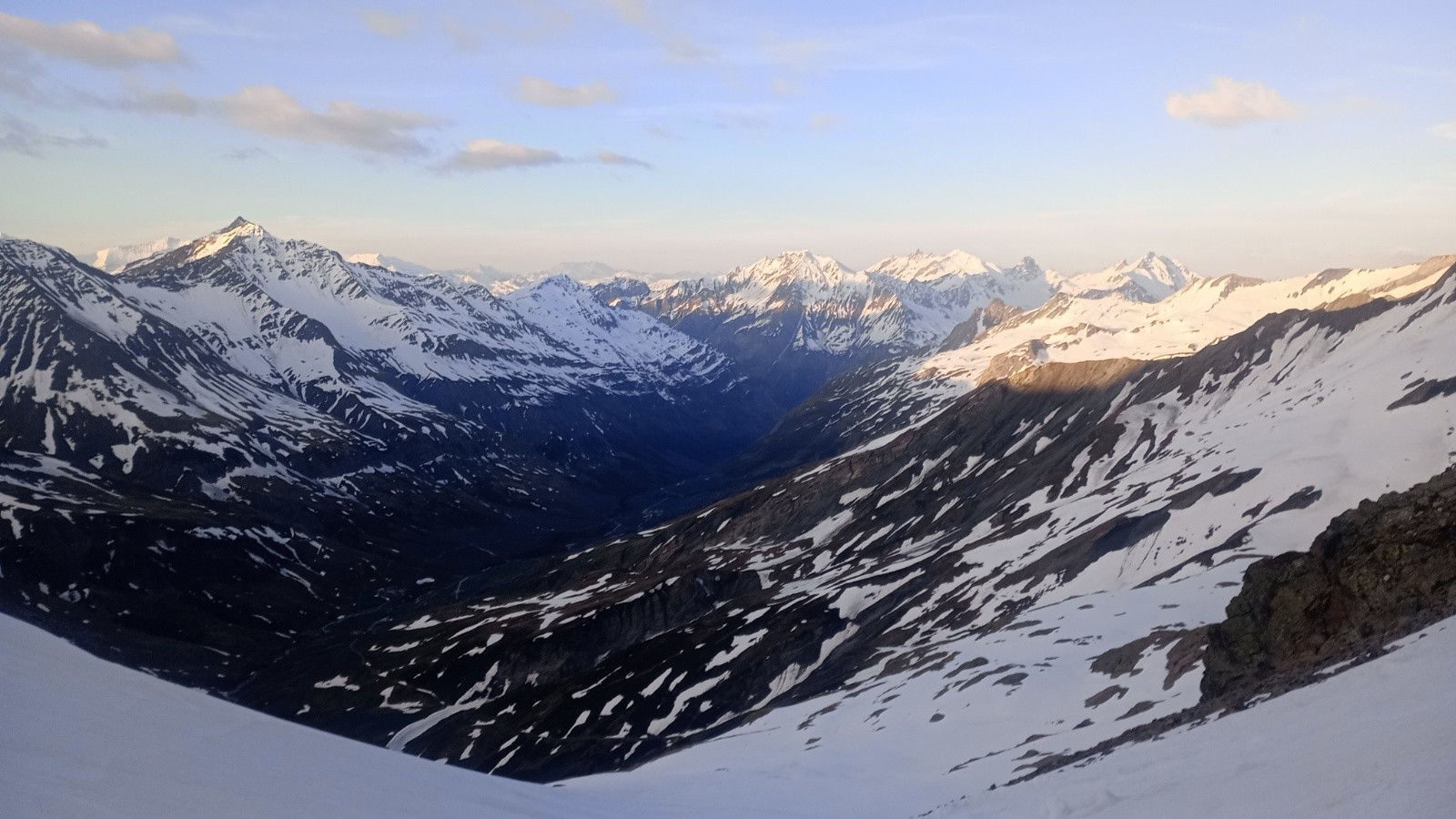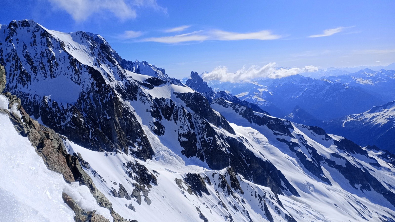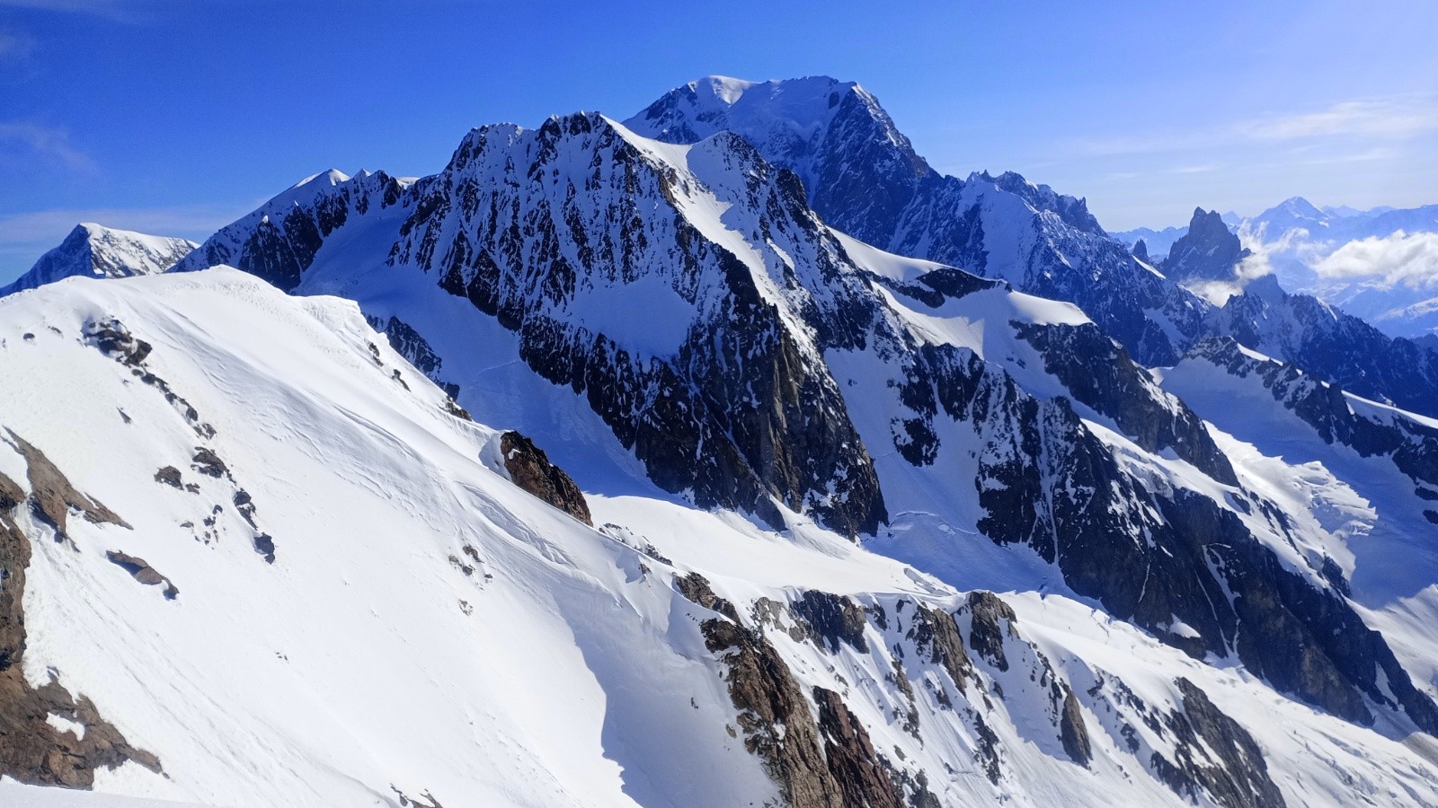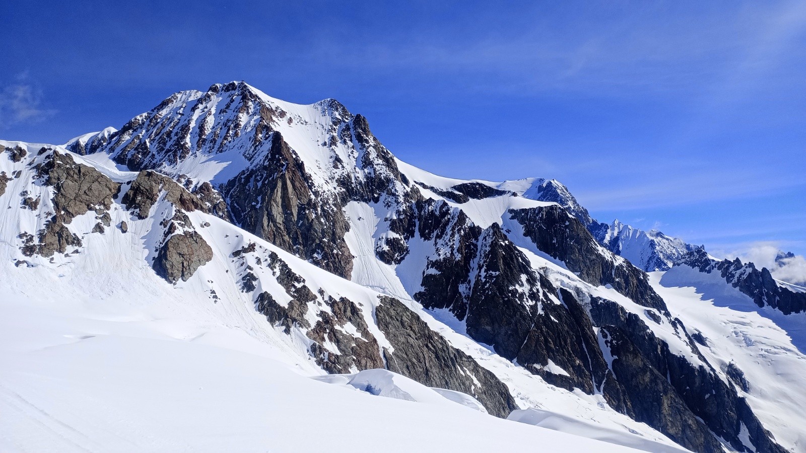 L'itinéraire versant italien est très beau avec vue sur les aiguilles de trè la tête, mont blanc, peuterey, jorasses et plus loin les combins