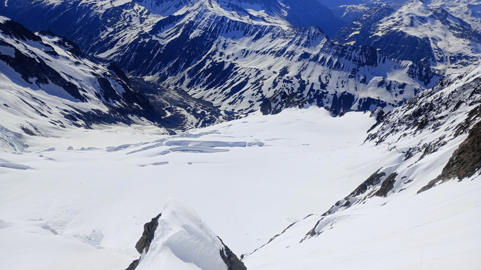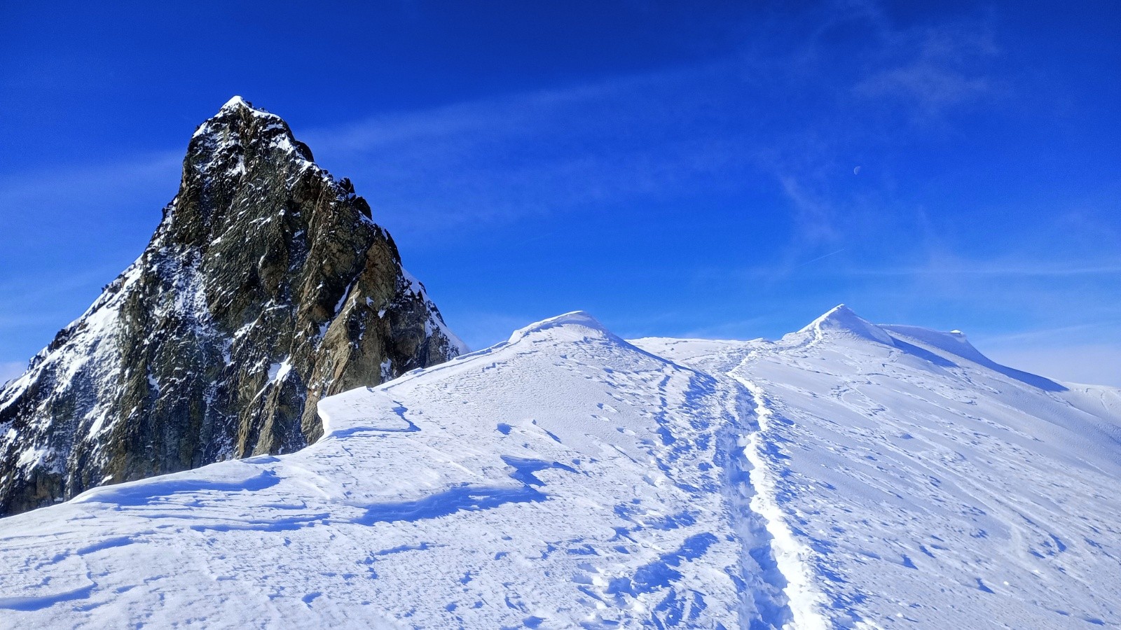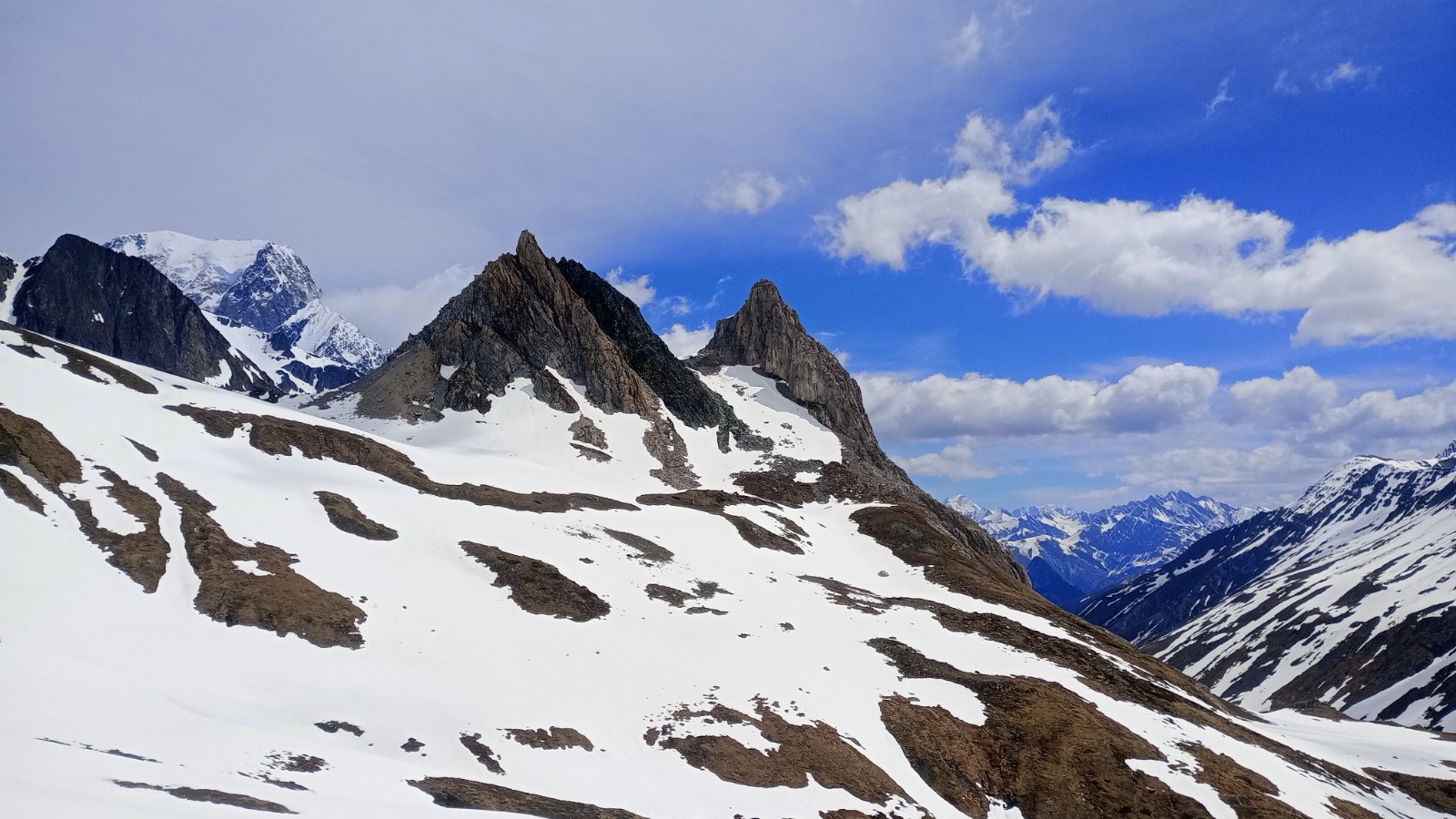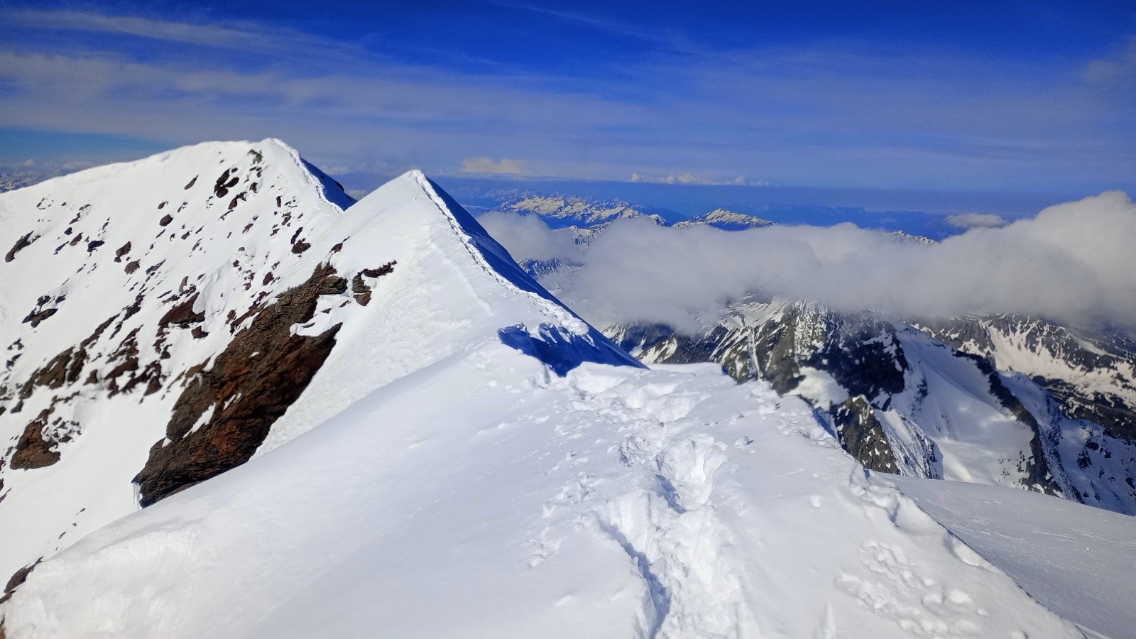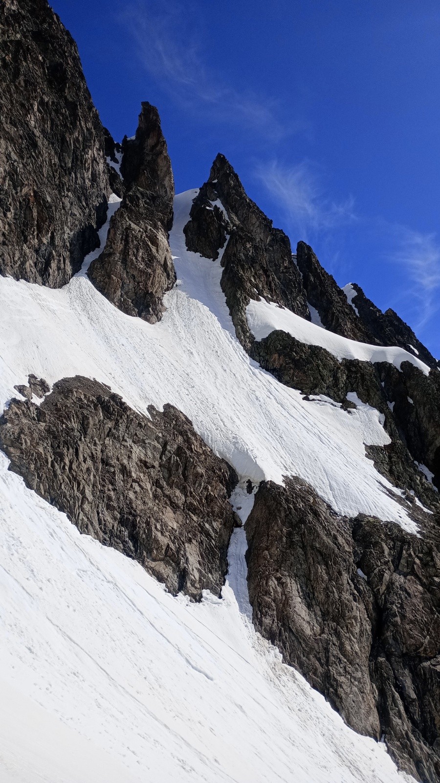 L'itinéraire versant italien est très beau avec vue sur les aiguilles de trè la tête, mont blanc, peuterey, jorasses et plus loin les combins