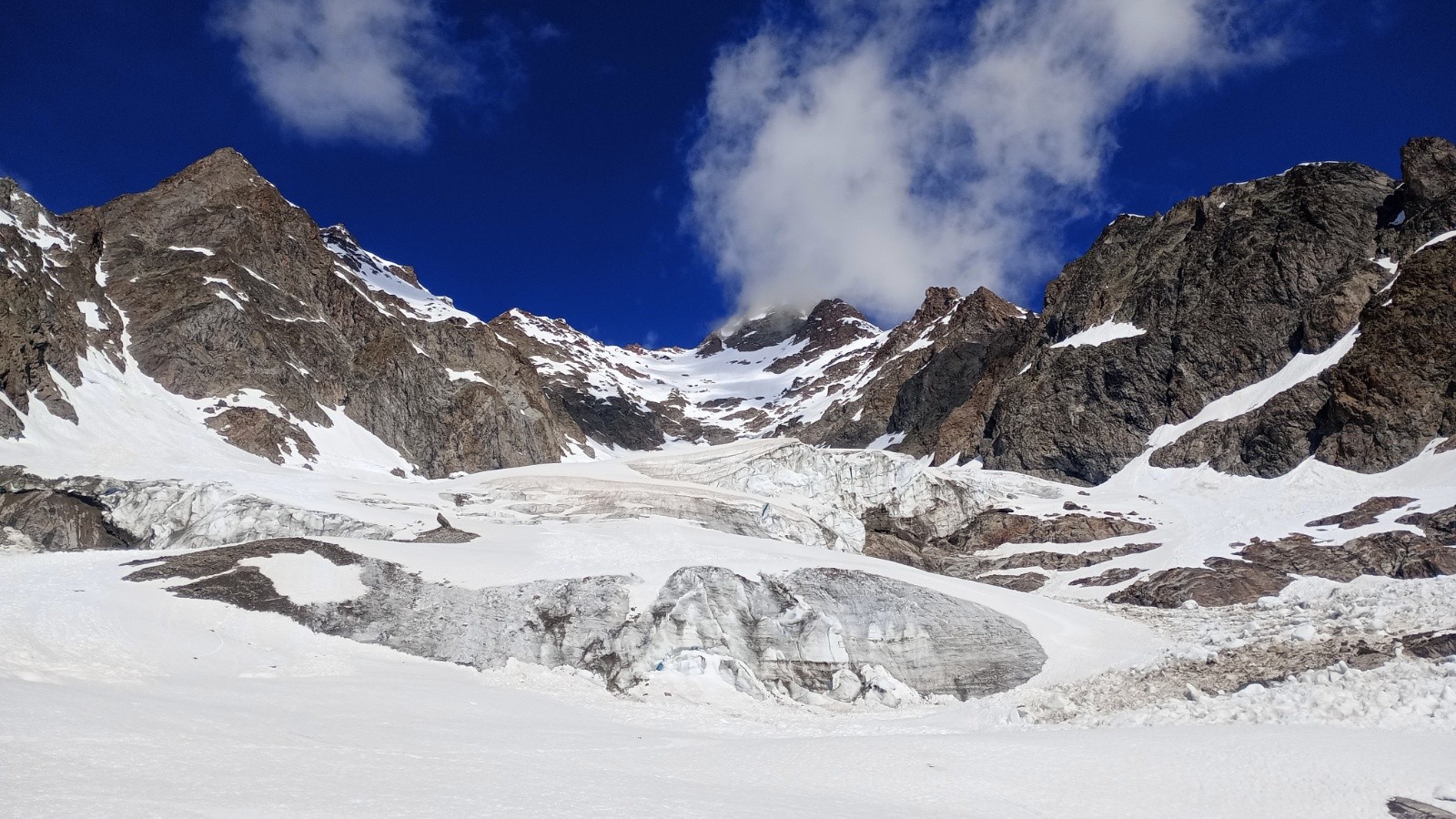 Itinéraire suivi : Montée jusqu'au dôme des glaciers => petite traversée sur l'arête jusqu'au col de la scie => col de l'estelette => refuge Elisbetta => remontée col de la Seigne => descente dans le torrent