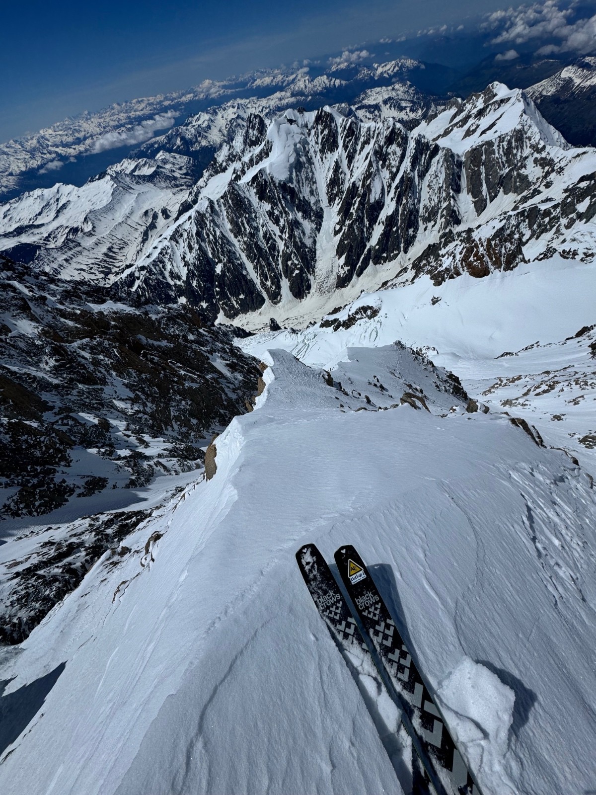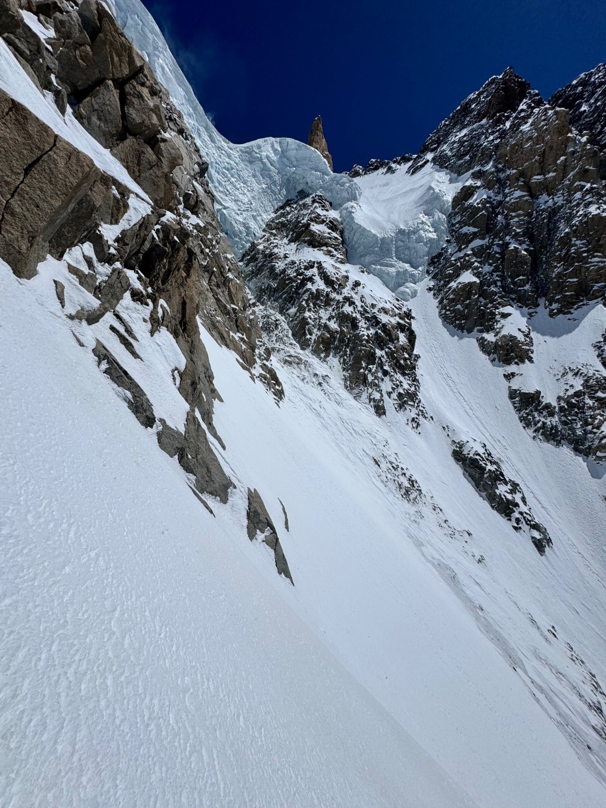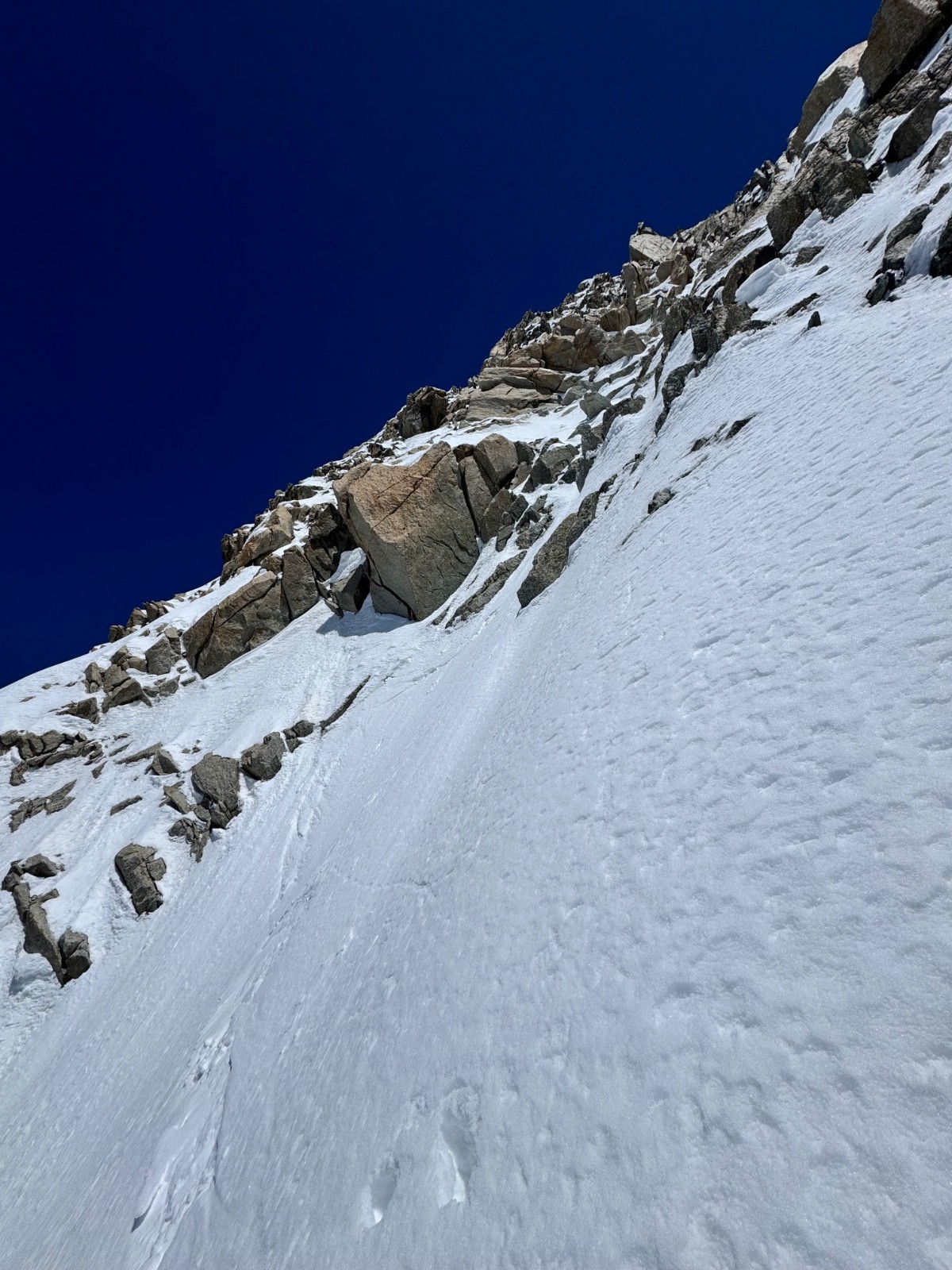 Conditions pour le ski : Globalement béton avec grip à croûte. Très légère décaillée plus bas sous 4000
