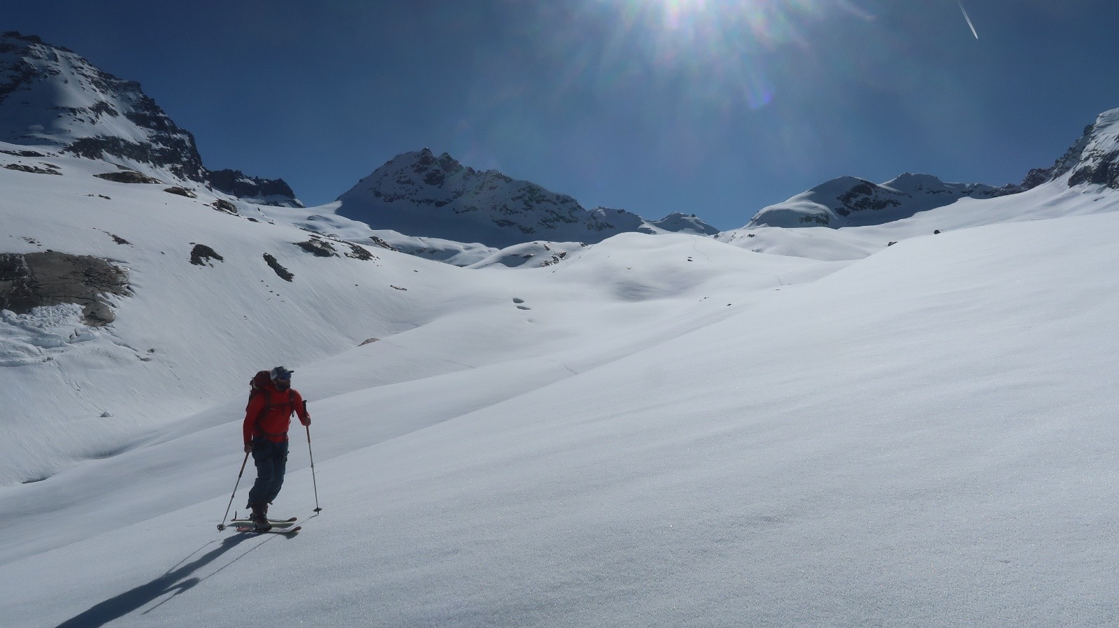 J1 (samedi 17) : 8h - 16h : Bonneval -> ref Carro via Ouille Noire : bien seul dans ce coin sauvage à cette époque. Pas mal de traversée, du portage et pas trop de ski mais de jolis paysages à la clé et de la tranquillté pour commencer le weekend