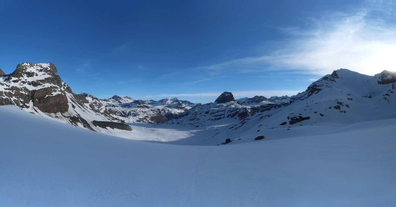 Conditions pour le ski : Globalement bonnes acec une alternance d'une neige bien lisse à peine décaillé au dessus de 3000m (léger vent et ISO assez faible) et en dessous de 3000, moquette land.