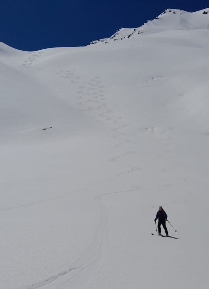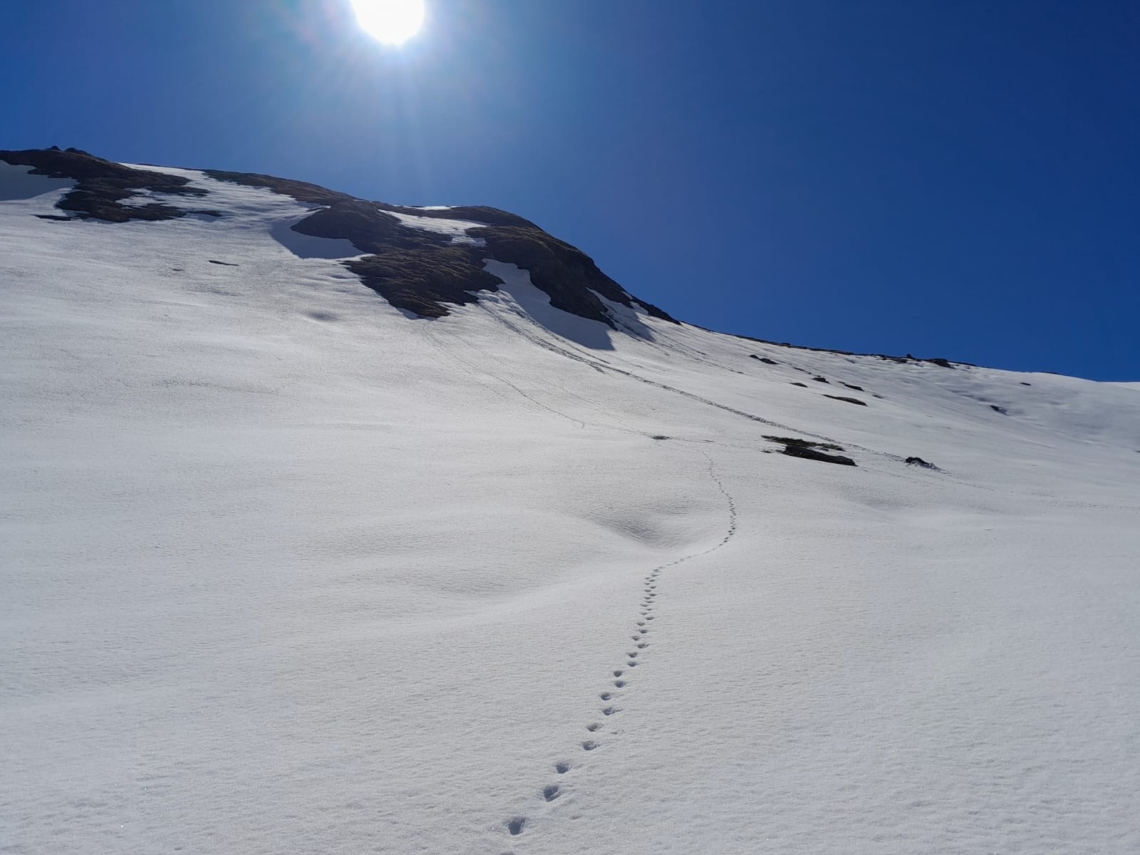 En parlant de Blanche Neige, nous ne la trouvons qu'à l'entrée du Vallon de Pelouse, sous les Eulettes, et vers 2100m en quantité suffisante pour chausser.