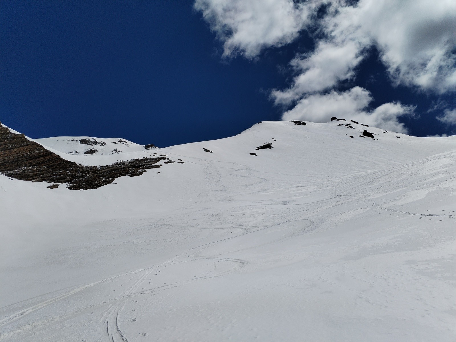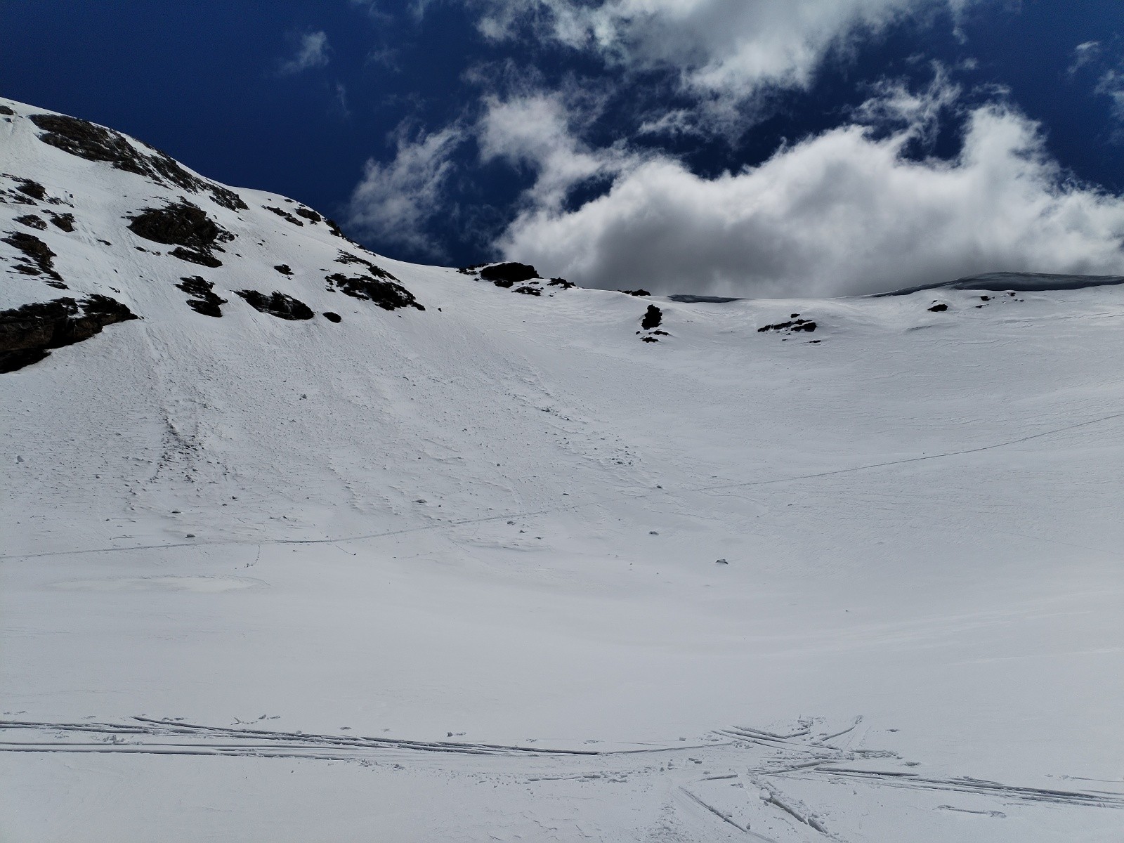Conditions nivo et activité avalancheuse : anciennes coulées visibles. Le matin, elles sont pénibles à franchir. Le regel matinal stabilise tout, en dessous de 2500m, il ne reste pas tant de neige, là où c'est raide, globalement c'est purgé