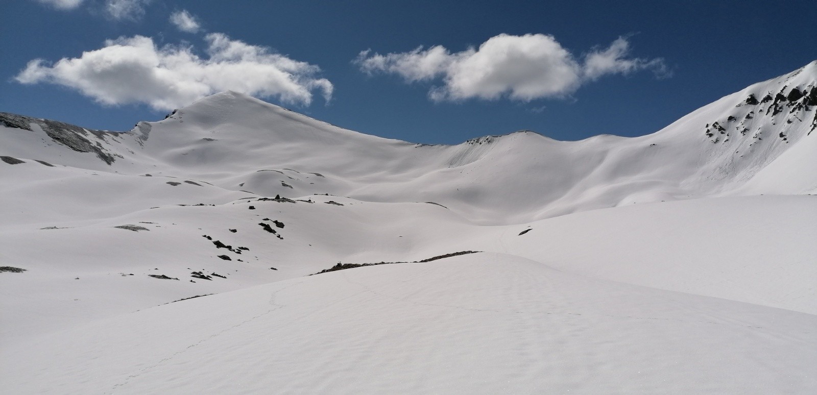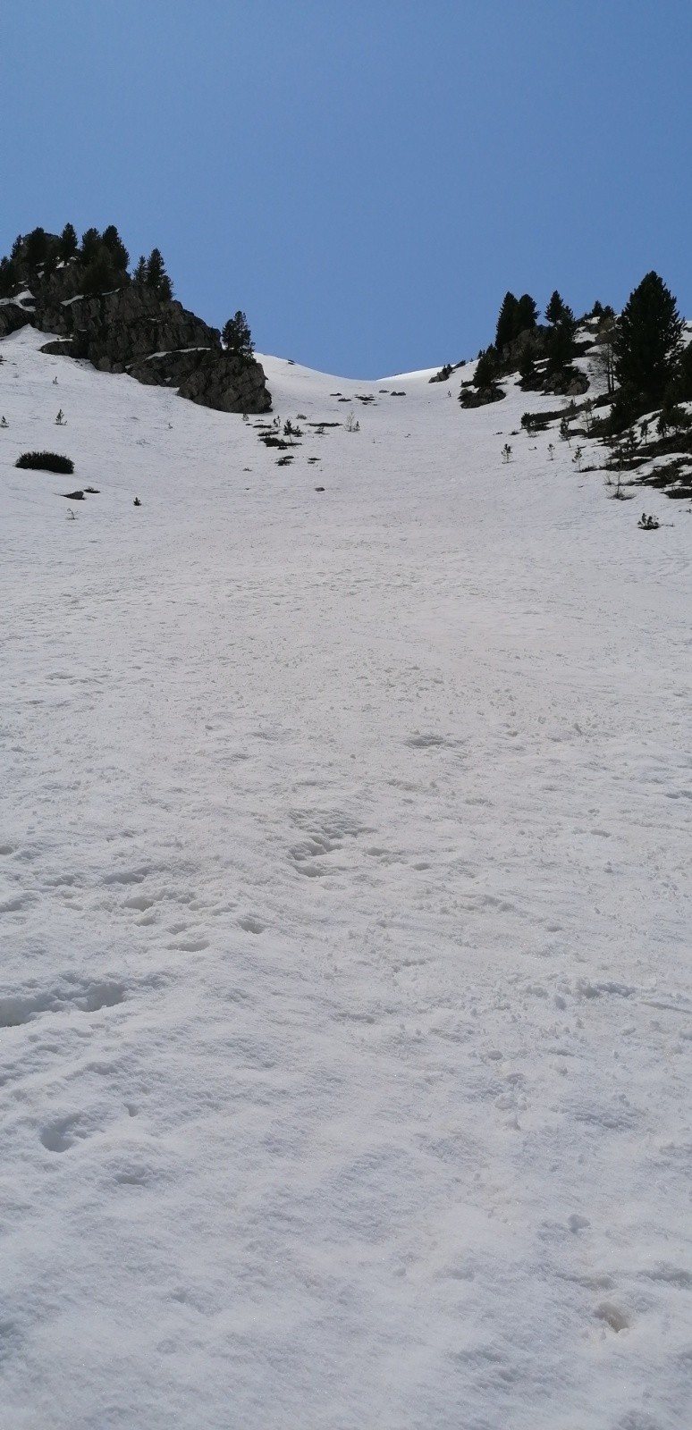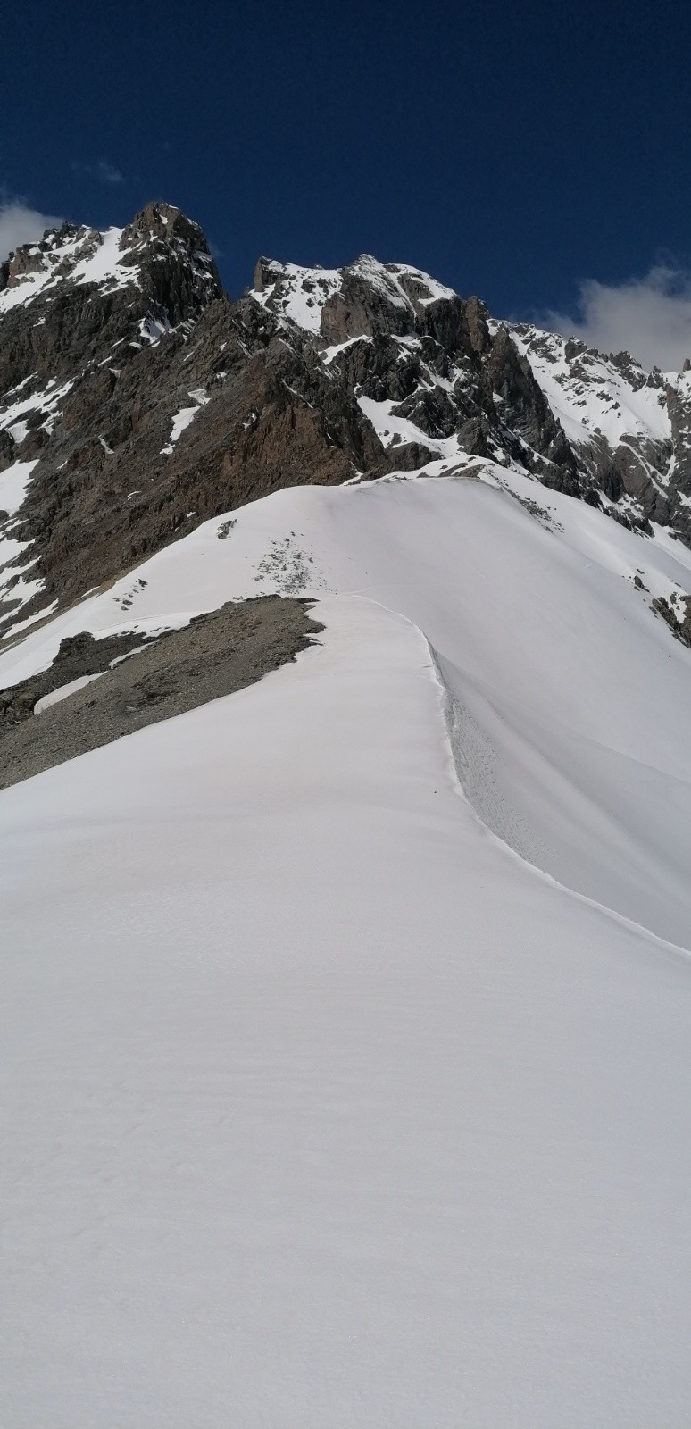 Conditions nivo et activité avalancheuse : Pas d'observation de coulées dans la journée. Vieille coulée sous la corniche principale à l'est du col. Neige fraiche de 5/10cm au delà de 2200m d'altitude. En dessous, la neige est homogène avec transformation type moquette dès 12h00 en dessous de 2200m alt.